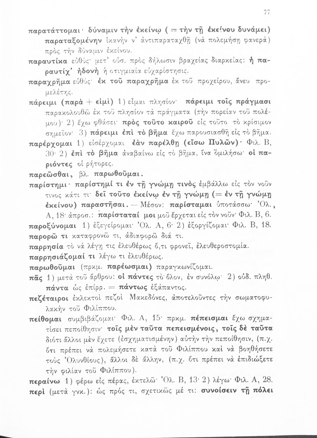 Σχολικό εγχειρίδιο Αρχαίων Ελληνικών Δ΄ Γυμνασίου που περιλαμβάνει εισαγωγή στη ζωή και στο έργο του Δημοσθένη, τον Α΄ κατά Φιλίππου, και τους Α΄ και Β΄ Ολυνθιακούς και ερμηνευτικά και ετυμολογικά σχόλια.