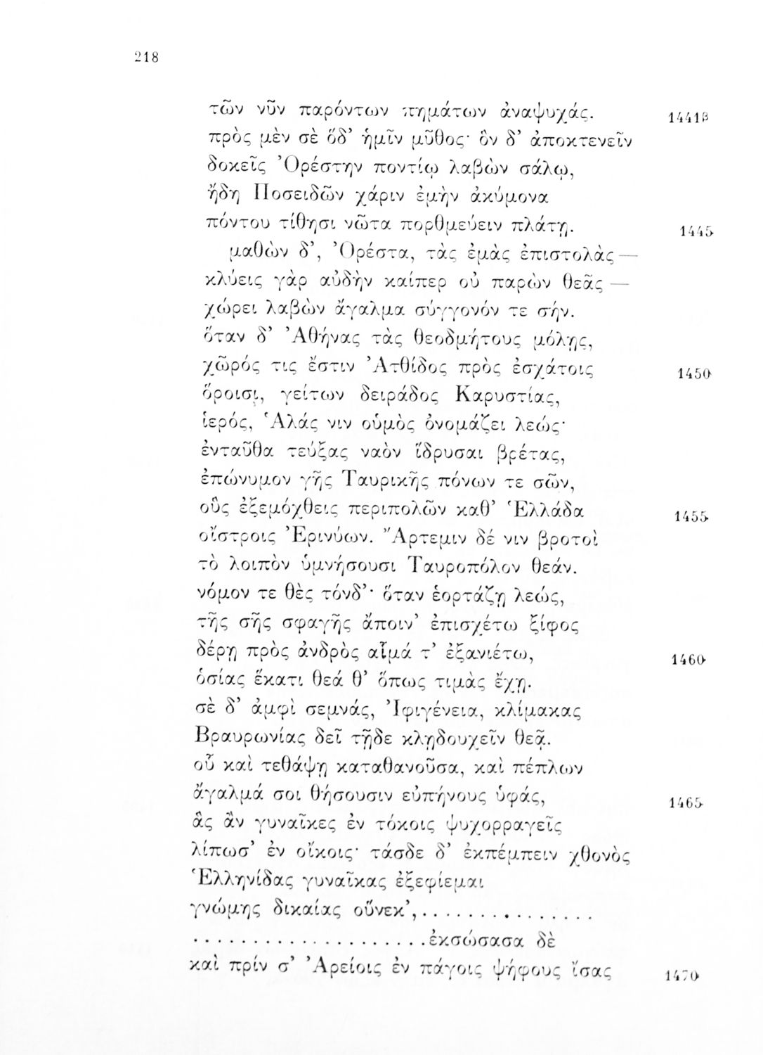 Σχολικό εγχειρίδιο Αρχαίων Ελληνικών της Ε΄ Γυμνασίου που περιλαμβάνει την τραγωδία του Ευριπίδη Ιφιγένεια η εν Ταύροις, εισαγωγή στο έργο και τη ζωή του, και ερμηνευτικές σημειώσεις.
