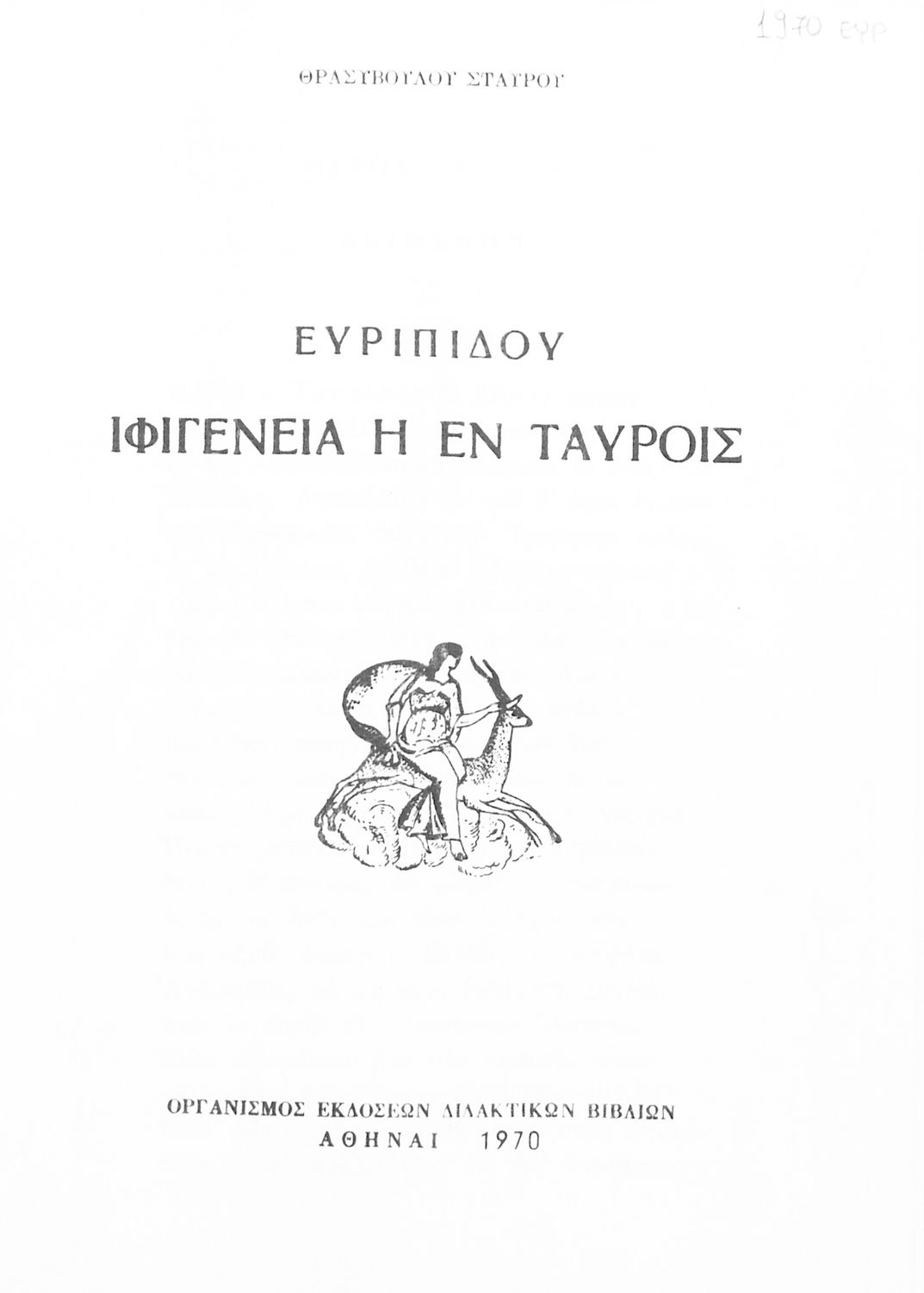 Τίτλος: Ευριπίδου τραγωδίαι. Ιφιγένεια η εν Ταύροις. Ε΄ Γυμνασίου