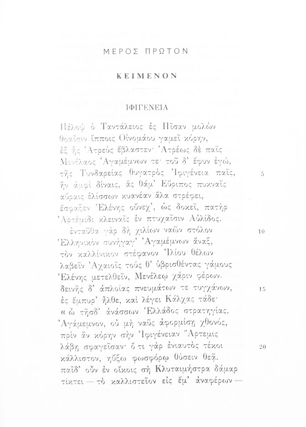 Σχολικό εγχειρίδιο Αρχαίων Ελληνικών Ε΄ Γυμνασίου που περιέχει εισαγωγή στο αρχαίο δράμα και στη ζωή και το έργο του Ευριπίδη, αποσπάσματα από την Ιφιγένεια η εν Αυλίδι και ερμηνευτικά σχόλια. Φέρει το σύμβολο