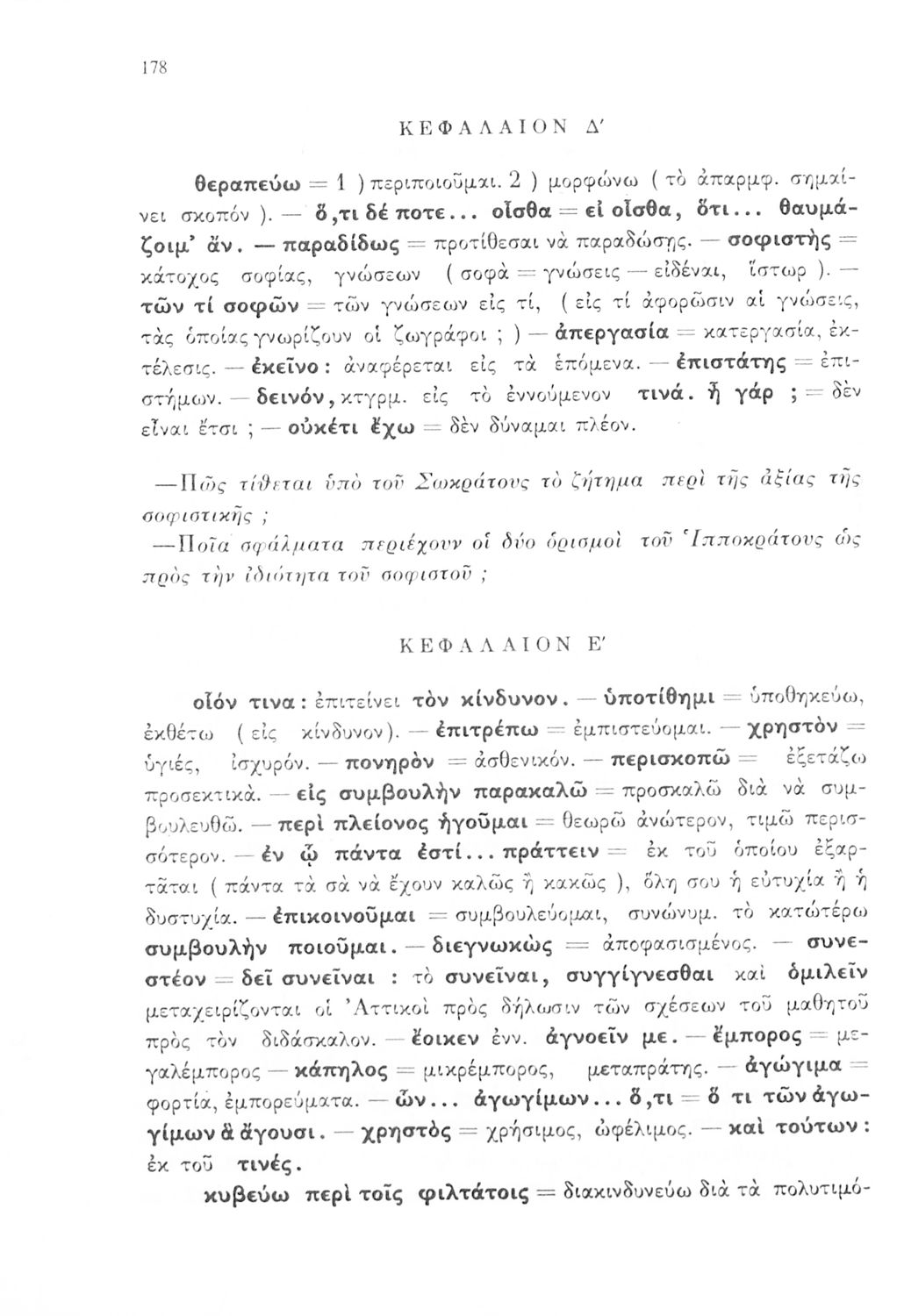 Σχολικό εγχειρίδιο Αρχαίων Ελληνικών για τις Ε΄ Εξαταξίου Γυμνασίου παλαιού τύπου και ΣΤ΄ Εξαταξίου Γυμνασίου νέου τύπου που περιλαμβάνει εισαγωγικά στοιχεία για τη ζωή και το έργο του Πλάτωνα και μικρό ...