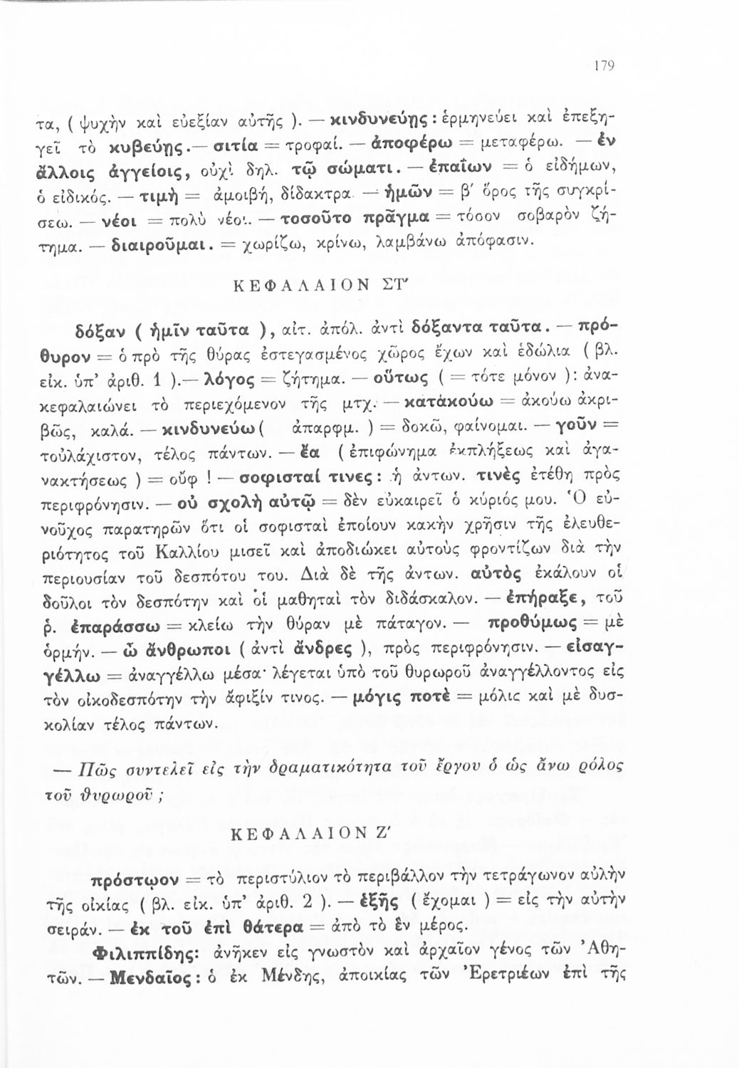 Μαθητικό βοήθημα Αρχαίων Ελληνικών για τους μαθητές της ΣΤ΄ τάξης των Γυμνασίων. Περιέχει το κείμενο, την μετάφραση, γραμματικά και συντακτικά σχόλια.