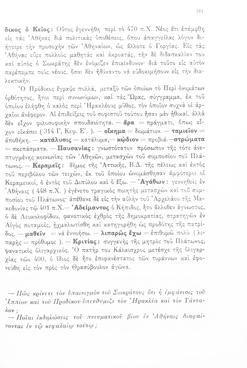 Σχολικό εγχειρίδιο Αρχαίων Ελληνικών για την ΣΤ΄ Γυμνασίου. Πρόκειται για βιβλίο με το πρωτότυπο κείμενο του Πλάτωνα. Υπάρχουν ερμηνευτικά σχόλια και εισαγωγή στη καθαρεύουσα. Το βιβλίο έχει εισαγωγές και ...