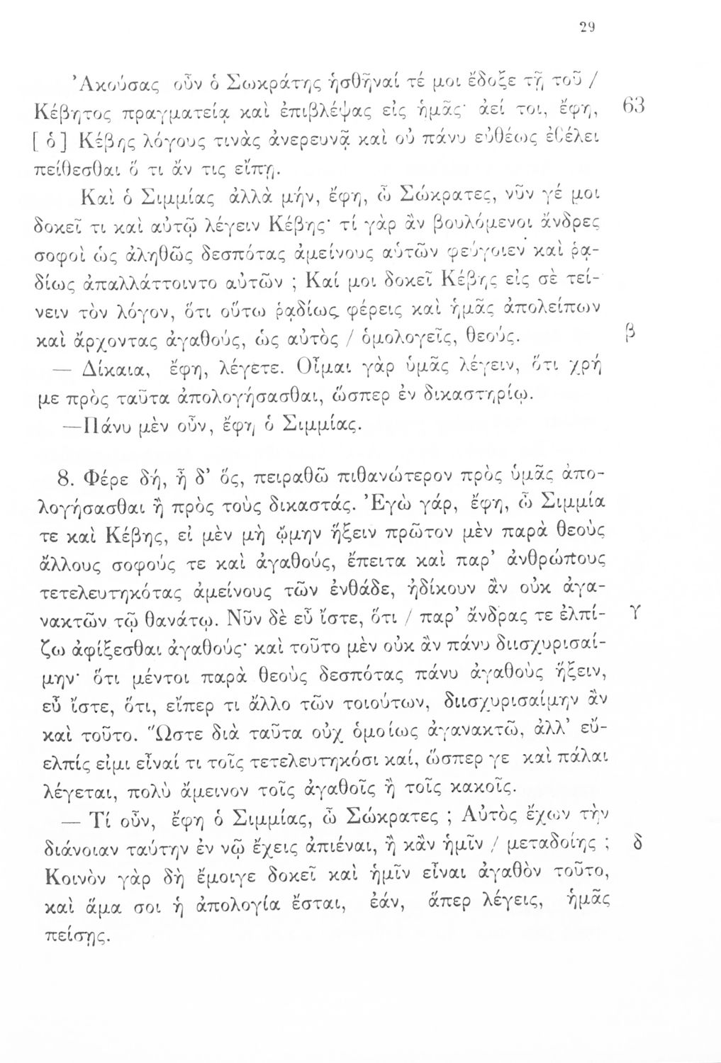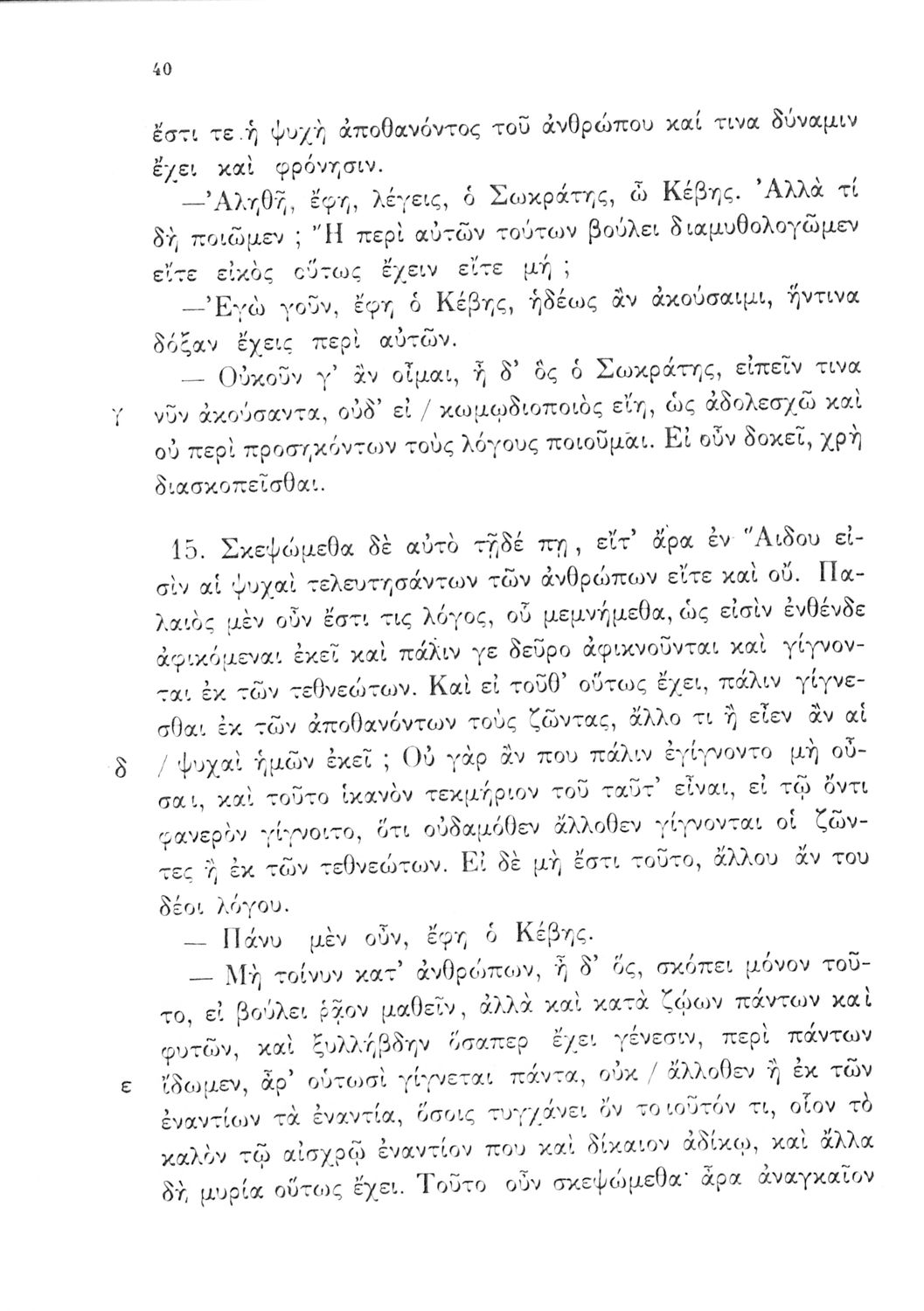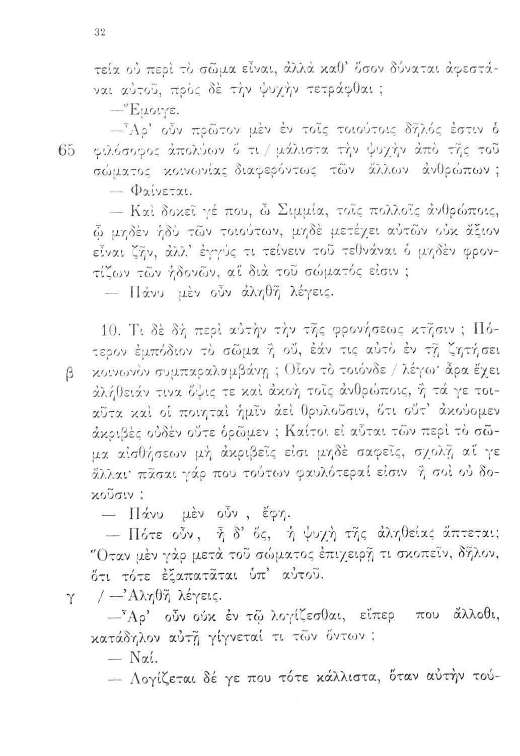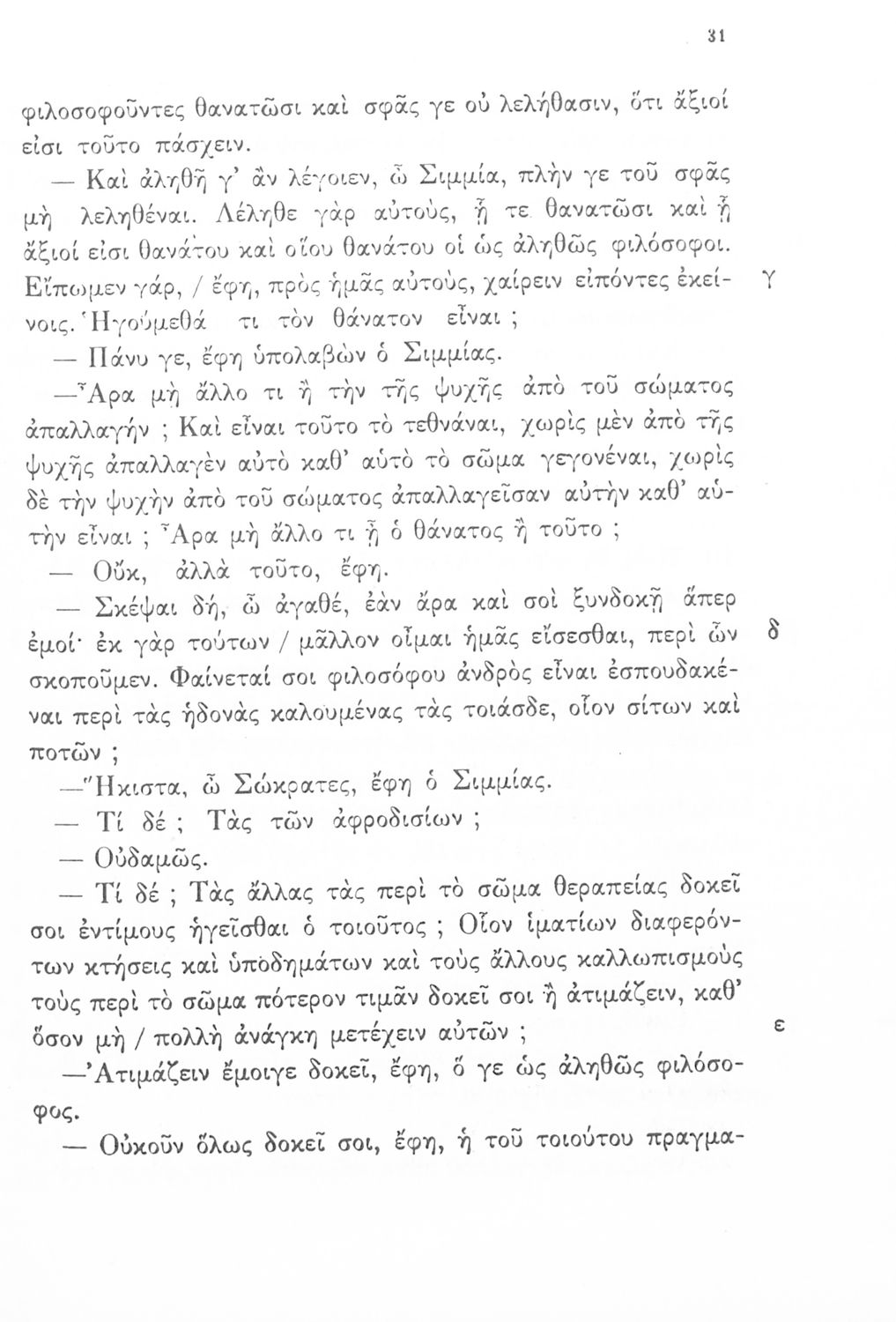 Σχολικό εγχειρίδιο Αρχαίων Ελληνικών της ΣΤ΄ Γυμνασίου το οποίο παρουσιάζει το έργο του Πλάτωνα, 'Φαίδων'. Το κείμενο συνοδεύεται από γλωσσικές και ερμηνευτικές σημειώσεις. Στην αρχή του βιβλίου περιλαμβάνεται εισαγωγή για το έργο και τη ζωή του Πλάτωνα.