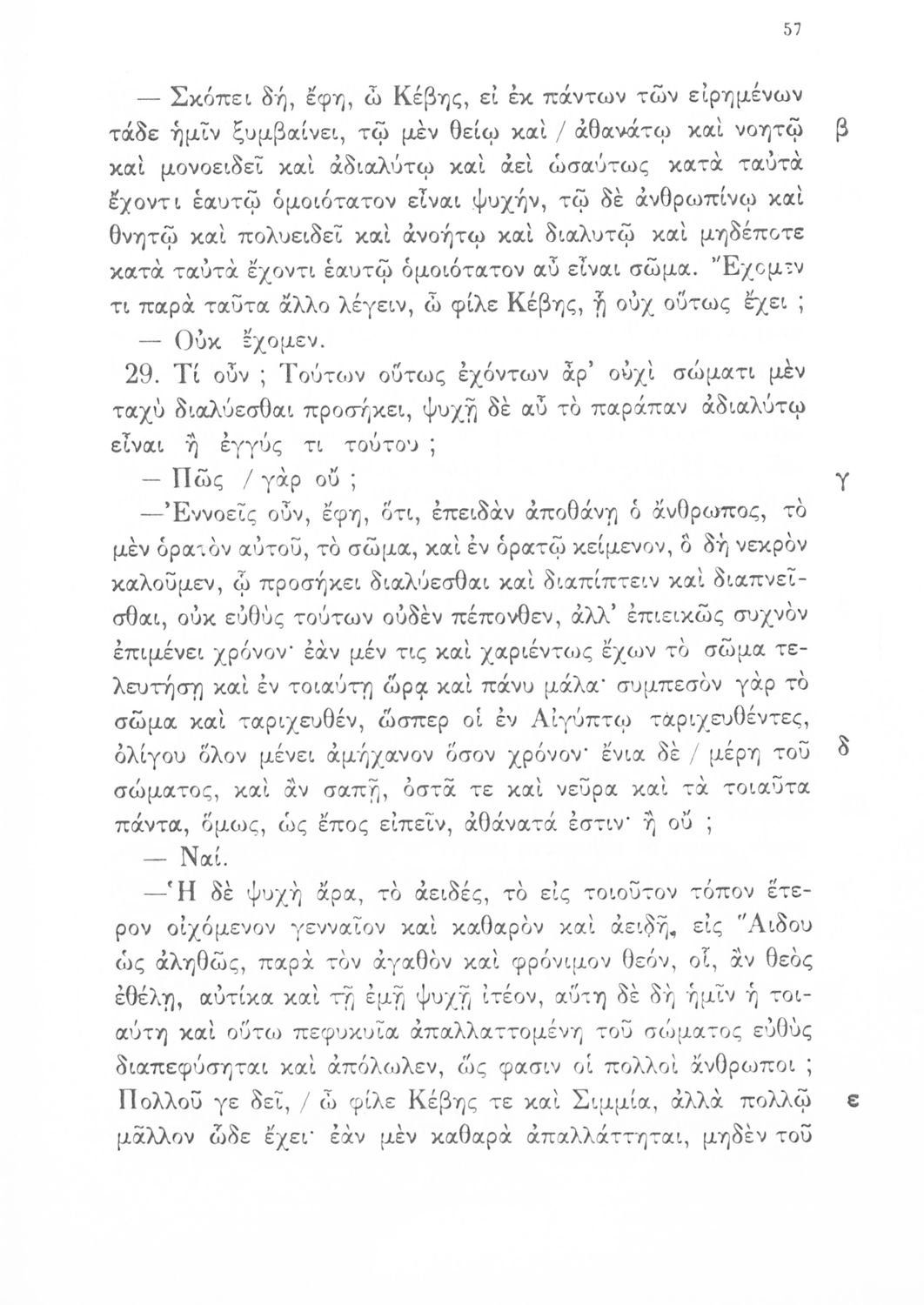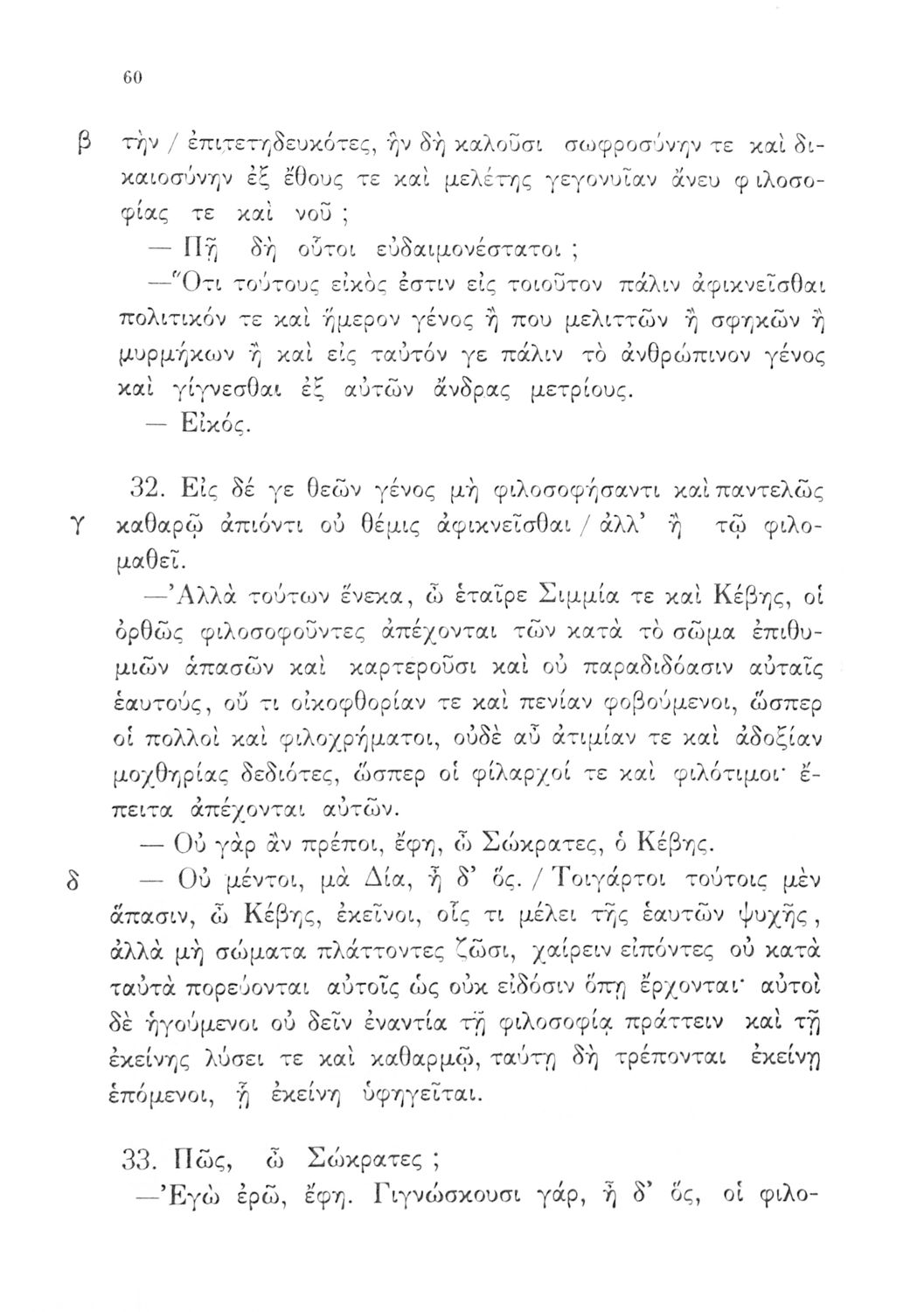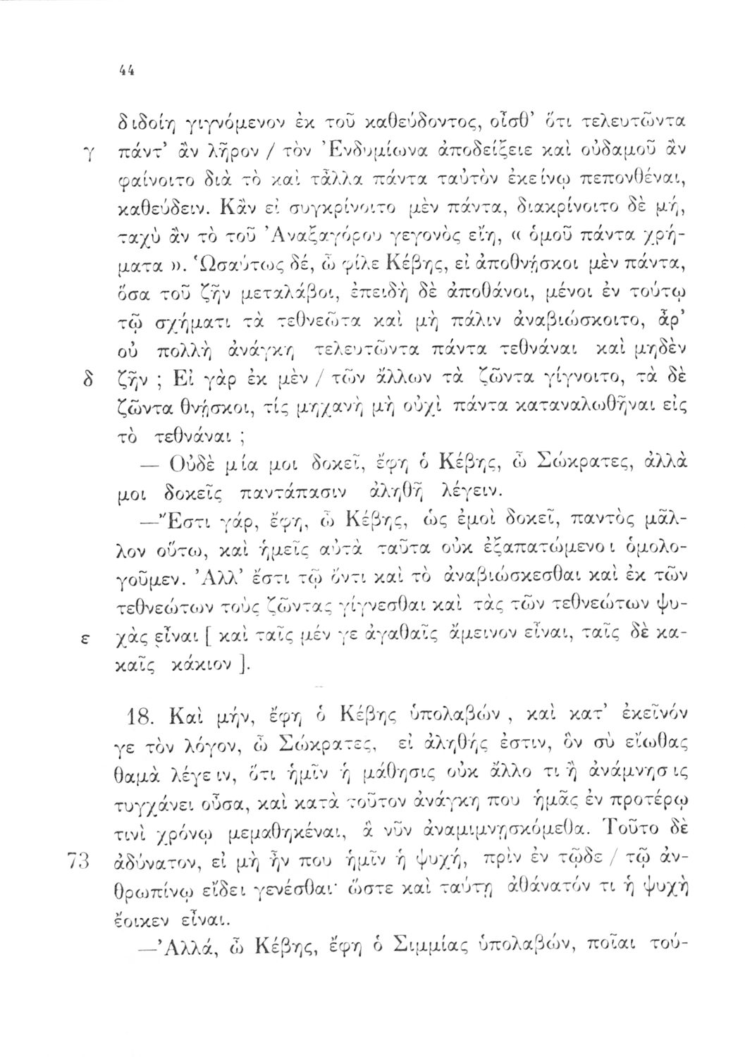 Σχολικό εγχειρίδιο Αρχαίων Ελληνικών της ΣΤ΄ Γυμνασίου το οποίο παρουσιάζει το έργο του Πλάτωνα, 'Φαίδων'. Το κείμενο συνοδεύεται από γλωσσικές και ερμηνευτικές σημειώσεις. Στην αρχή του βιβλίου περιλαμβάνεται εισαγωγή για το έργο και τη ζωή του Πλάτωνα.