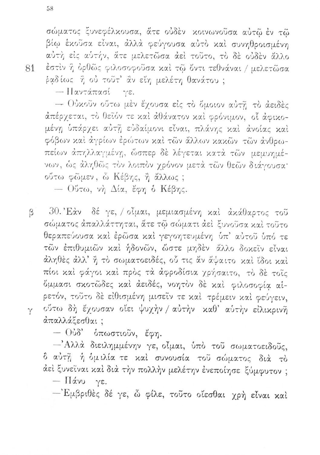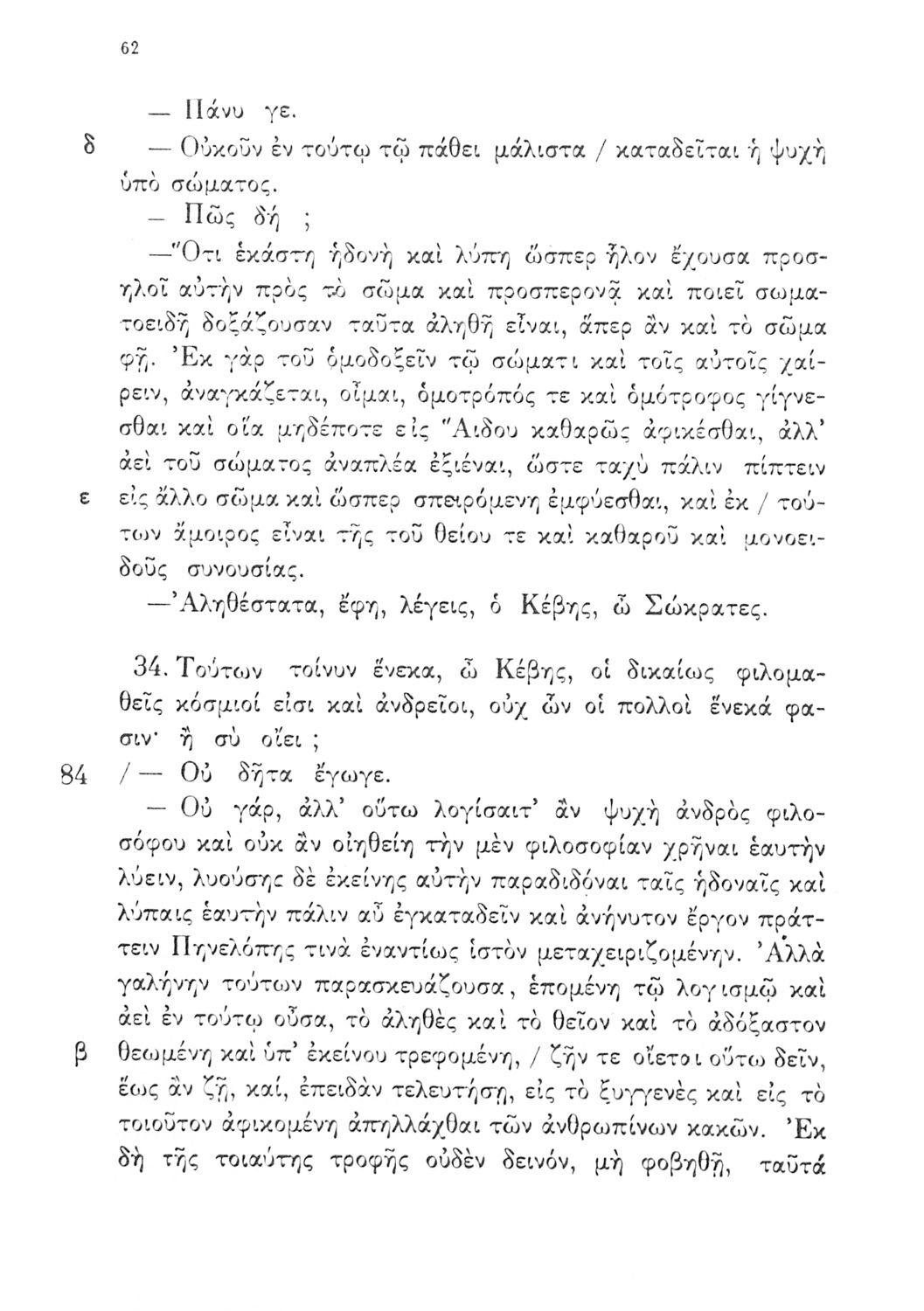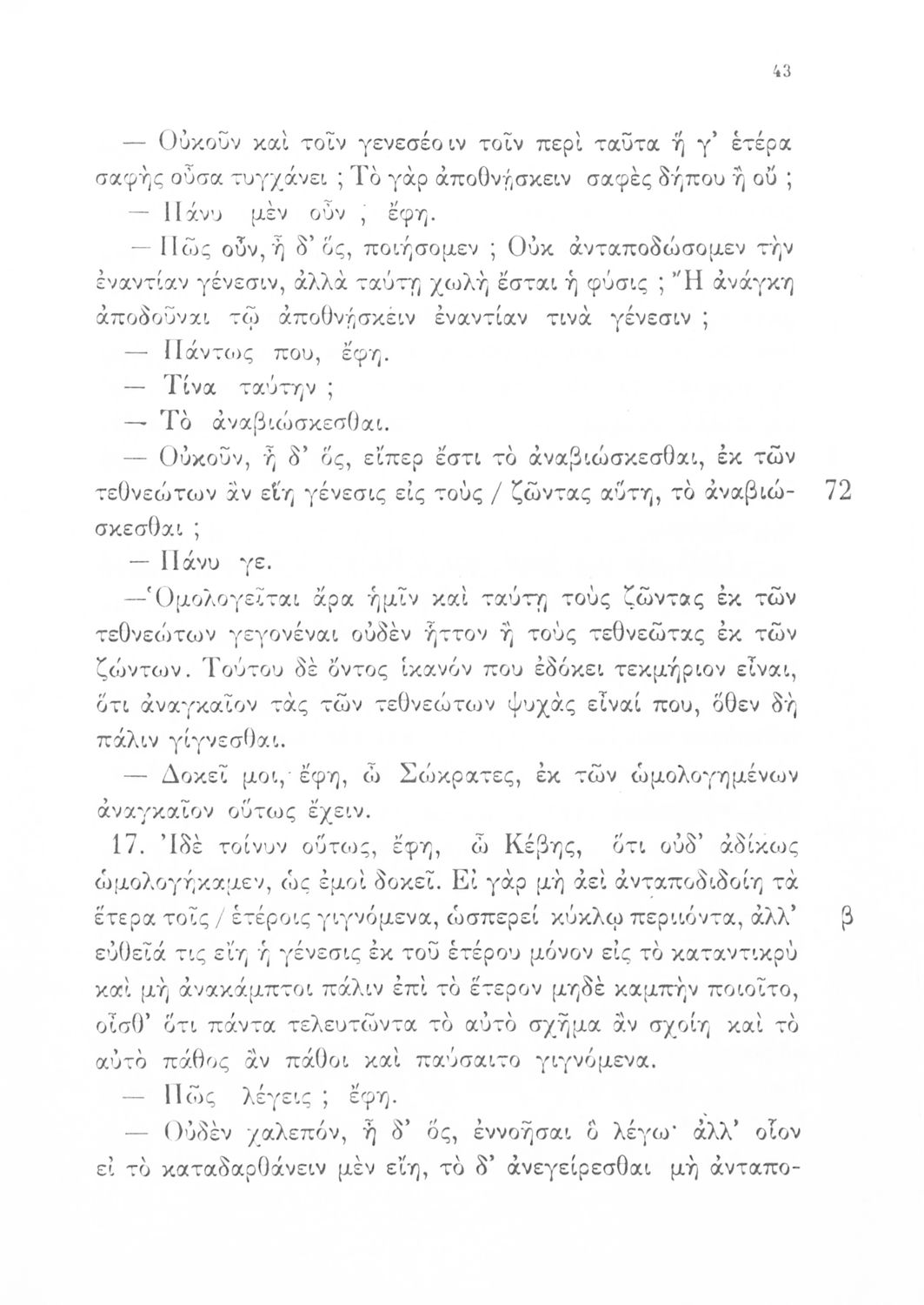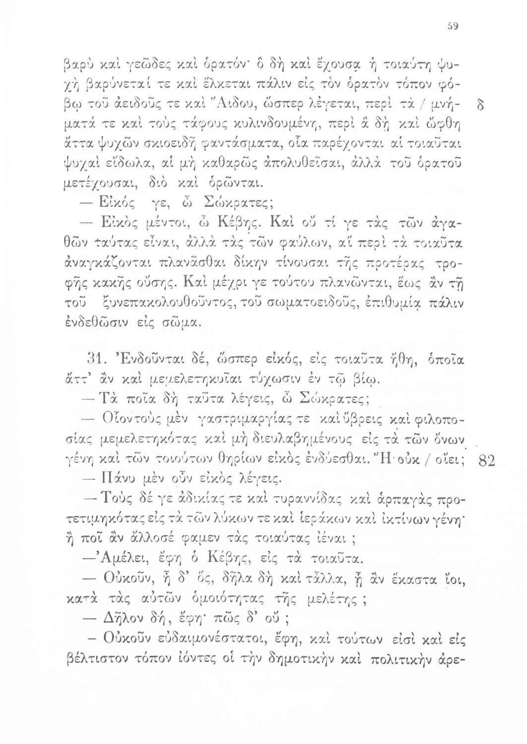 Σχολικό εγχειρίδιο Αρχαίων Ελληνικών της ΣΤ΄ Γυμνασίου το οποίο παρουσιάζει το έργο του Πλάτωνα, 'Φαίδων'. Το κείμενο συνοδεύεται από γλωσσικές και ερμηνευτικές σημειώσεις. Στην αρχή του βιβλίου περιλαμβάνεται εισαγωγή για το έργο και τη ζωή του Πλάτωνα.