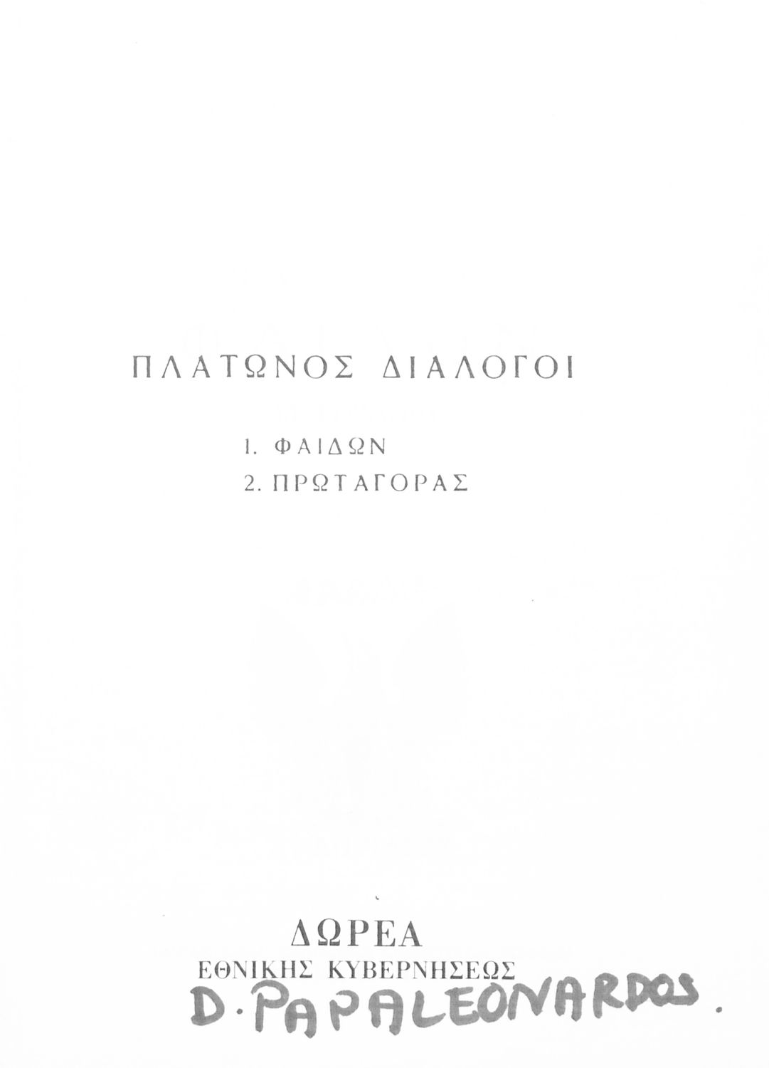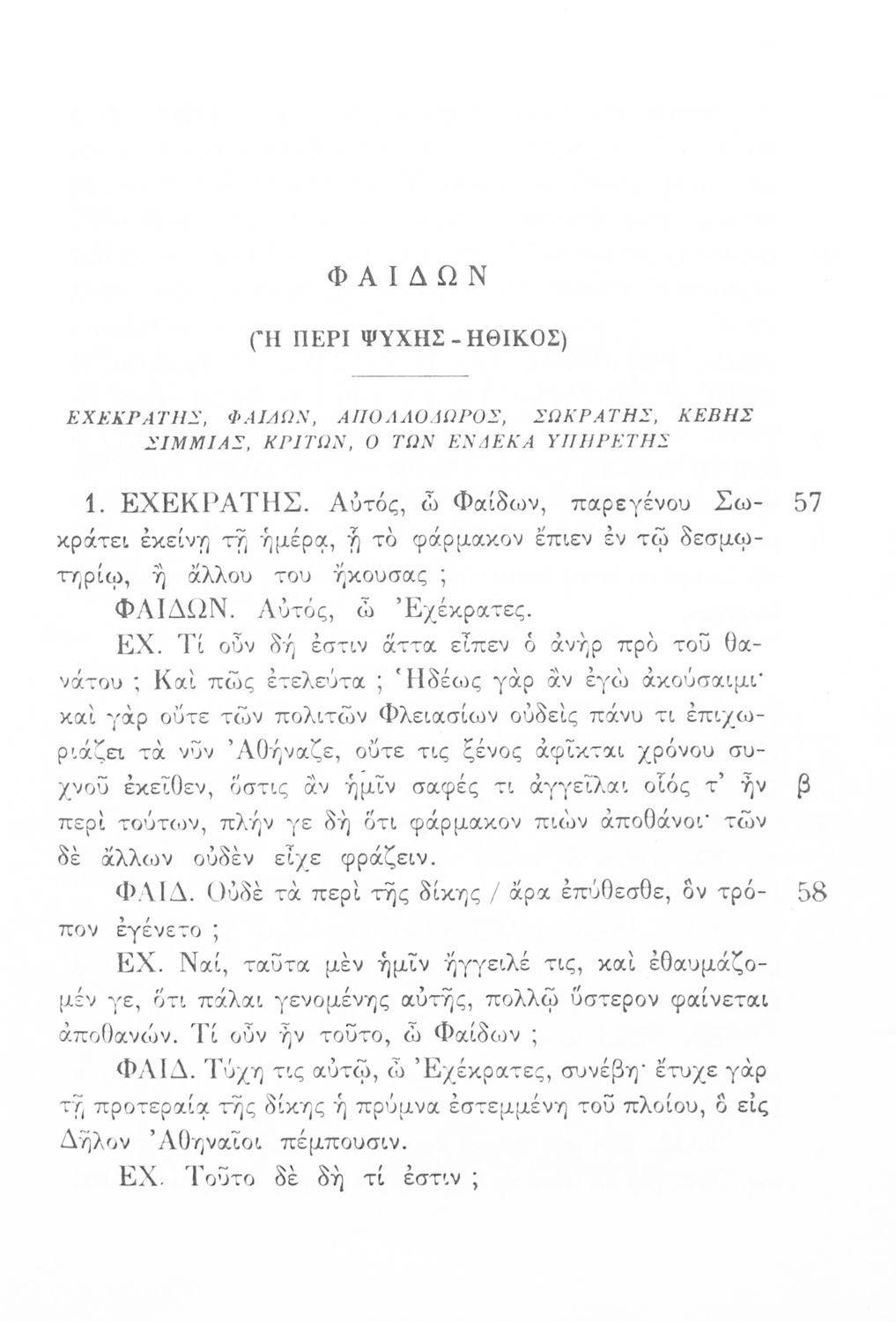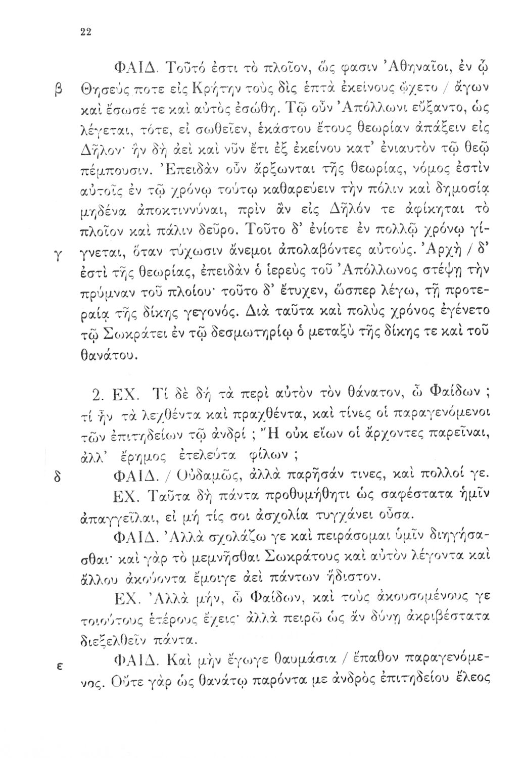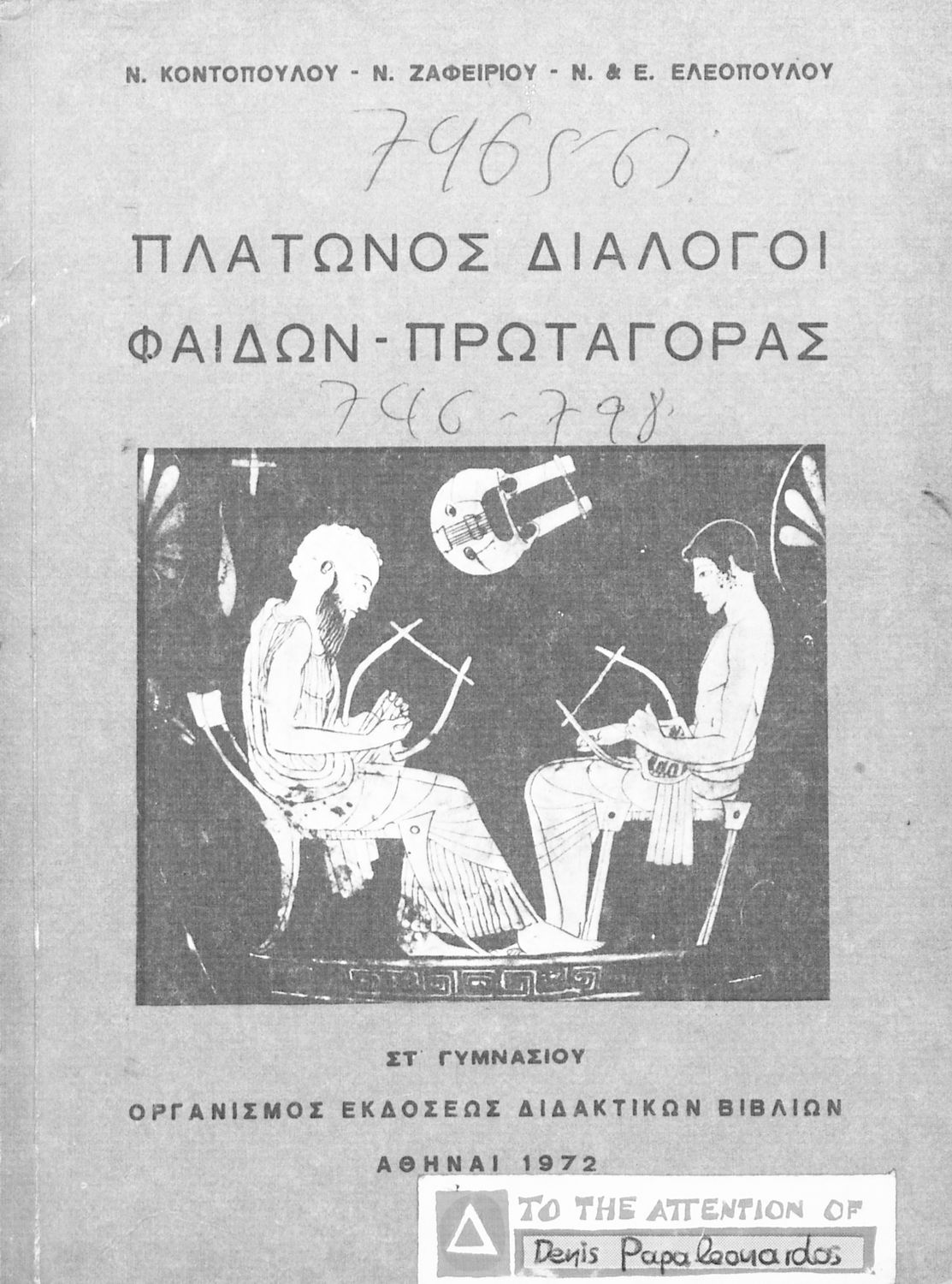 Σχολικό εγχειρίδιο Αρχαίων Ελληνικών της ΣΤ΄ Γυμνασίου το οποίο παρουσιάζει το έργο του Πλάτωνα, 'Φαίδων'. Το κείμενο συνοδεύεται από γλωσσικές και ερμηνευτικές σημειώσεις. Στην αρχή του βιβλίου περιλαμβάνεται εισαγωγή για το έργο και τη ζωή του Πλάτωνα.