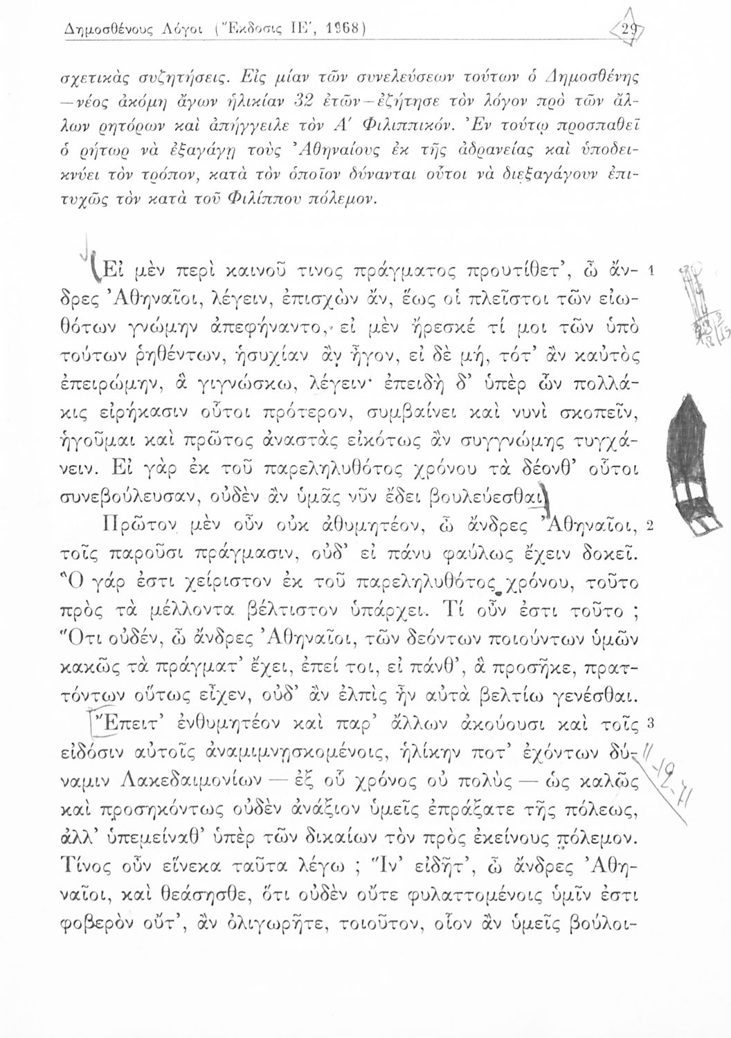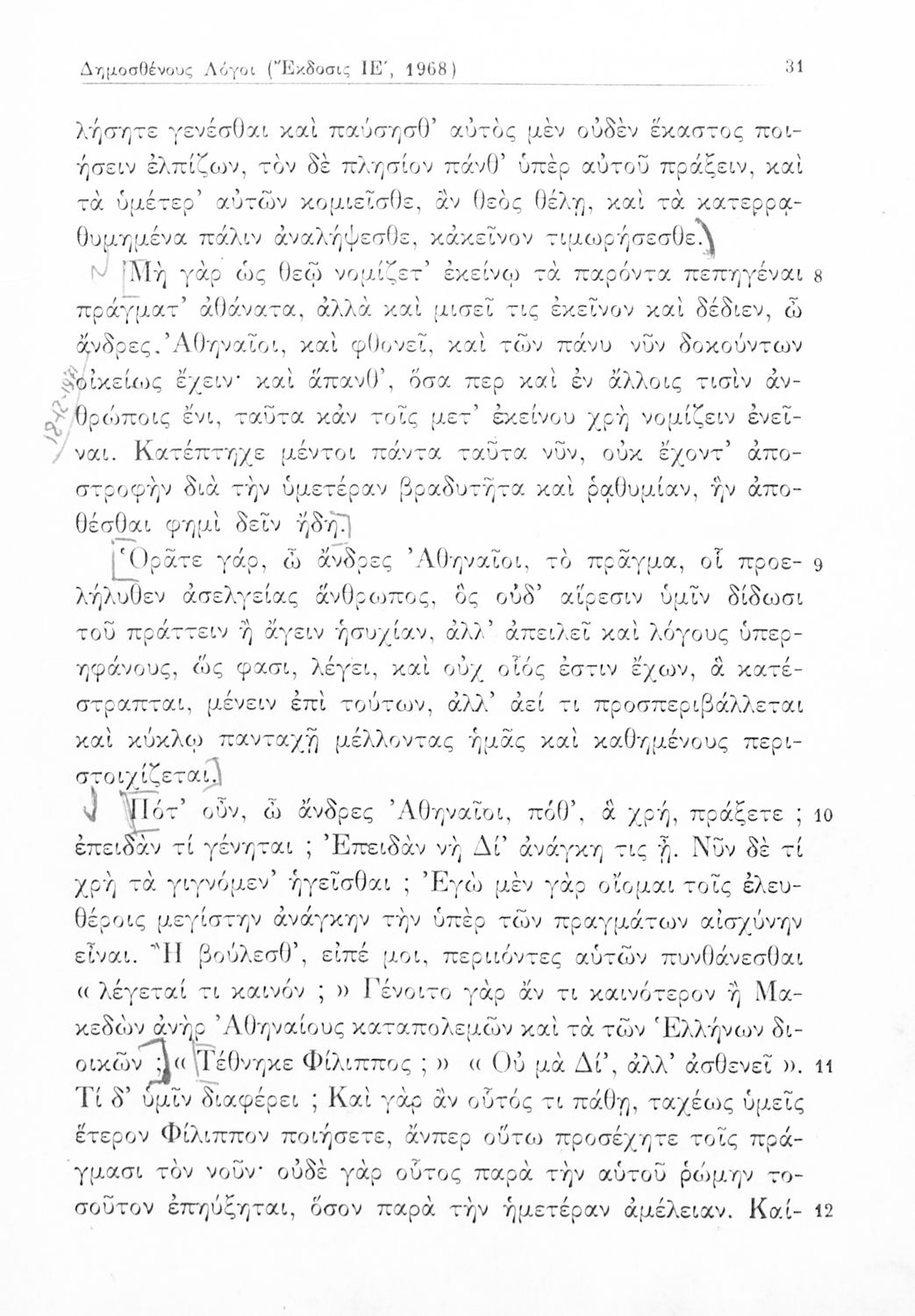 520 ## _aΣχολικό εγχειρίδιο Αρχαίων Ελληνικών Γυμνασίου που περιλαμβάνει τους Ολυνθιακούς Α΄ και Β΄ και τους Φιλιππικούς Α΄ και Β' του Δημοσθένη, εισαγωγή και ερμηνευτικά σχόλια.