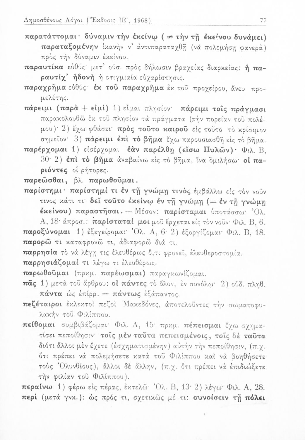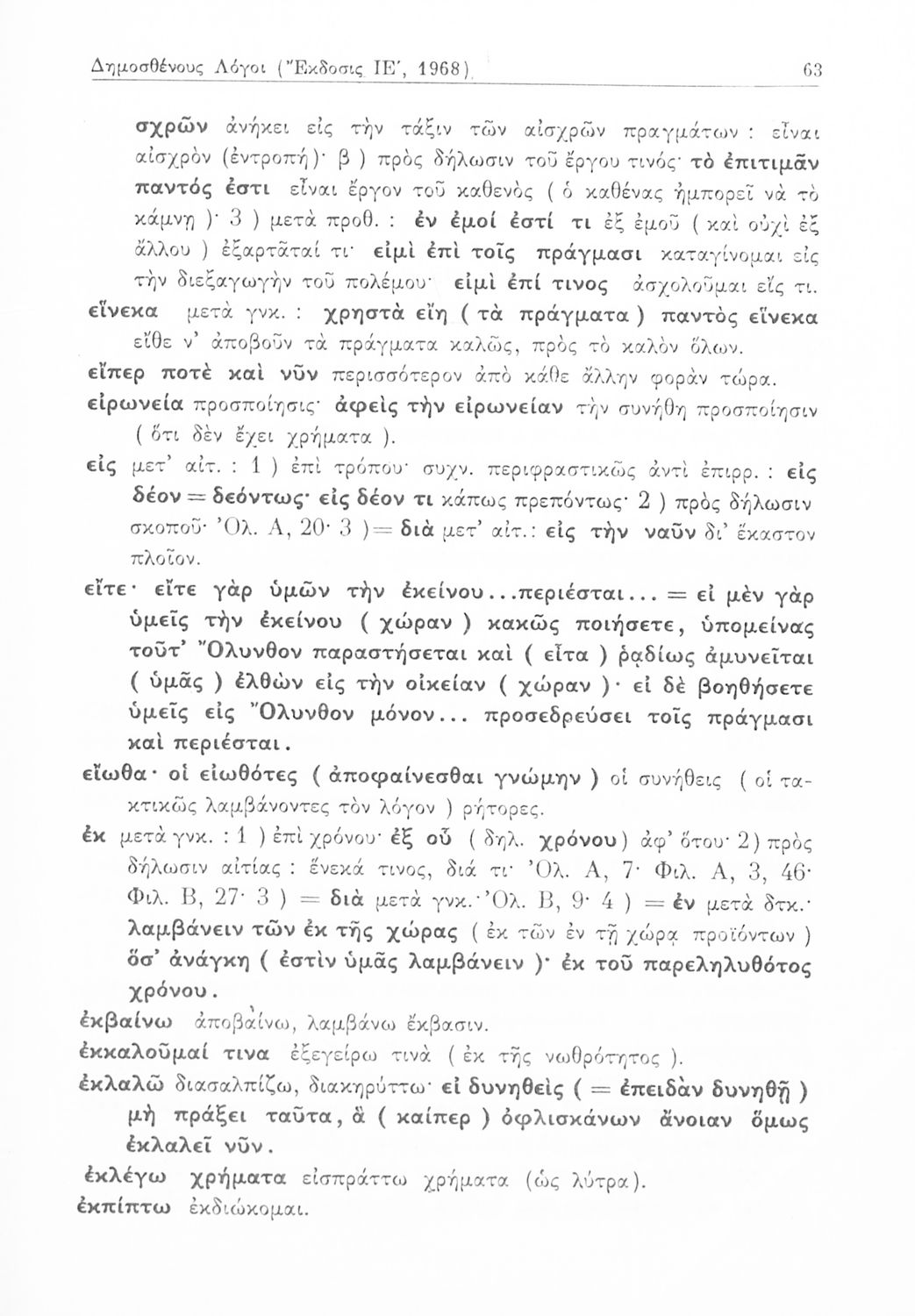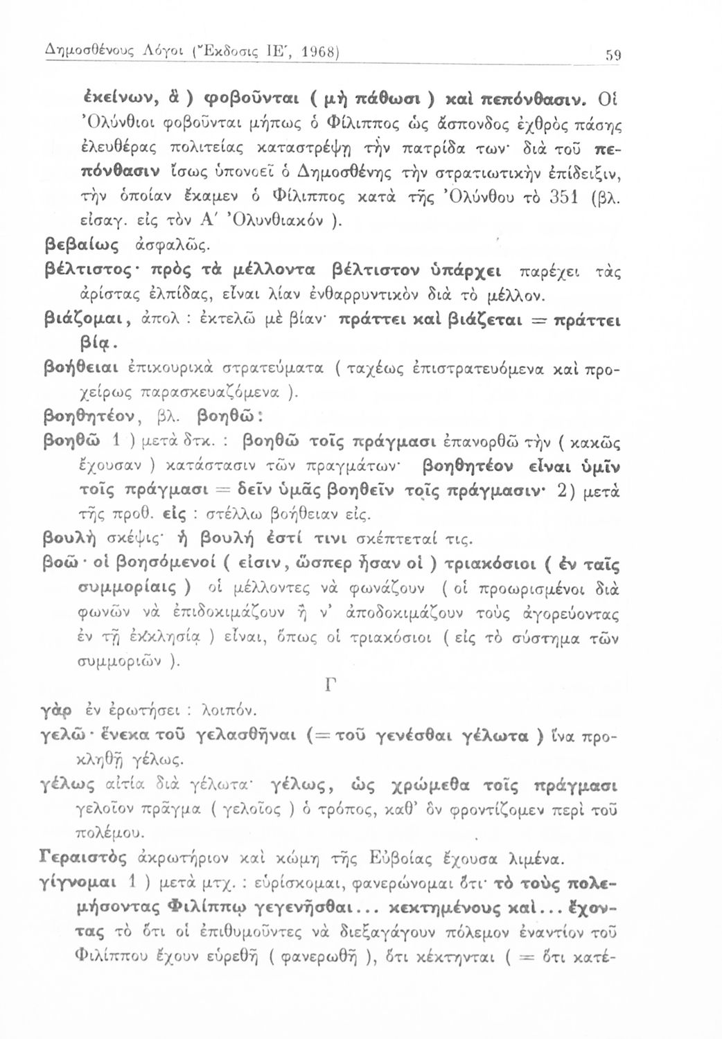 Σχολικό εγχειρίδιο Αρχαίων Ελληνικών Γυμνασίου που περιλαμβάνει τους Ολυνθιακούς Α΄ και Β΄ και τους Φιλιππικούς Α΄ και Β' του Δημοσθένη, εισαγωγή και ερμηνευτικά σχόλια.
