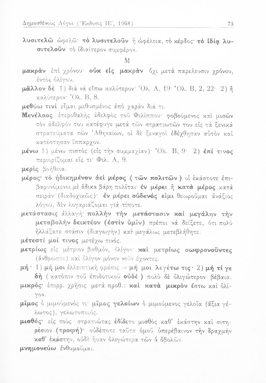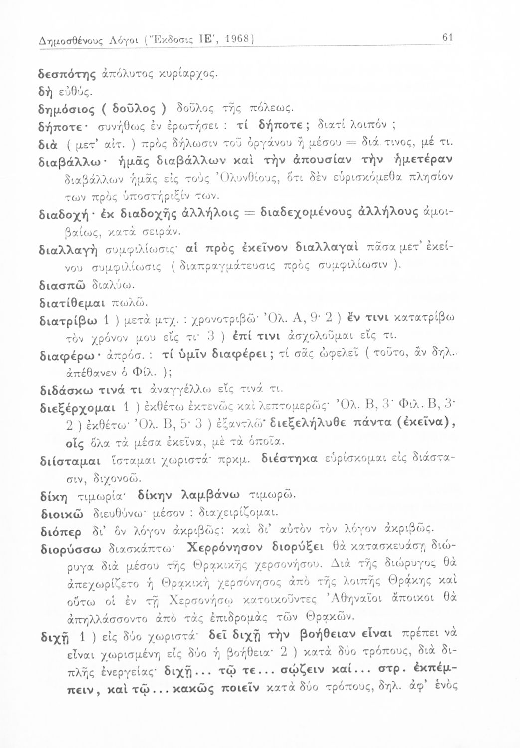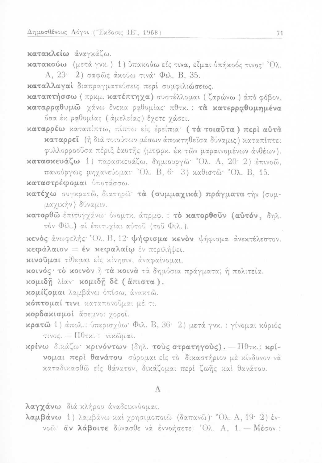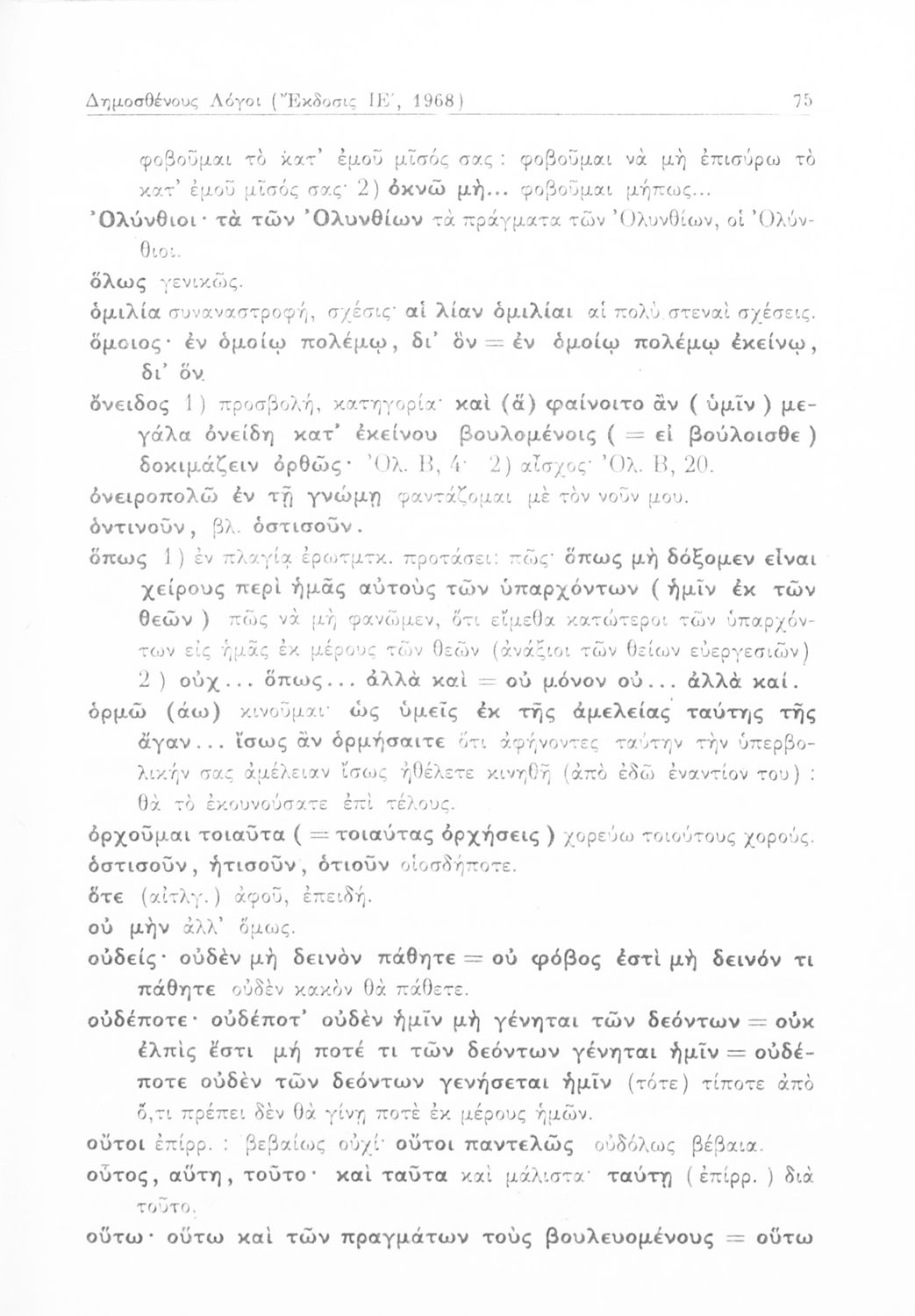 Σχολικό εγχειρίδιο Αρχαίων Ελληνικών Γυμνασίου που περιλαμβάνει τους Ολυνθιακούς Α΄ και Β΄ και τους Φιλιππικούς Α΄ και Β' του Δημοσθένη, εισαγωγή και ερμηνευτικά σχόλια.