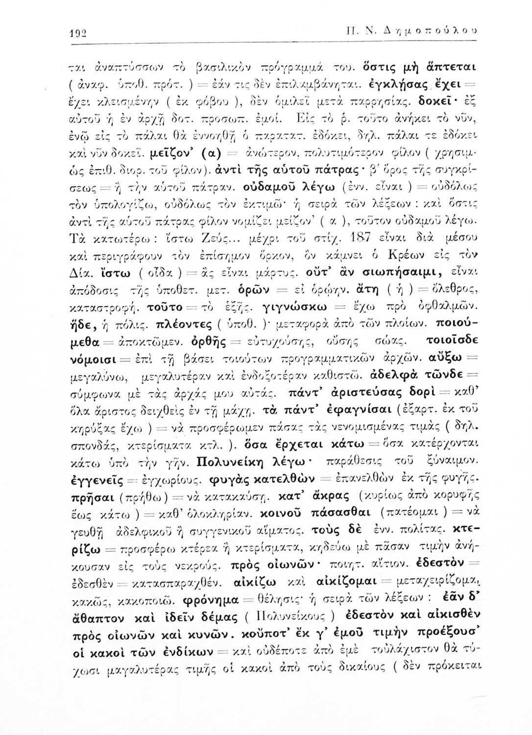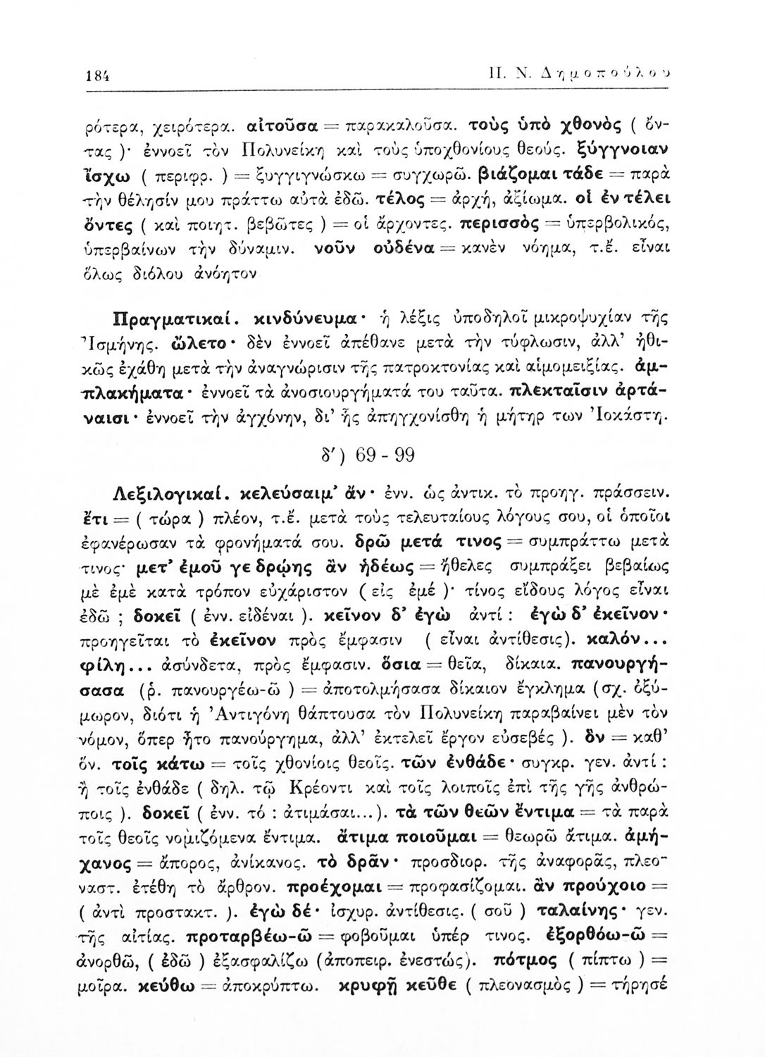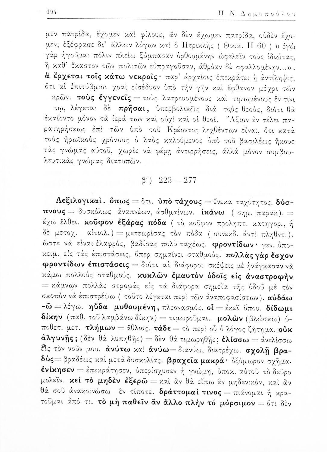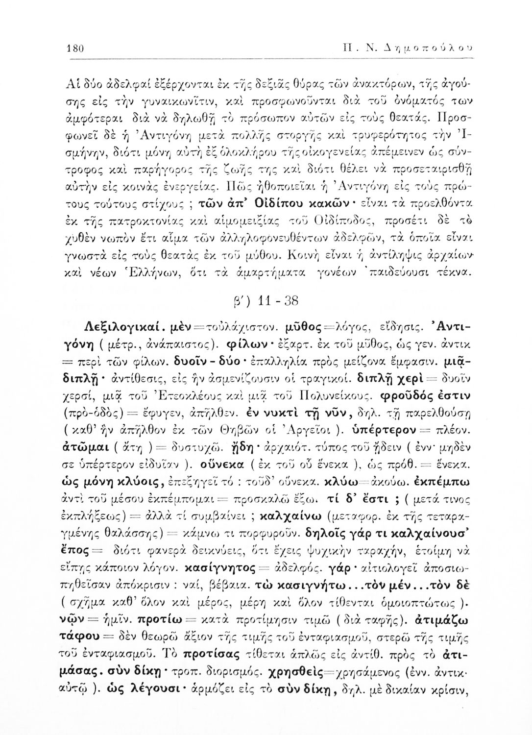 Σοφοκλής, Π. Ν Δημόπουλος (σχόλια)