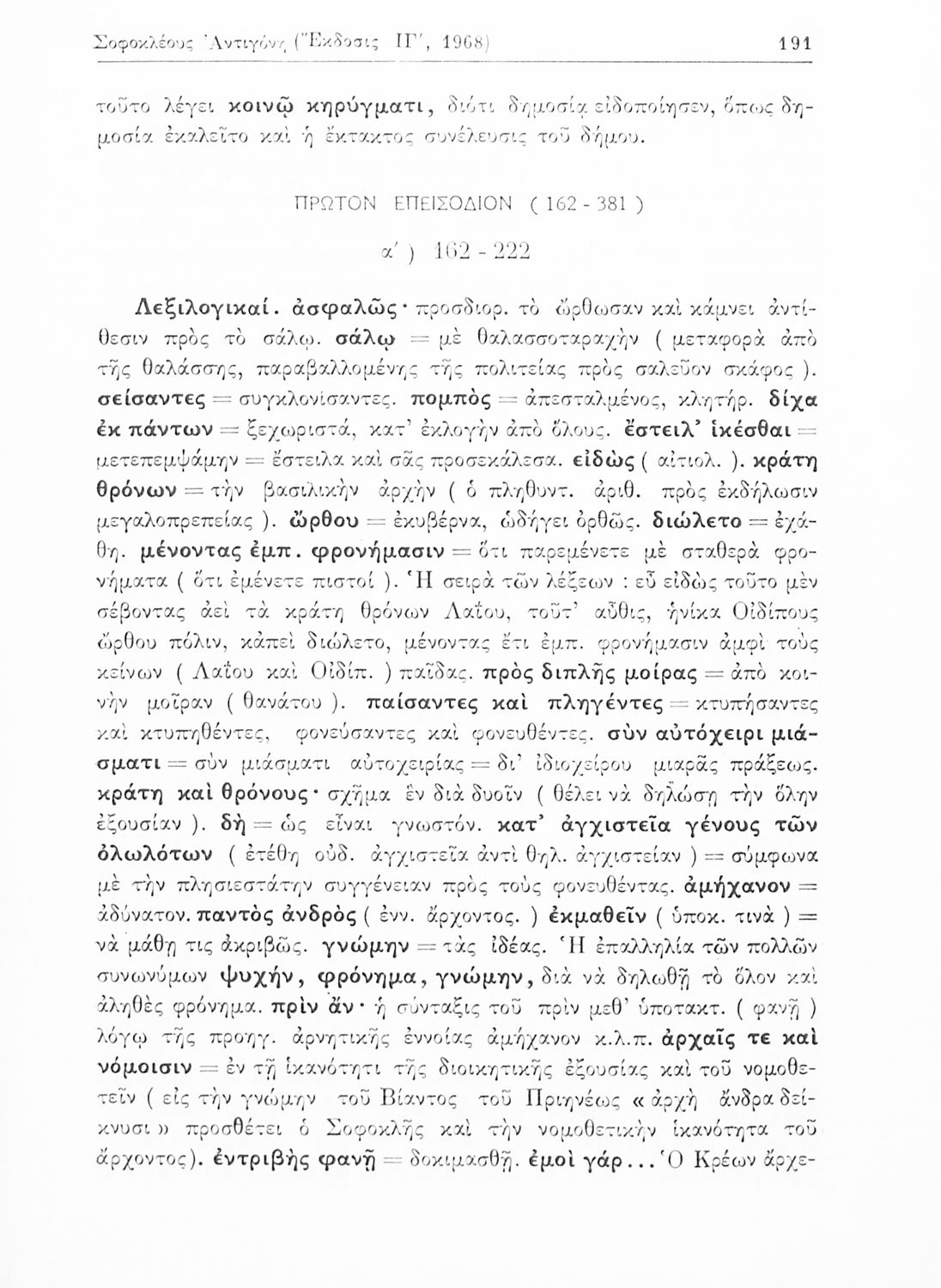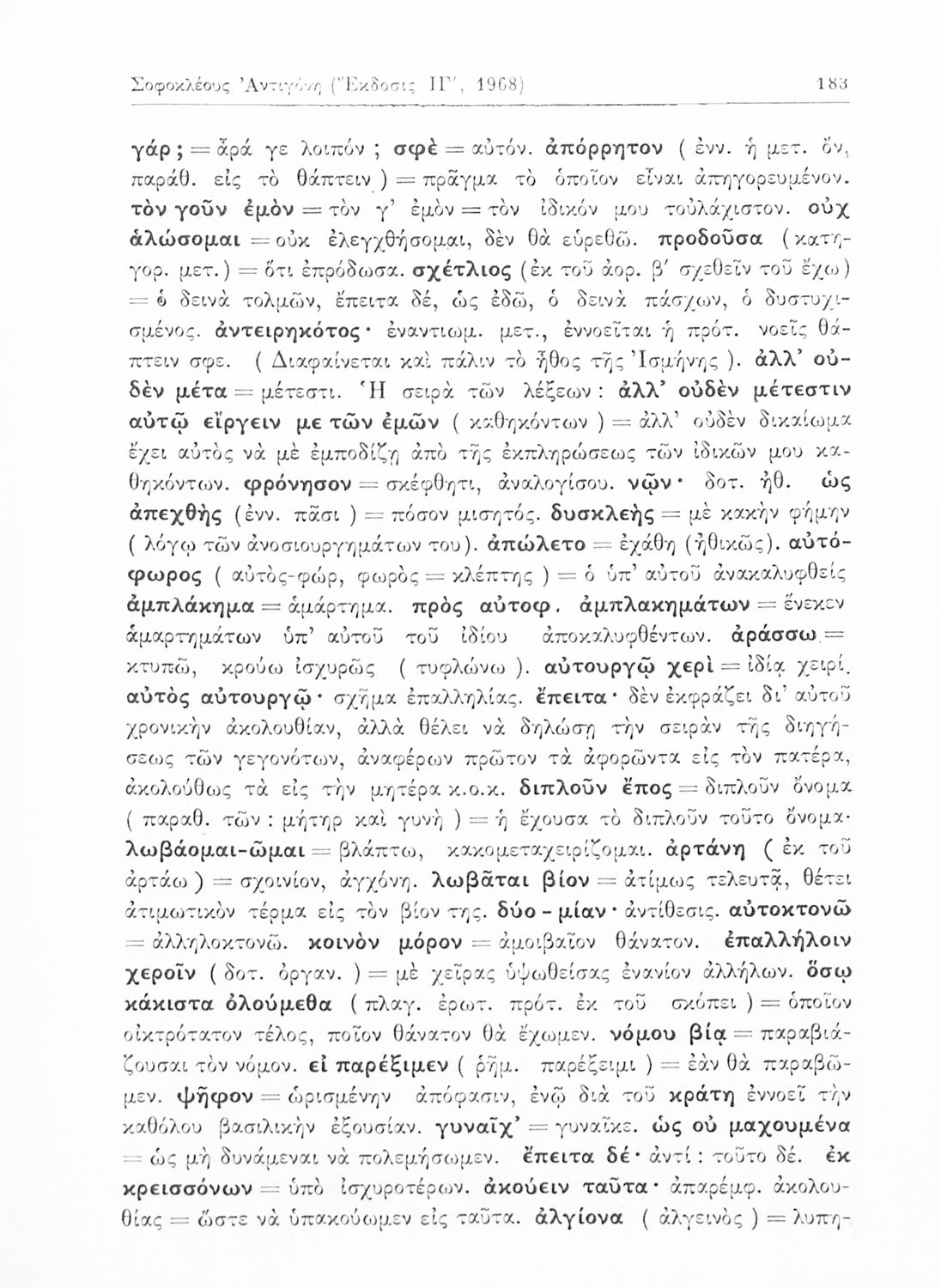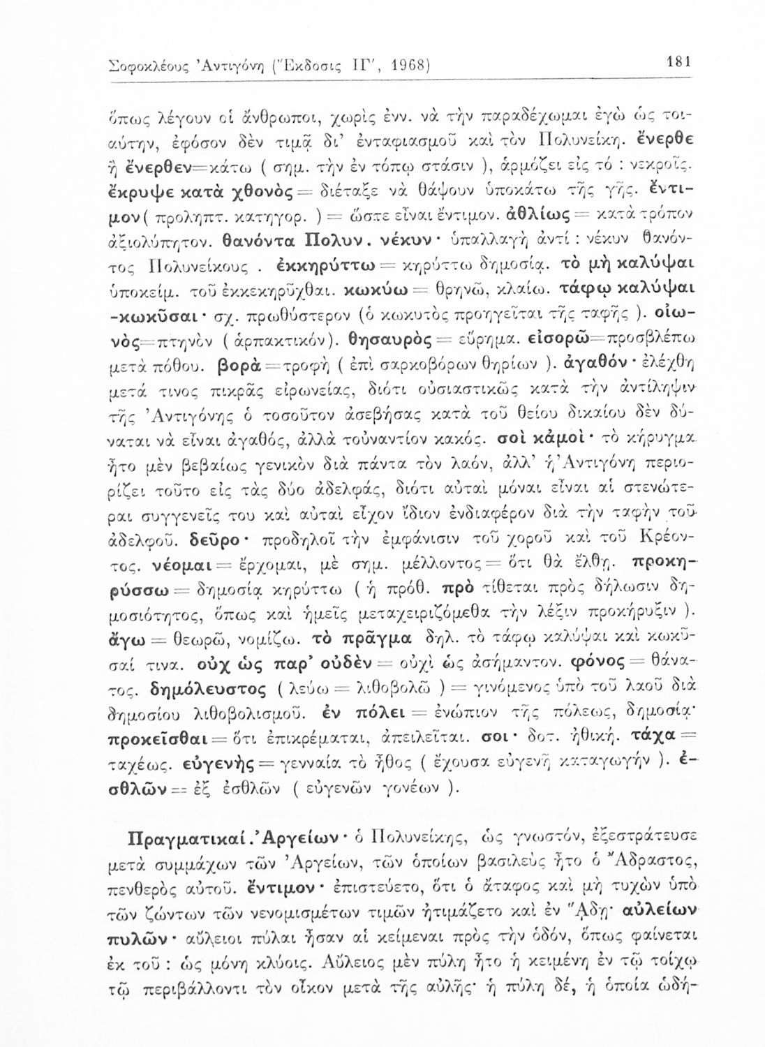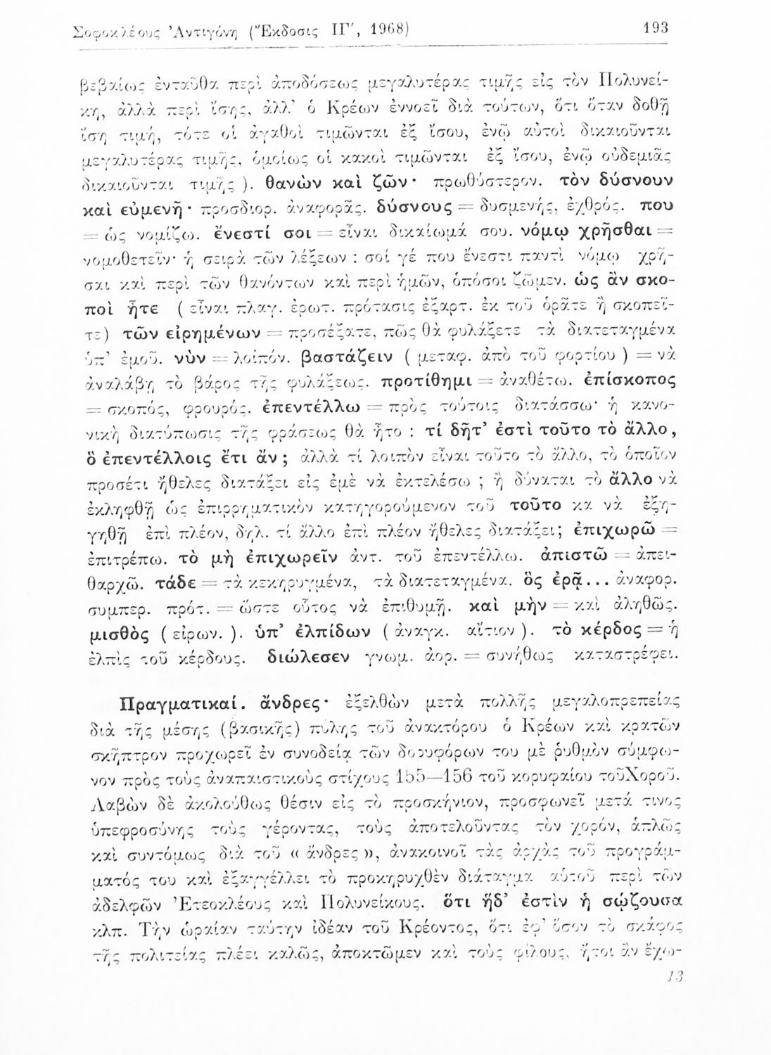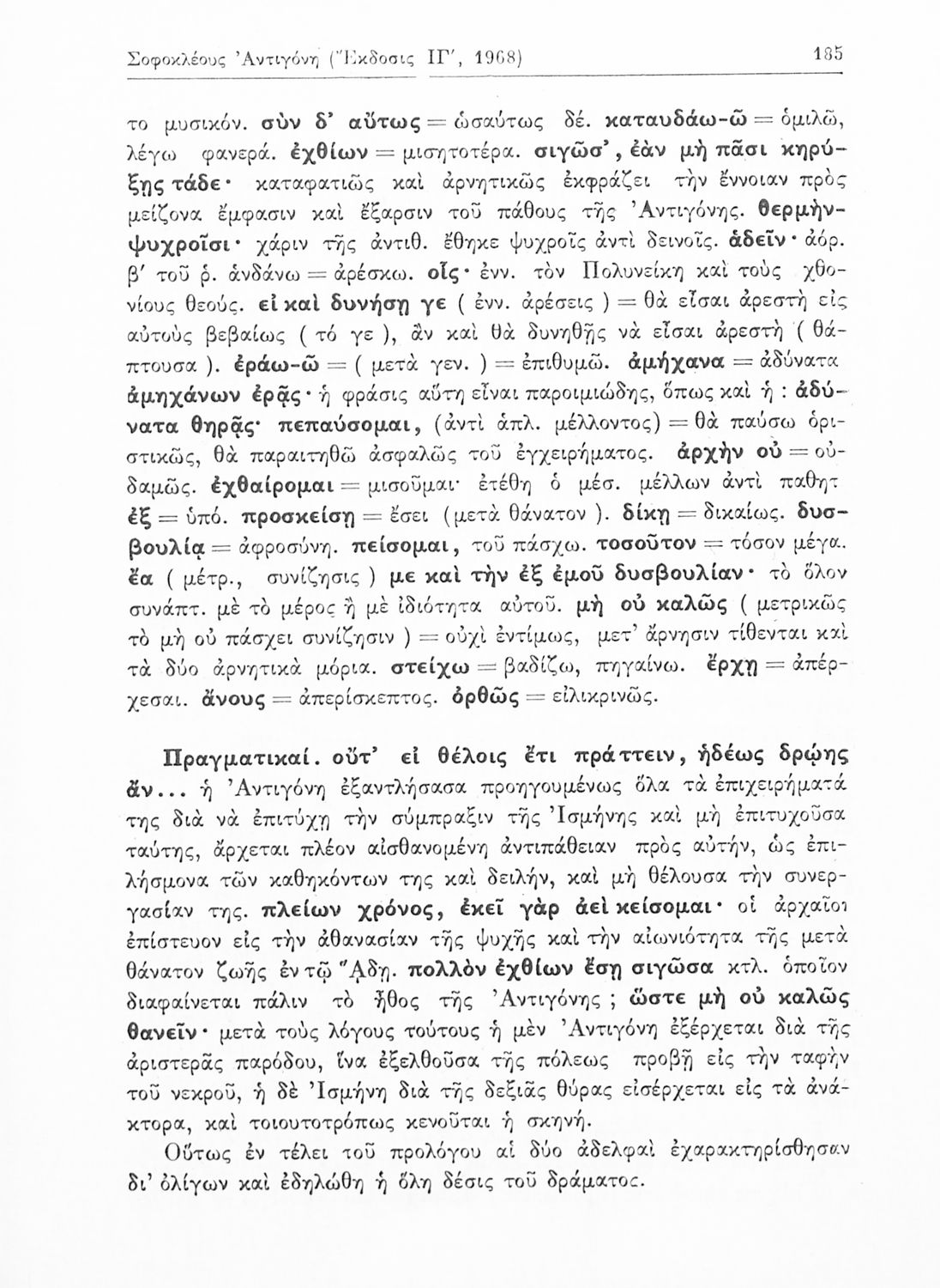 Μαθητικό βοήθημα για το μάθημα των Αρχαίων Ελληνικών. Περιέχει την Αντιγόνη του Σοφοκλή με ερμηνευτικές παρατηρήσεις.