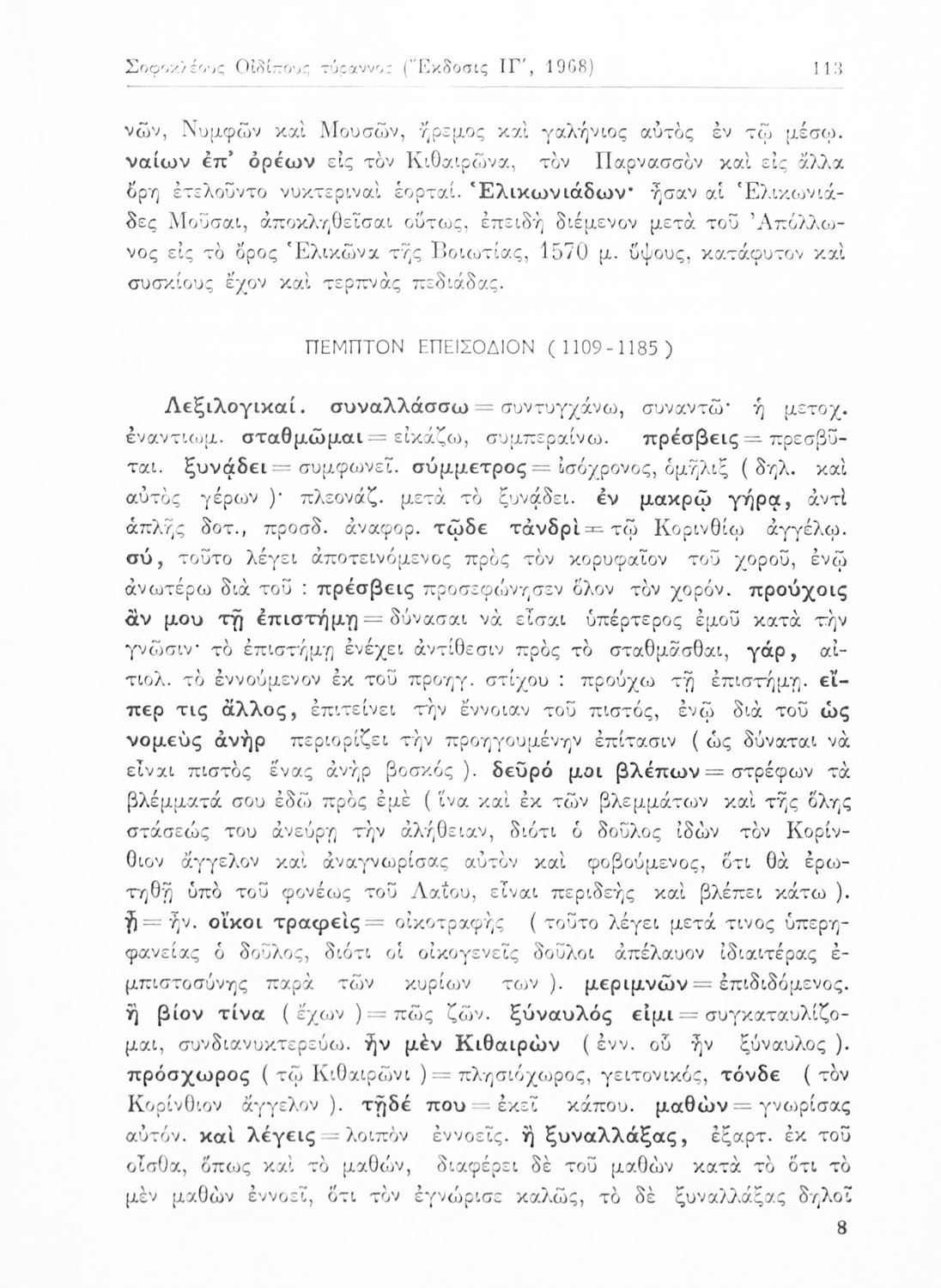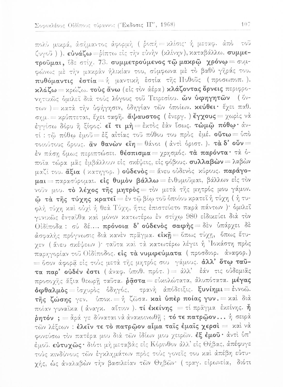 Σχολικό εγχειρίδιο του Γυμνασίου για το μάθημα των Αρχαίων Ελληνικών που περιέχει την τραγωδία του Σοφοκλή Οιδίπους Τύραννος, ερμηνευτικά και πραγματολογικά σχόλια και λεξιλογικές παρατηρήσεις.
