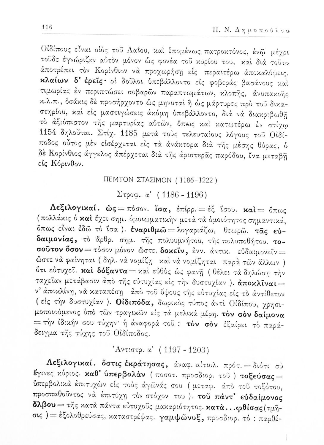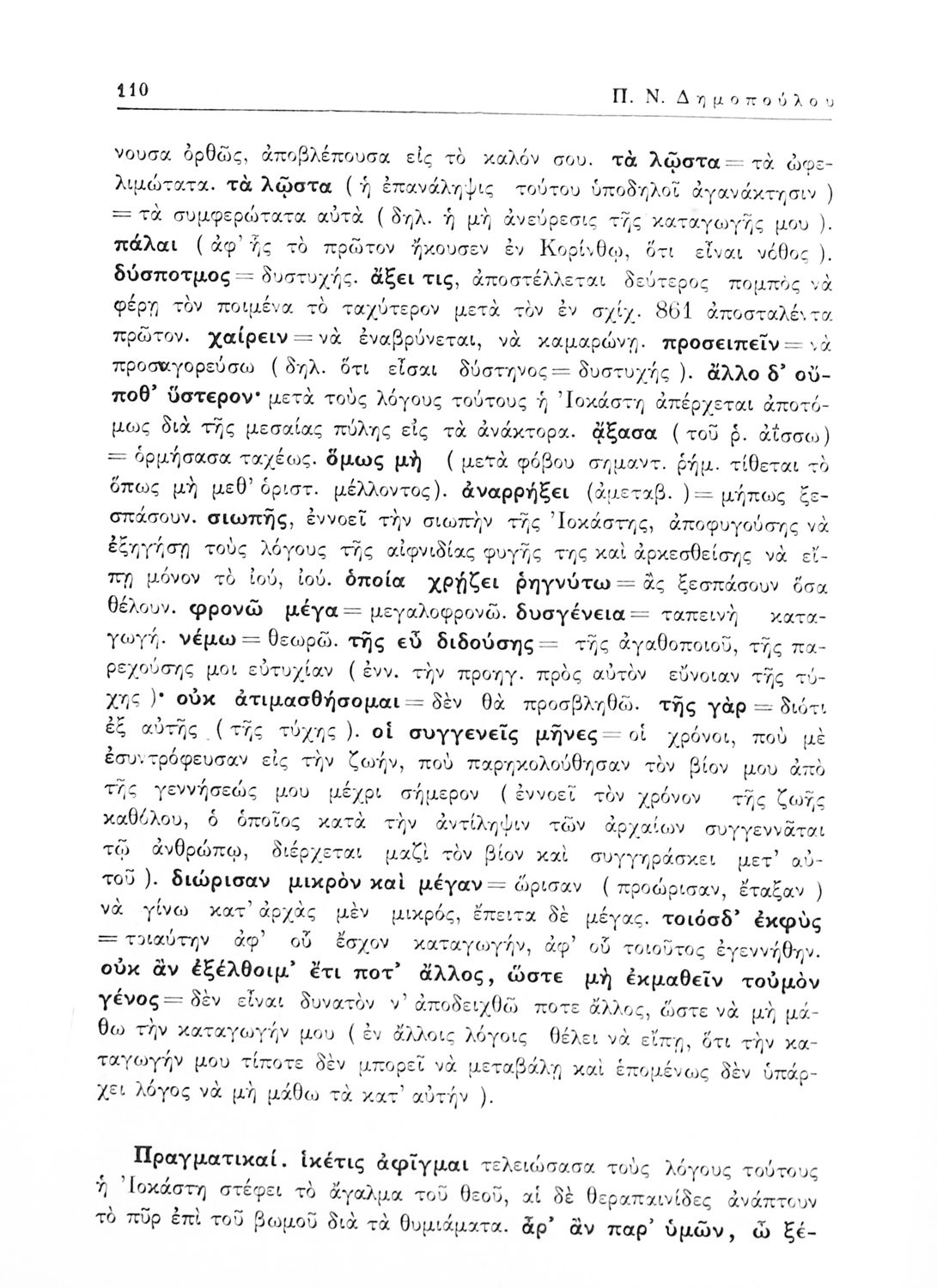 Σοφοκλής, Π.Ν Δημόπουλος (σχόλια)