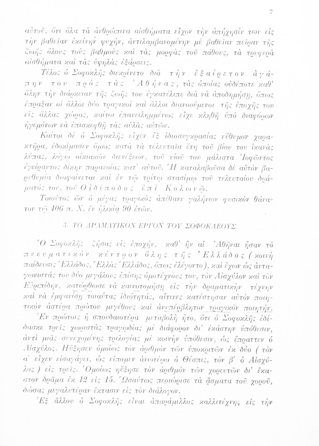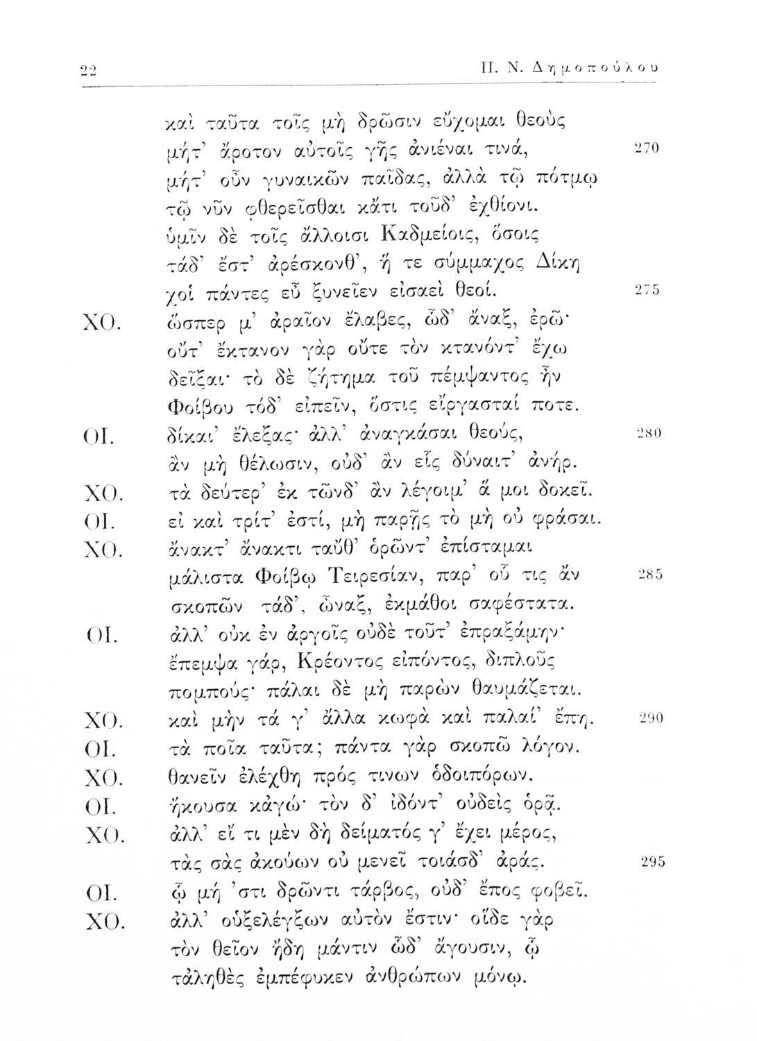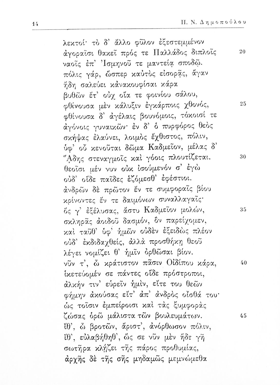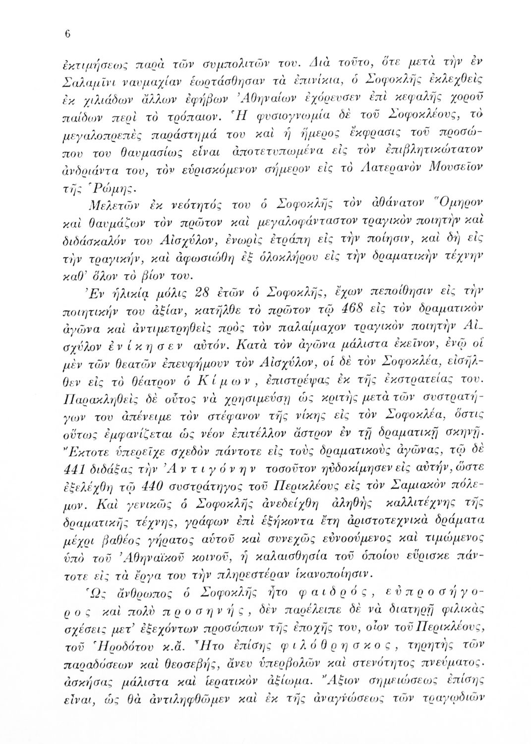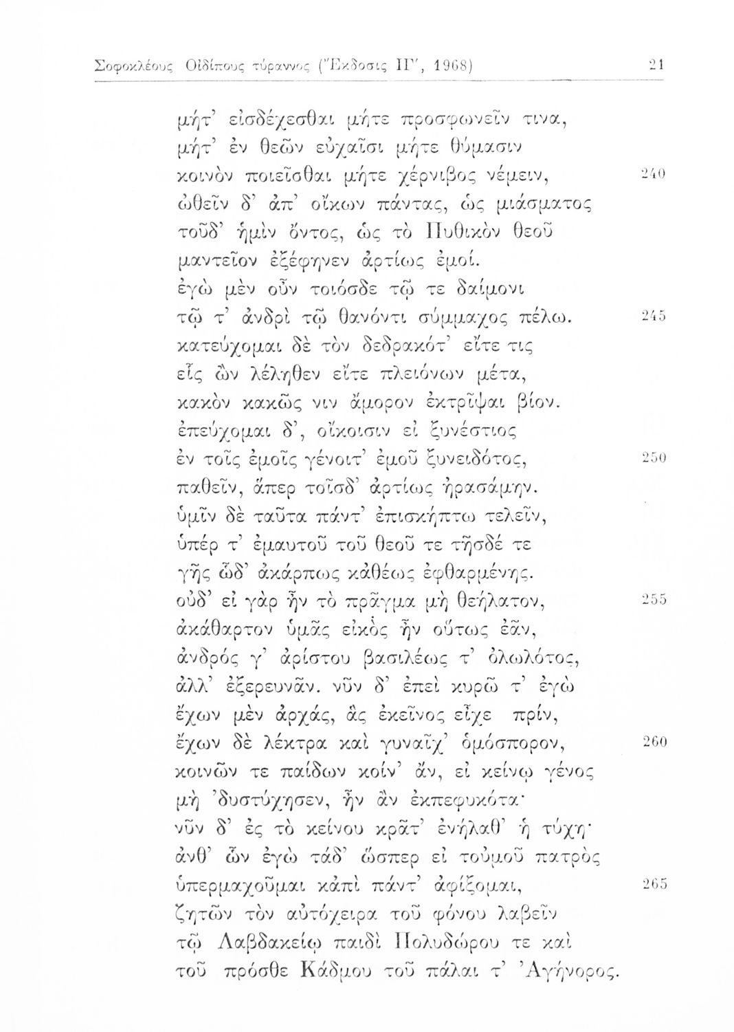 Σχολικό εγχειρίδιο Αρχαίων Ελληνικών Γυμνασίου το οποίο περιλαμβάνει το έργο του Σοφοκλή 'Οιδίπους Τύραννος'. Το βιβλίο ξεκινάει με μια εισαγωγή στην αρχαία ελληνική τραγωδία και βιογραφικά στοιχεία του Σοφοκλή. Στη συνέχεια παρουσιάζει το εν λόγω κείμενο το οποίο συνοδεύεται από ερμηνευτικές και γλωσσικές σημειώσεις.