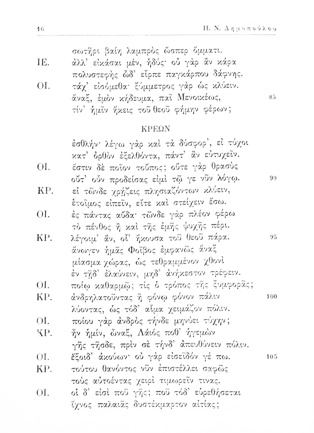 LDR 01347 2200181 4500 035 ## _a02-00627 040 ## _aΕλληνικό Λογοτεχνικό και Ιστορικό Αρχείο 041 ## _ael 100 ## _aΣοφοκλής _aΠ. Ν. Δημόπουλος (σχόλια) 110 ## _a1968 ΣΟΦ 245 0# _aΣοφοκλέους τραγωδίαι, Οιδίπους Τύραννος 260 ## _aΑθήνα _bΟργανισμός Εκδόσεως Διδακτικών Βιβλίων _c1968 300 ## _a129 520 ## _aΣχολικό εγχειρίδιο Αρχαίων Ελληνικών Γυμνασίου το οποίο περιλαμβάνει το έργο του Σοφοκλή 'Οιδίπους Τύραννος'. Το βιβλίο ξεκινάει με μια εισαγωγή στην αρχαία ελληνική τραγωδία και βιογραφικά στοιχεία του Σοφοκλή. Στη συνέχεια παρουσιάζει το εν λόγω κείμενο το οποίο συνοδεύεται από ερμηνευτικές και γλωσσικές σημειώσεις. 522 ## _aΕλλάδα 546 ## _aΚαθαρεύουσα 563 ## _aΜαλακό Εξώφυλλο 650 #4 _aΑρχαία τραγωδία _aΙοκάστη _aΚρέοντας _aΟιδίποδας _aΣοφοκλής _aΤειρεσίας
