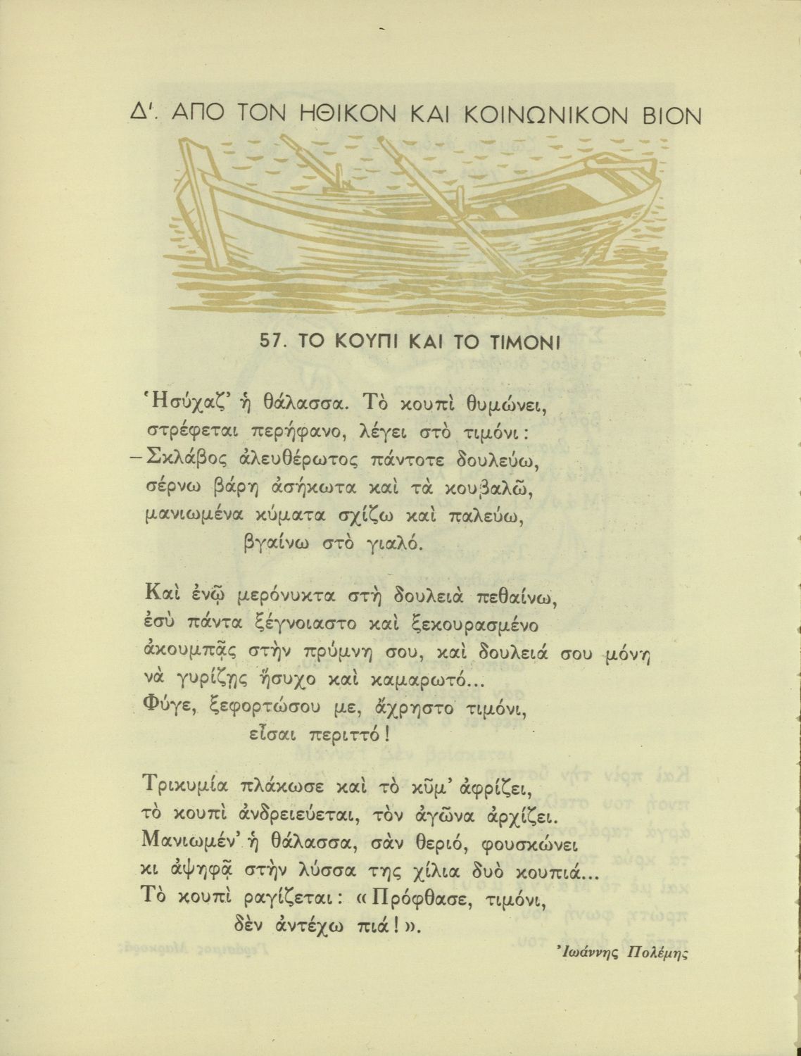 Αναγνωστικό της ΣΤ΄ Δημοτικού που κυκλοφόρησε σε 7.000 αντίτυπα 25 ημέρες πριν την 4η Αυγούστου 1936, οπότε κατά την επόμενη σχολική χρονιά διδάχτηκε ελάχιστα και η έκδοσή του με αυτή την μορφή σταμάτησε.