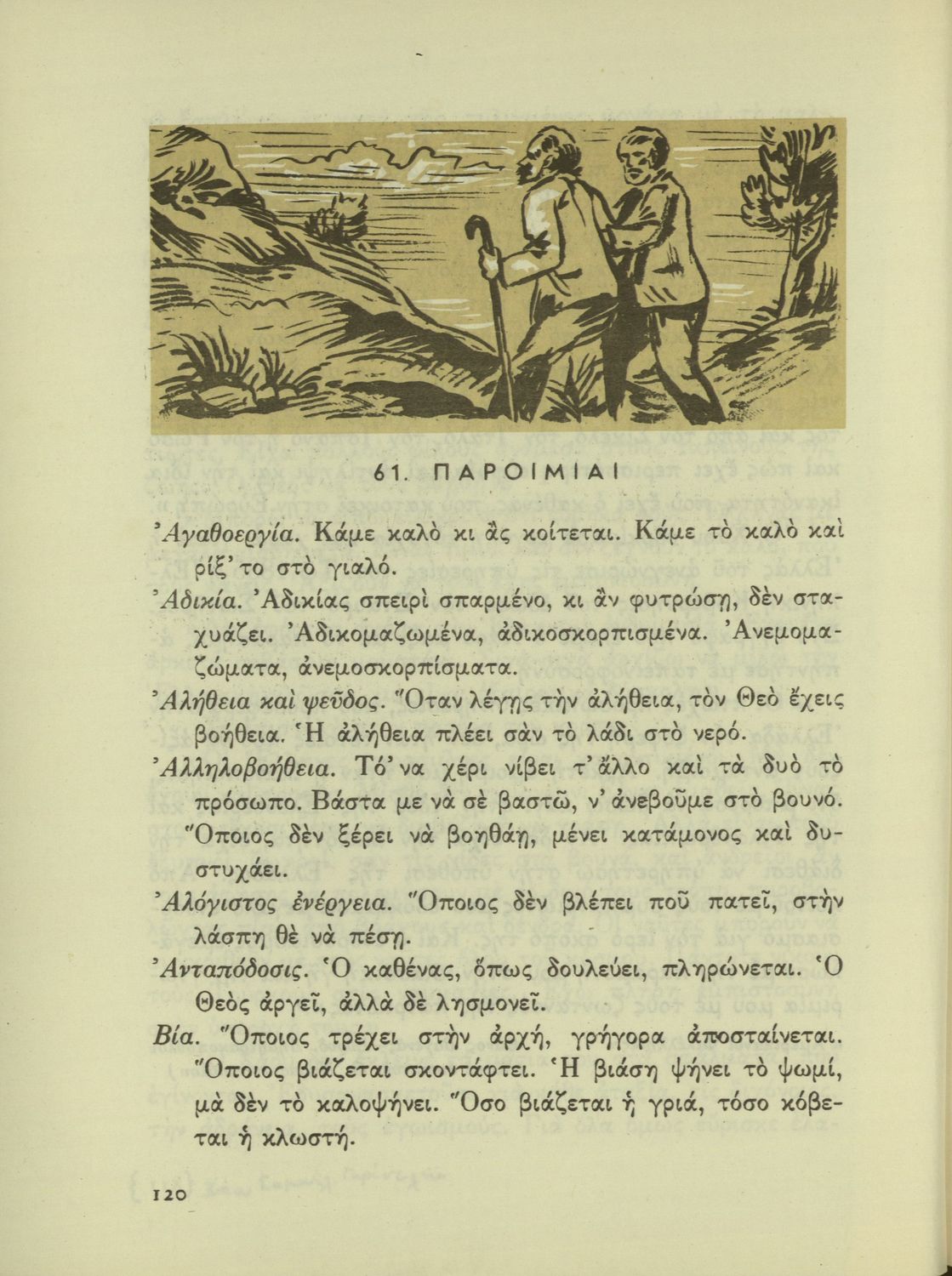 Αναγνωστικό της ΣΤ΄ Δημοτικού που κυκλοφόρησε σε 7.000 αντίτυπα 25 ημέρες πριν την 4η Αυγούστου 1936, οπότε κατά την επόμενη σχολική χρονιά διδάχτηκε ελάχιστα και η έκδοσή του με αυτή την μορφή σταμάτησε.