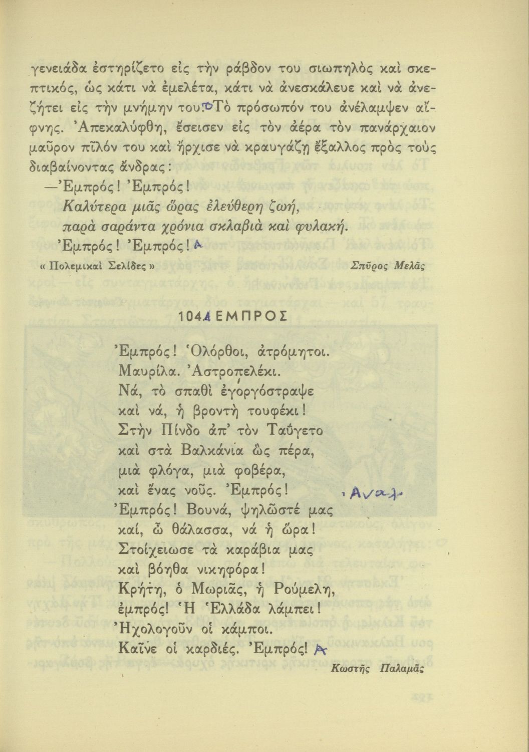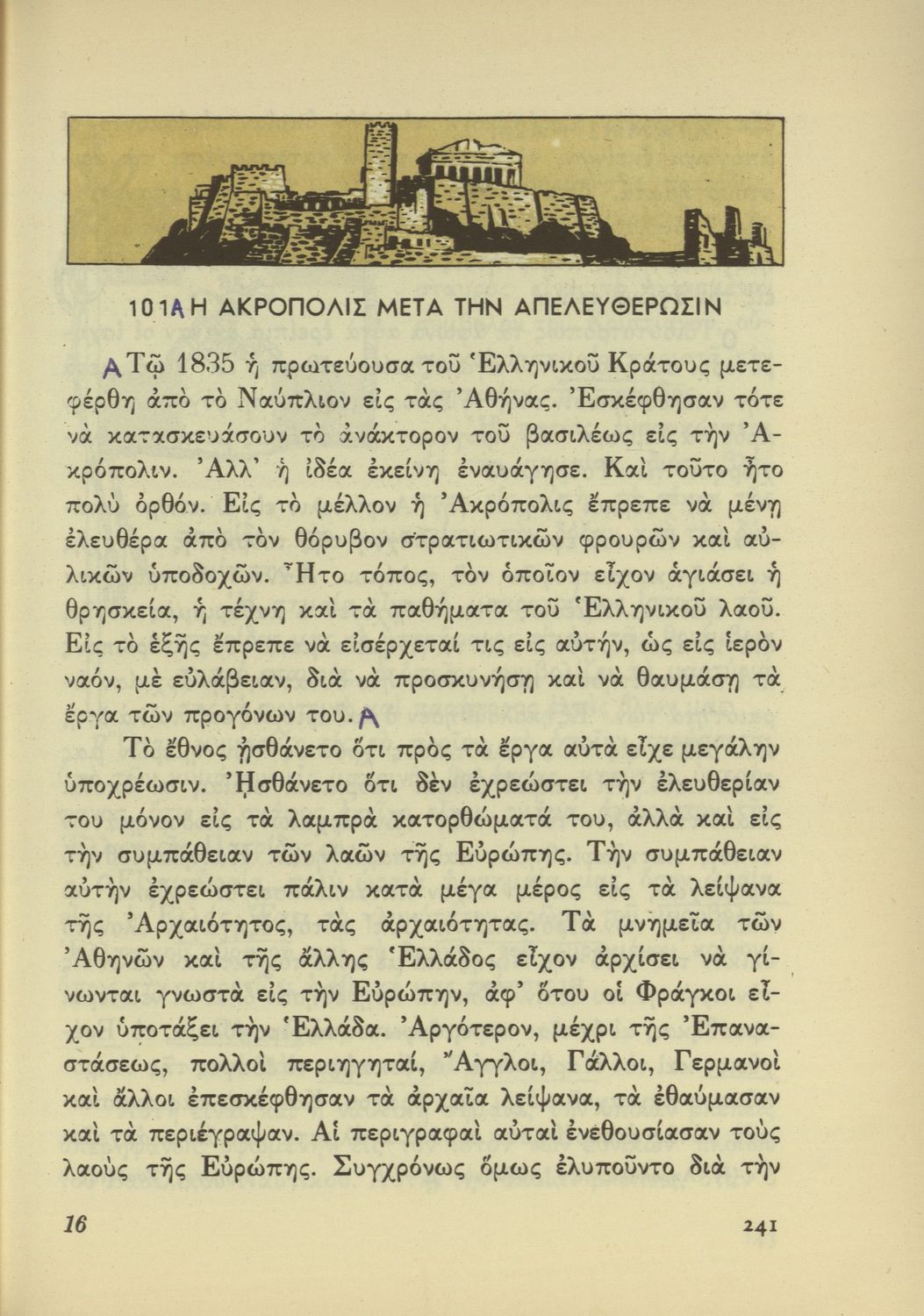 Αναγνωστικό της ΣΤ΄ Δημοτικού που κυκλοφόρησε σε 7.000 αντίτυπα 25 ημέρες πριν την 4η Αυγούστου 1936, οπότε κατά την επόμενη σχολική χρονιά διδάχτηκε ελάχιστα και η έκδοσή του με αυτή την μορφή σταμάτησε.