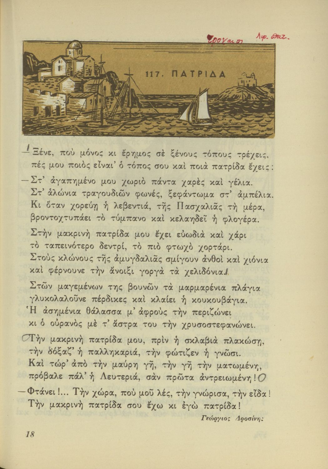 Αναγνωστικό ΣΤ΄ Δημοτικού που αντλεί τα θέματά του από τη θρησκευτική, εθνική, οικογενειακή, κοινωνική και επαγγελματική ζωή και την σύγχρονη ελληνική ιστορία. Φέρει το σύμβολο της δικτατορίας.
