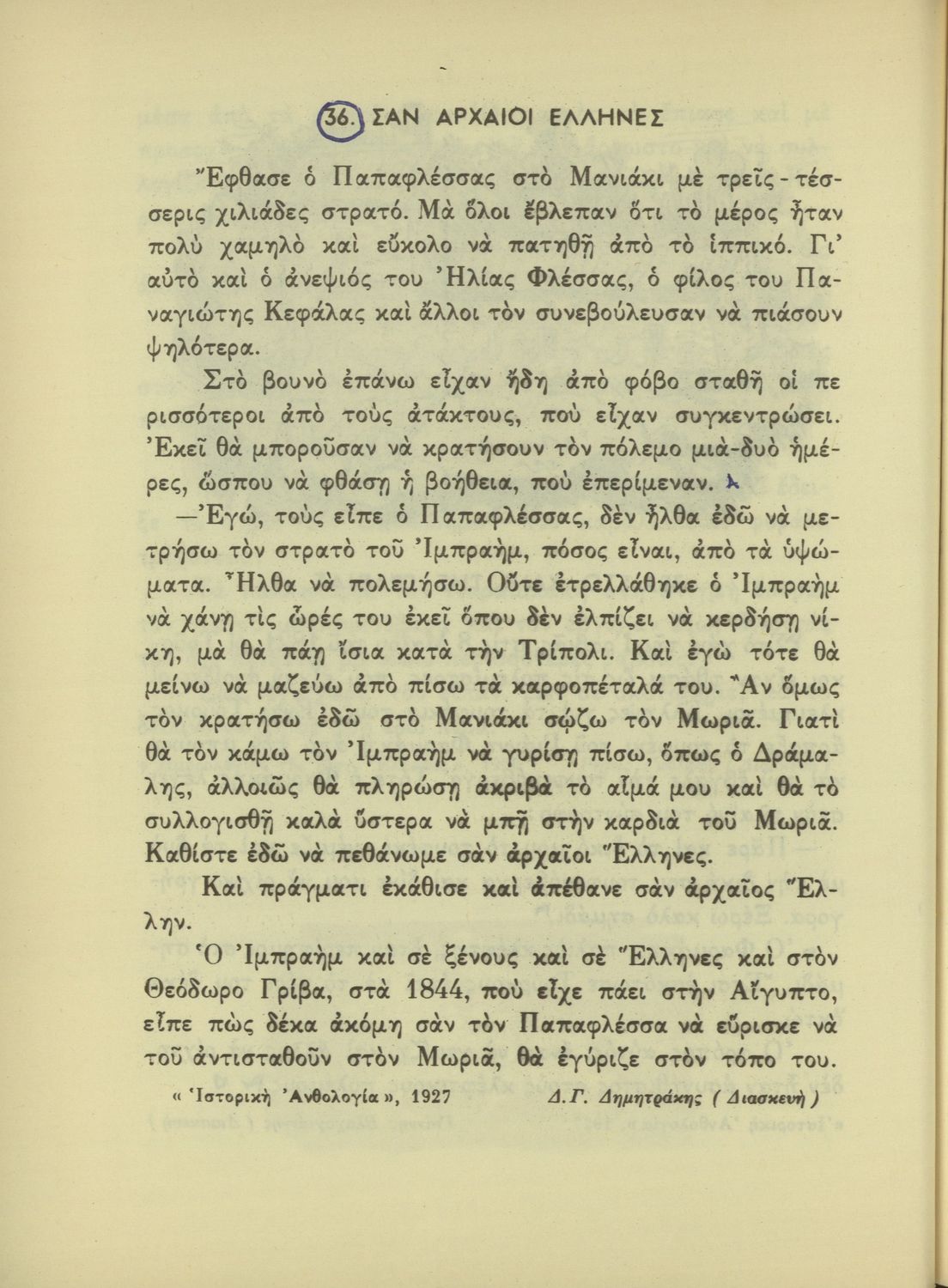 Αναγνωστικό της ΣΤ΄ Δημοτικού που κυκλοφόρησε σε 7.000 αντίτυπα 25 ημέρες πριν την 4η Αυγούστου 1936, οπότε κατά την επόμενη σχολική χρονιά διδάχτηκε ελάχιστα και η έκδοσή του με αυτή την μορφή σταμάτησε.