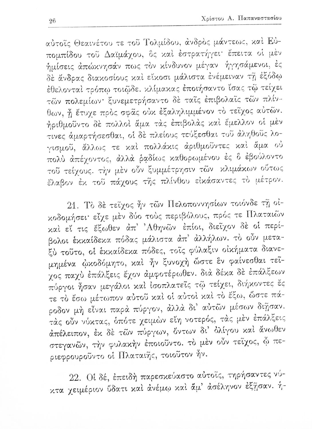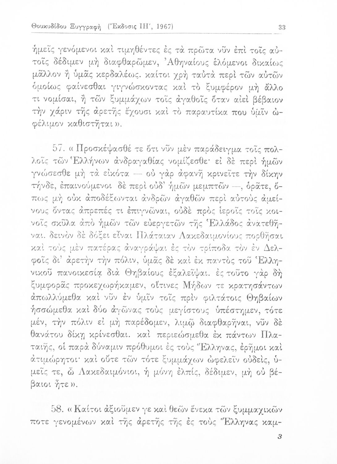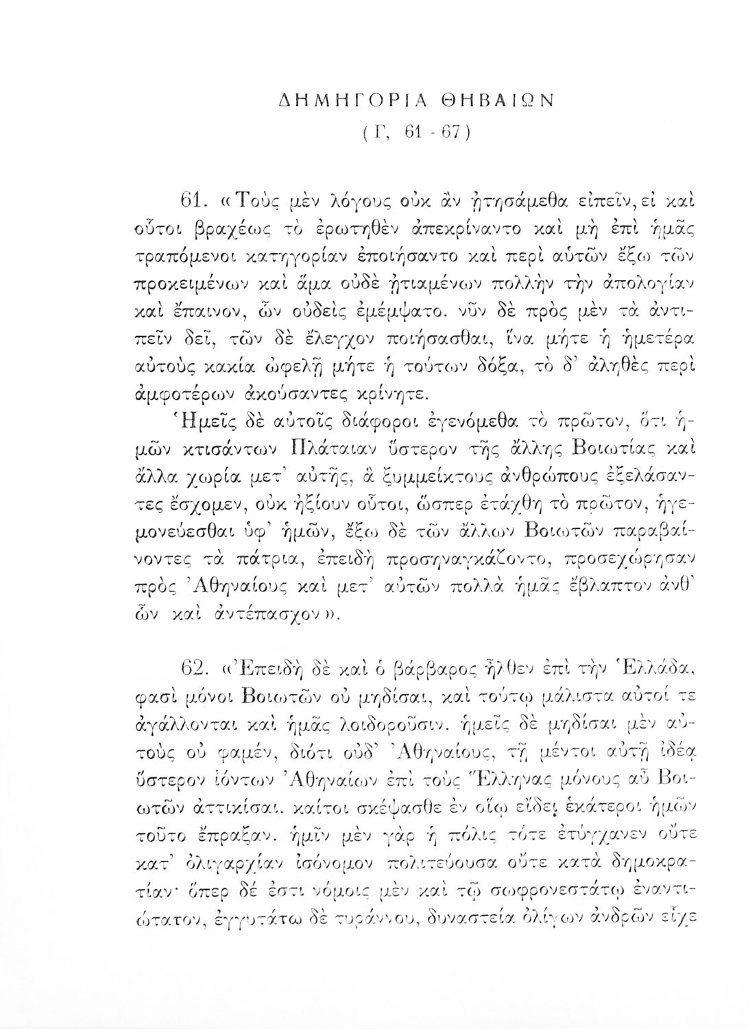 Σχολικό εγχειρίδιο Αρχαίων Ελληνικών Α΄ και Γ΄ Λυκείου που περιέχει εισαγωγή στη ζωή και το έργο του Θουκυδίδη, αποσπάσματα από τα Πλαταιϊκά, τα Λεσβιακά και τον Επιτάφιο του Περικλή και ερμηνευτικές σημειώσεις.