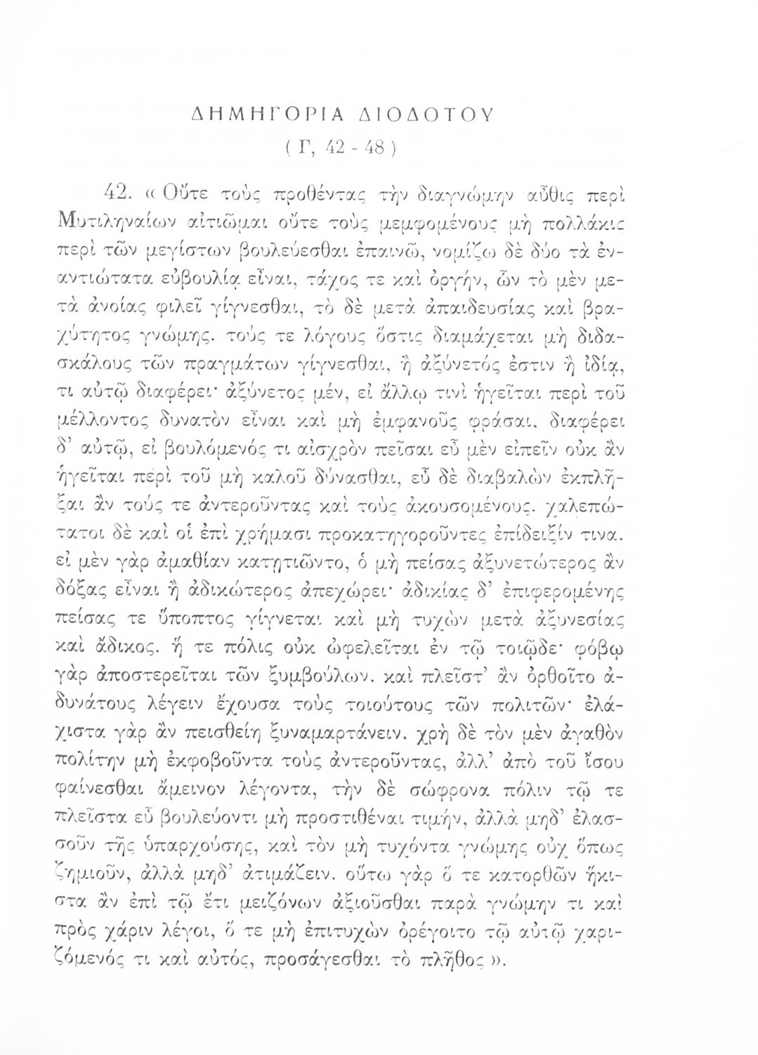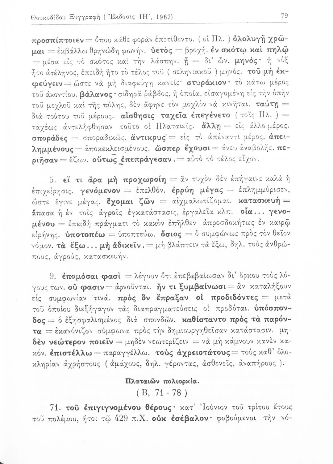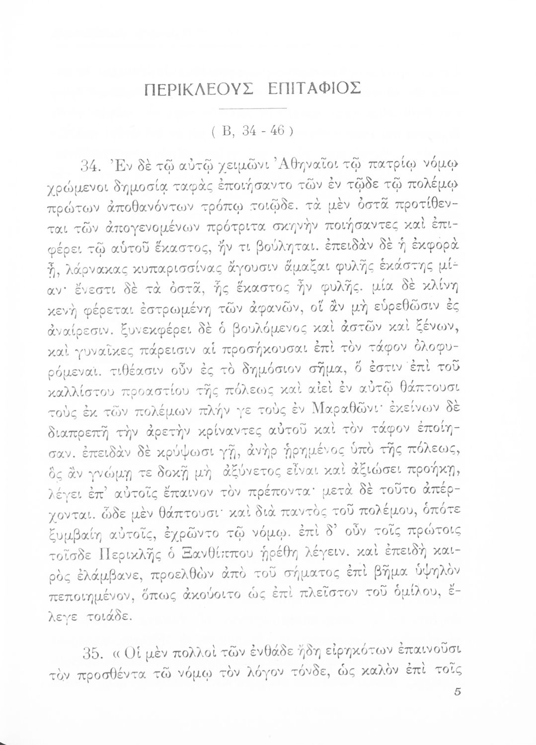 Σχολικό εγχειρίδιο Αρχαίων Ελληνικών Α΄ και Γ΄ Λυκείου που περιέχει εισαγωγή στη ζωή και το έργο του Θουκυδίδη, αποσπάσματα από τα Πλαταιϊκά, τα Λεσβιακά και τον Επιτάφιο του Περικλή και ερμηνευτικές σημειώσεις.