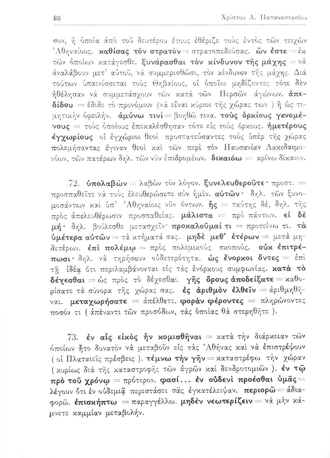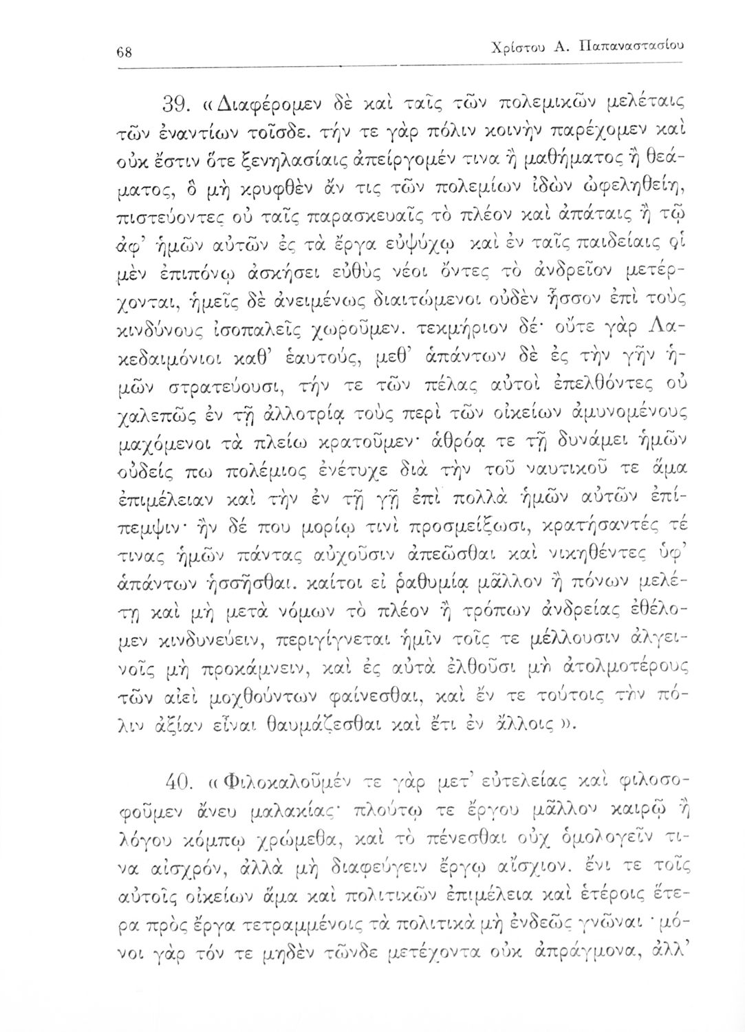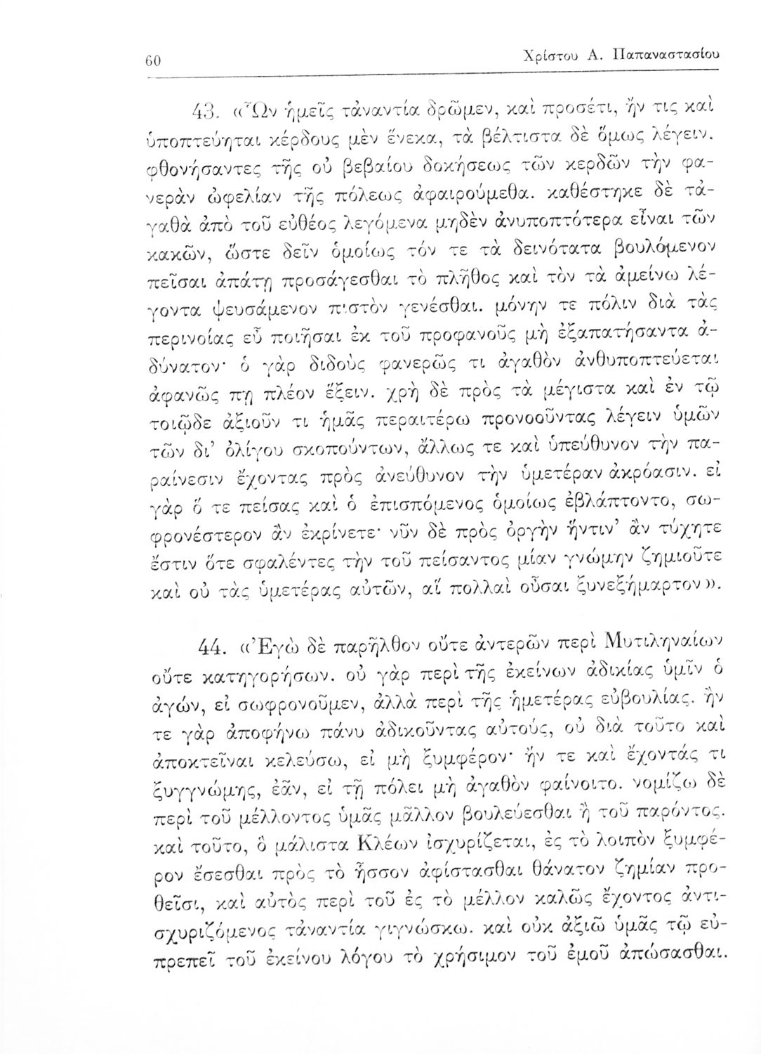 Θουκυδίδης, Χρισ. Παπαναστασίου (σχόλια)