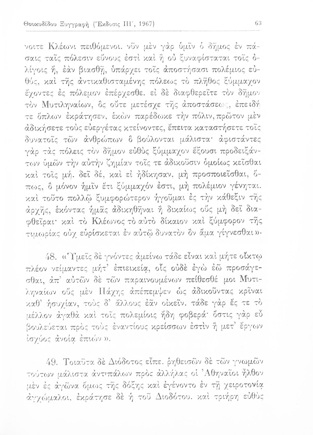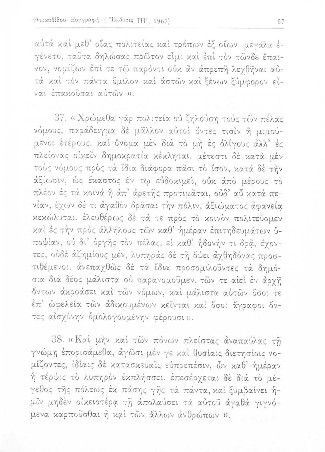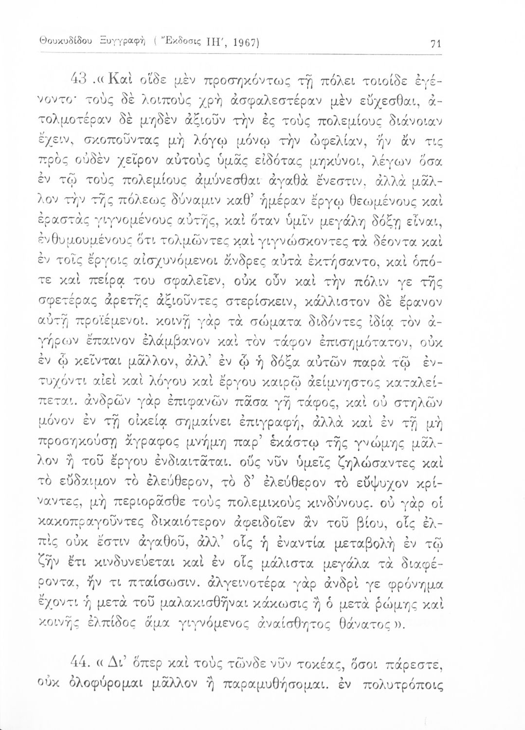 Θουκυδίδης, Χρισ. Παπαναστασίου (σχόλια)