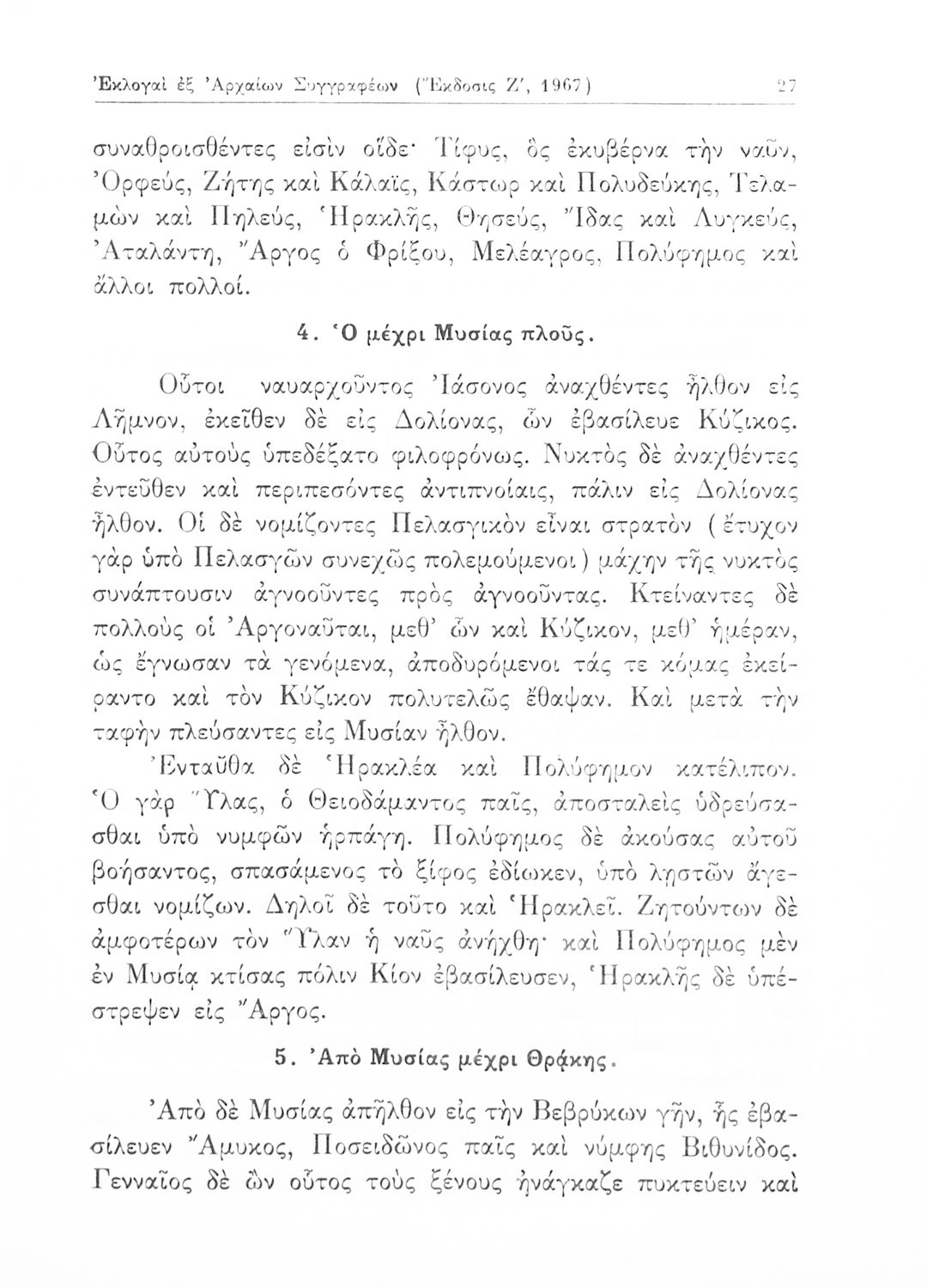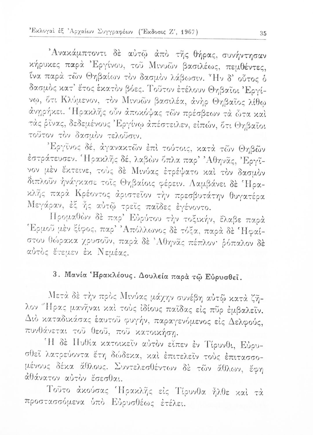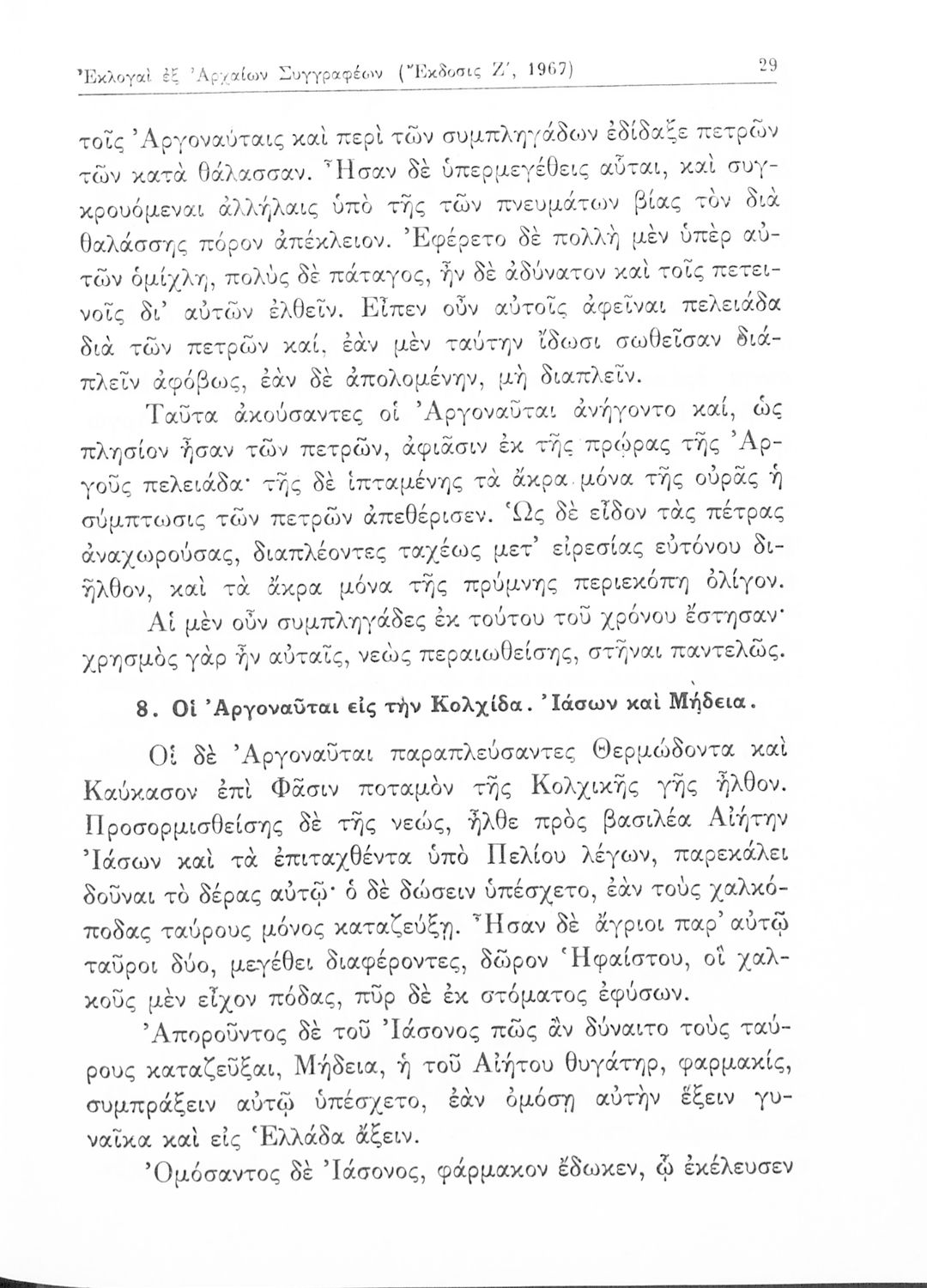 Σχολικό εγχειρίδιο Αρχαίων Ελληνικών Β΄ και Γ΄ Γυμνασίου και Αστικού Σχολείου που περιέχει αποσπάσματα από έργα αρχαίων Ελλήνων συγγραφέων, ερμηνευτικά και πραγματολογικά σχόλια και γραμματικές παρατηρήσεις.