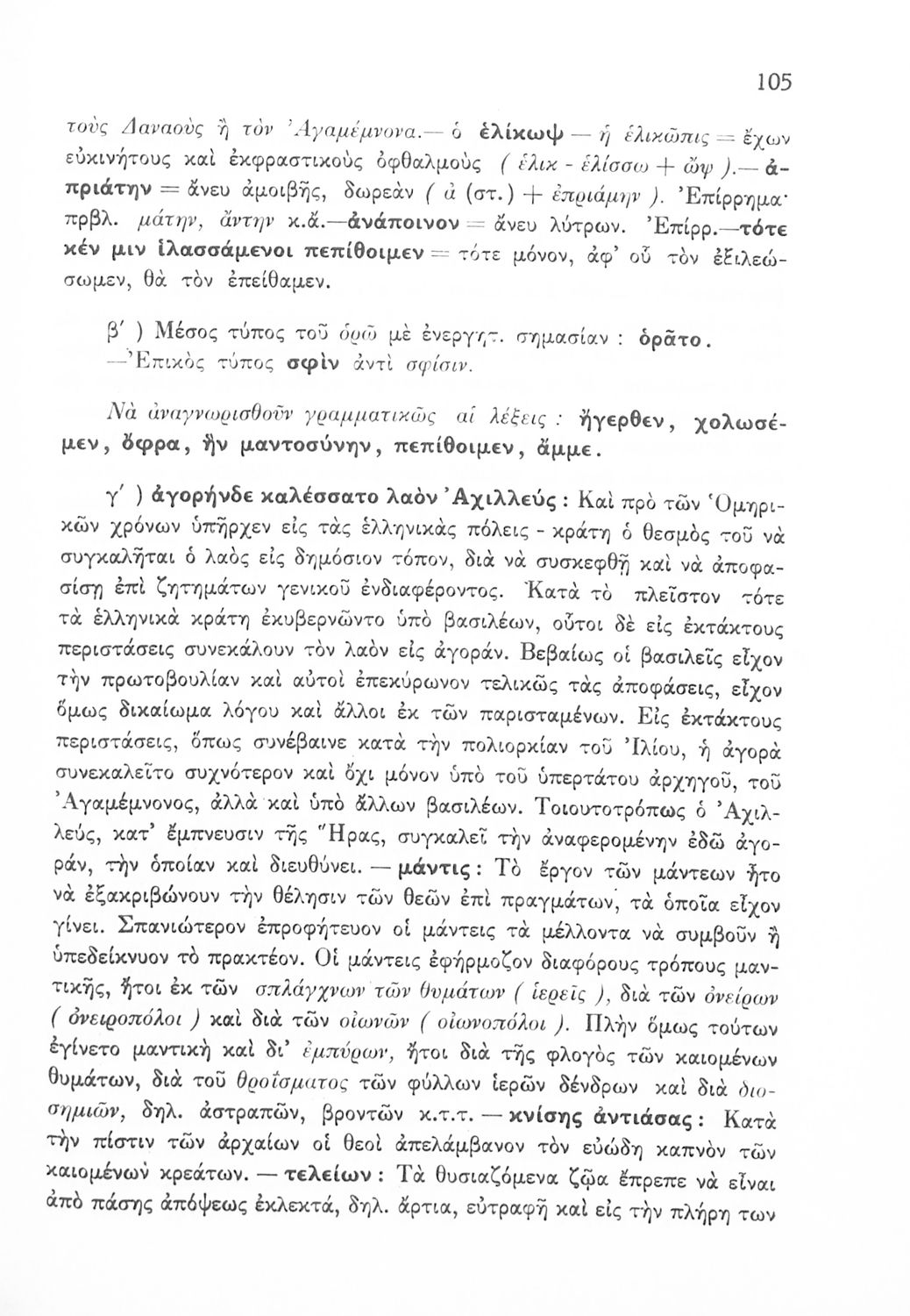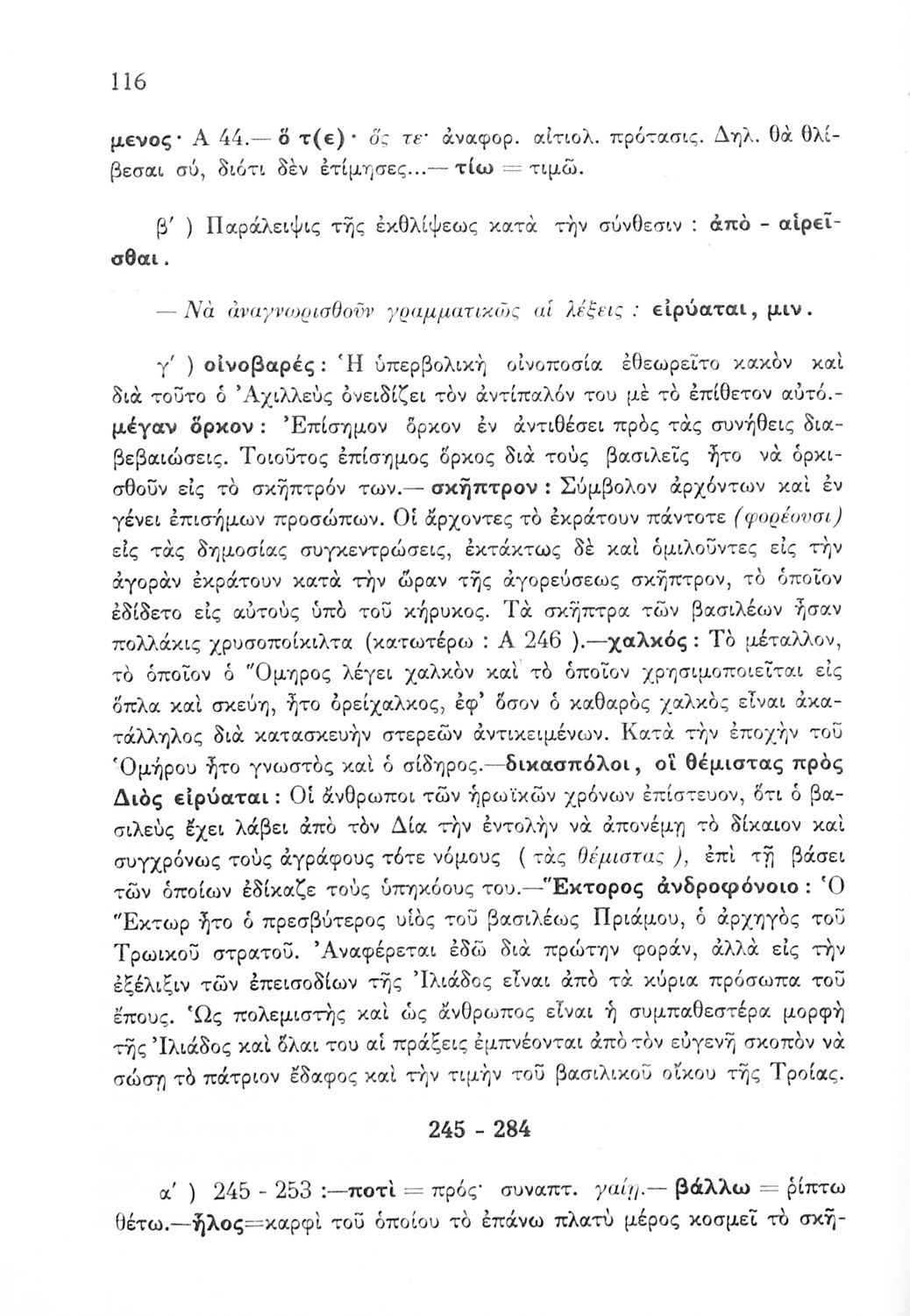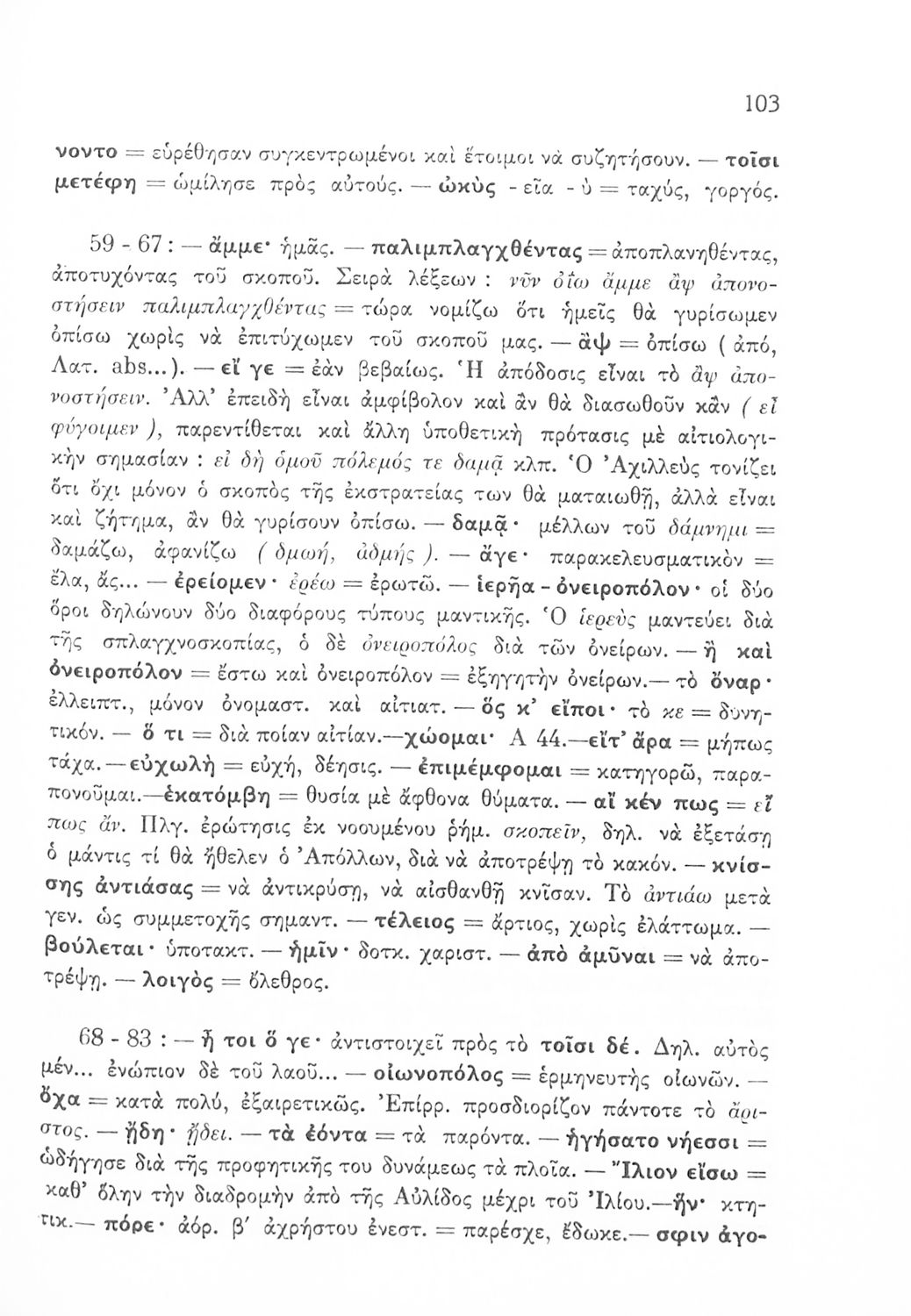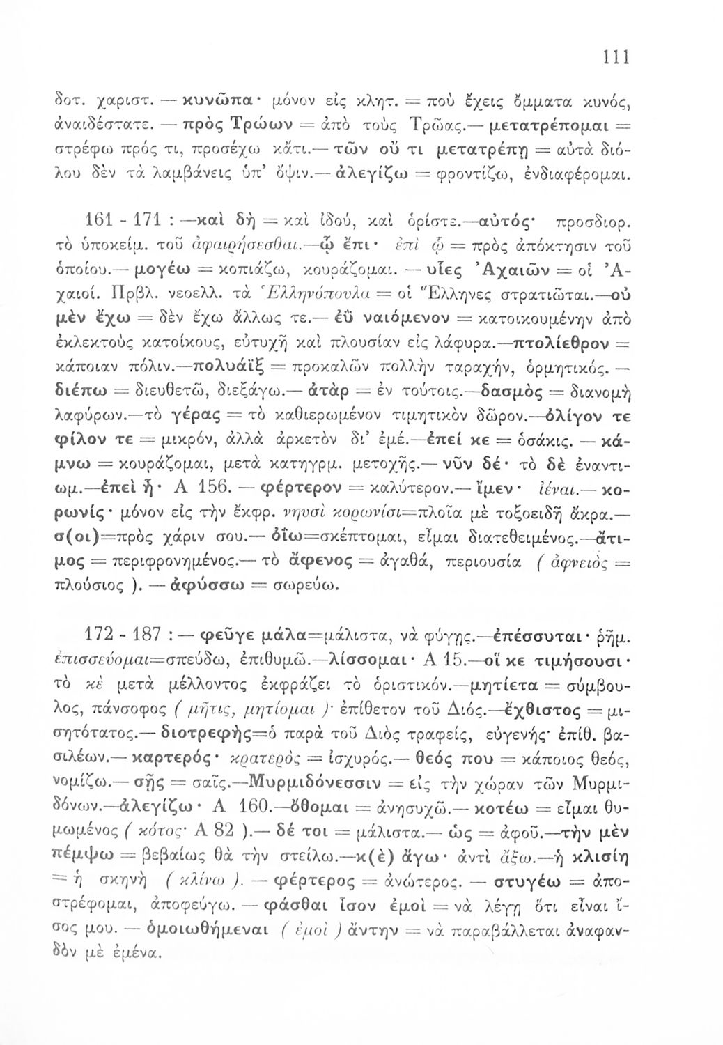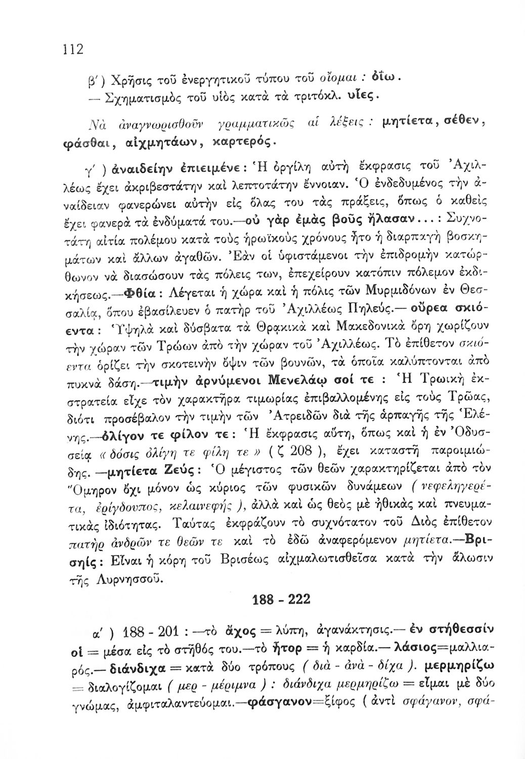 Σχολικό εγχειρίδιο Αρχαίων Ελληνικών των τριών τάξεων του Λυκείου. Το βιβλίο περιέχει αποσπάσματα από το ομηρικό έπος της 'Ιλιάδας'. Το βιβλίο ξεκινάει για την ιστορία του Τρωικού πόλεμου και συνεχίζει με αποσπάσματα από το ίδιο το έργο τα οποία συνοδεύονται από γλωσσικές και ερμηνευτικές σημειώσεις.