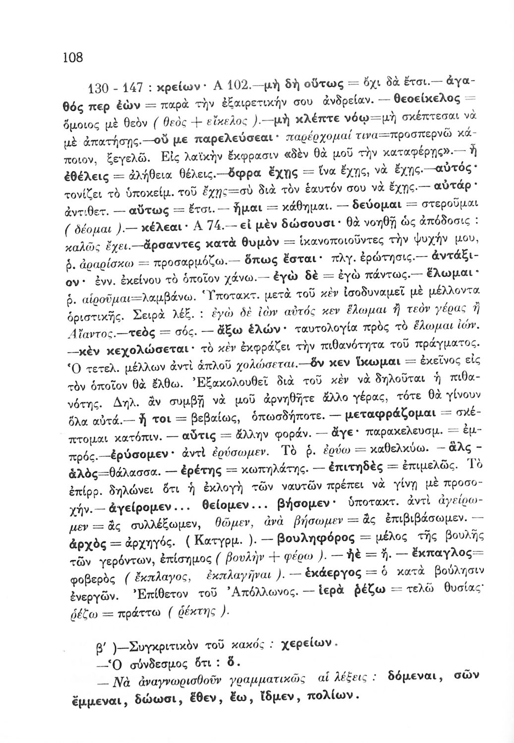 Βαθμίδα εκπαίδευσης: Δευτεροβάθμια Τάξη: Α' Λυκείου / Β' Λυκείου / Γ' Λυκείου Μάθημα: Αρχαία Ελληνικά Γλώσσα: Καθαρεύουσα Παρουσίαση περιεχομένου: Σχολικό εγχειρίδιο Αρχαίων Ελληνικών των τριών τάξεων του Λυκείου. Το βιβλίο περιέχει αποσπάσματα από το ομηρικό έπος της 'Ιλιάδας'. Το βιβλίο ξεκινάει για την ιστορία του Τρωικού πόλεμου και συνεχίζει με αποσπάσματα από το ίδιο το έργο τα οποία συνοδεύονται από γλωσσικές και ερμηνευτικές σημειώσεις. |