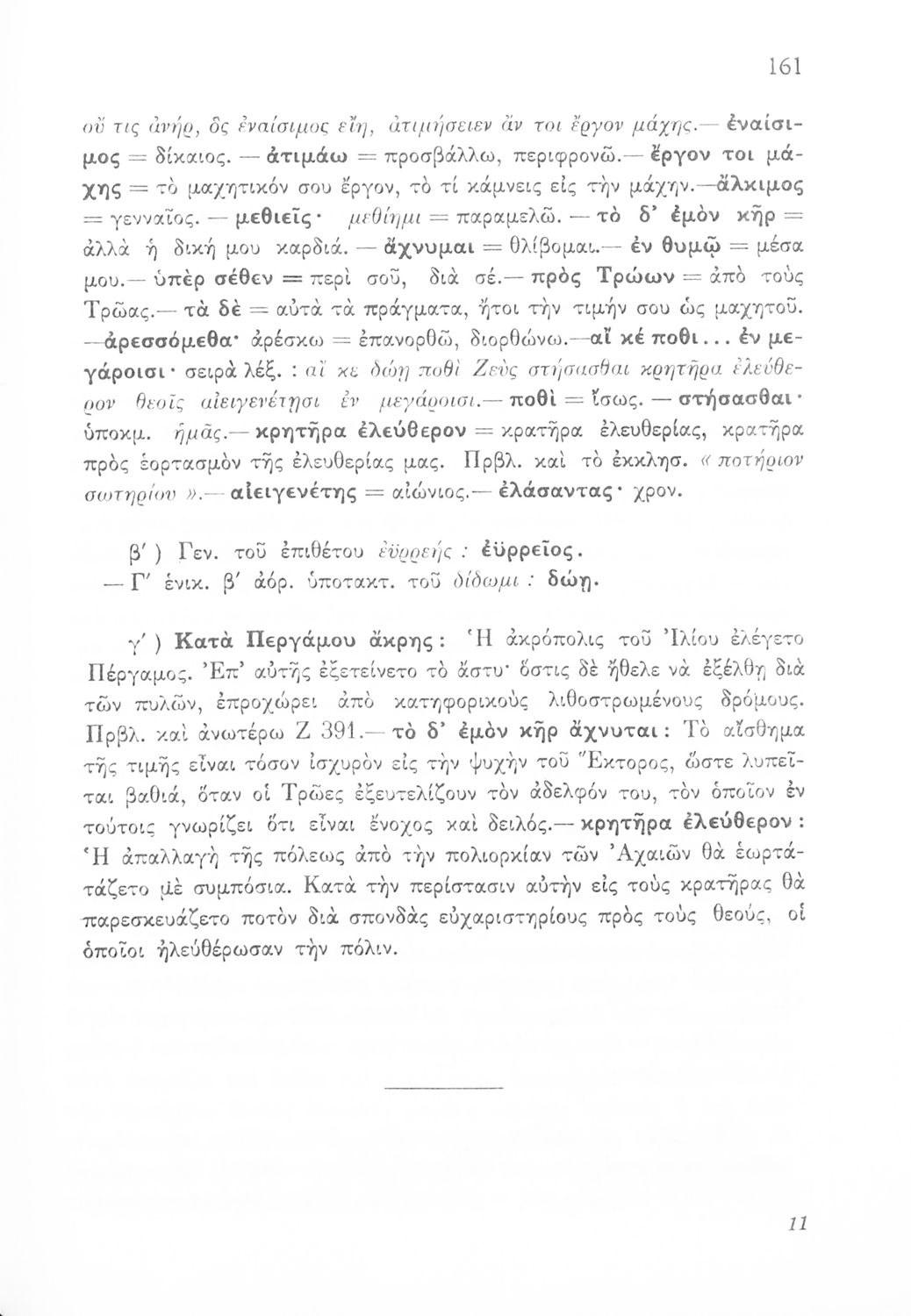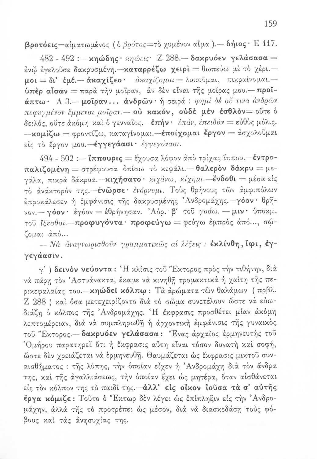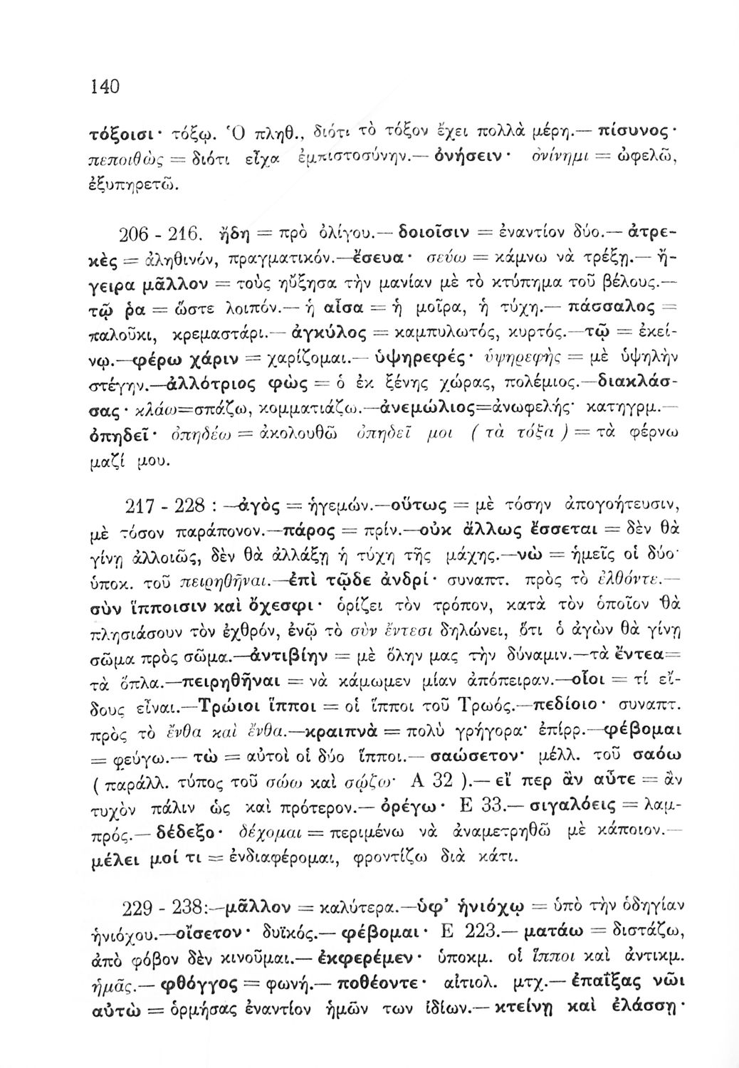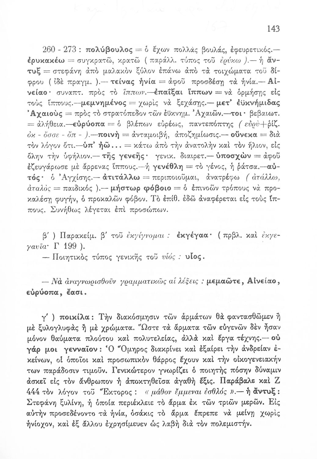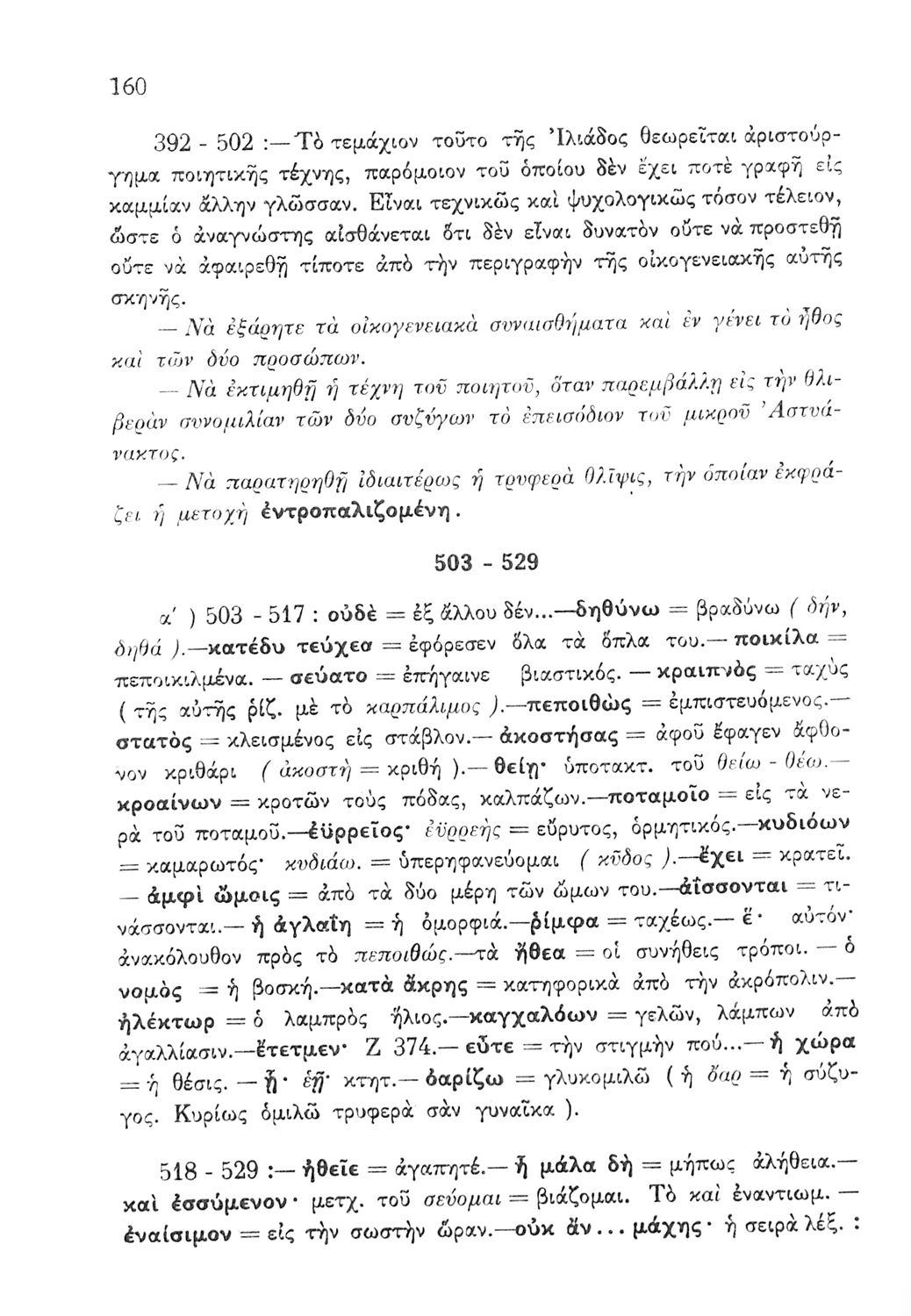Σχολικό εγχειρίδιο Αρχαίων Ελληνικών των τριών τάξεων του Λυκείου. Το βιβλίο περιέχει αποσπάσματα από το ομηρικό έπος της 'Ιλιάδας'. Το βιβλίο ξεκινάει για την ιστορία του Τρωικού πόλεμου και συνεχίζει με αποσπάσματα από το ίδιο το έργο τα οποία συνοδεύονται από γλωσσικές και ερμηνευτικές σημειώσεις.