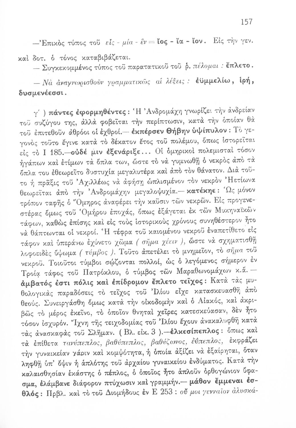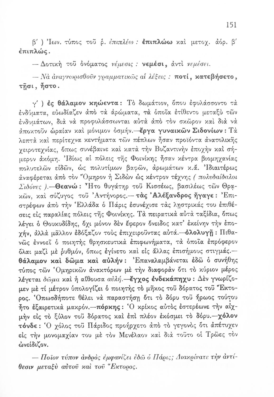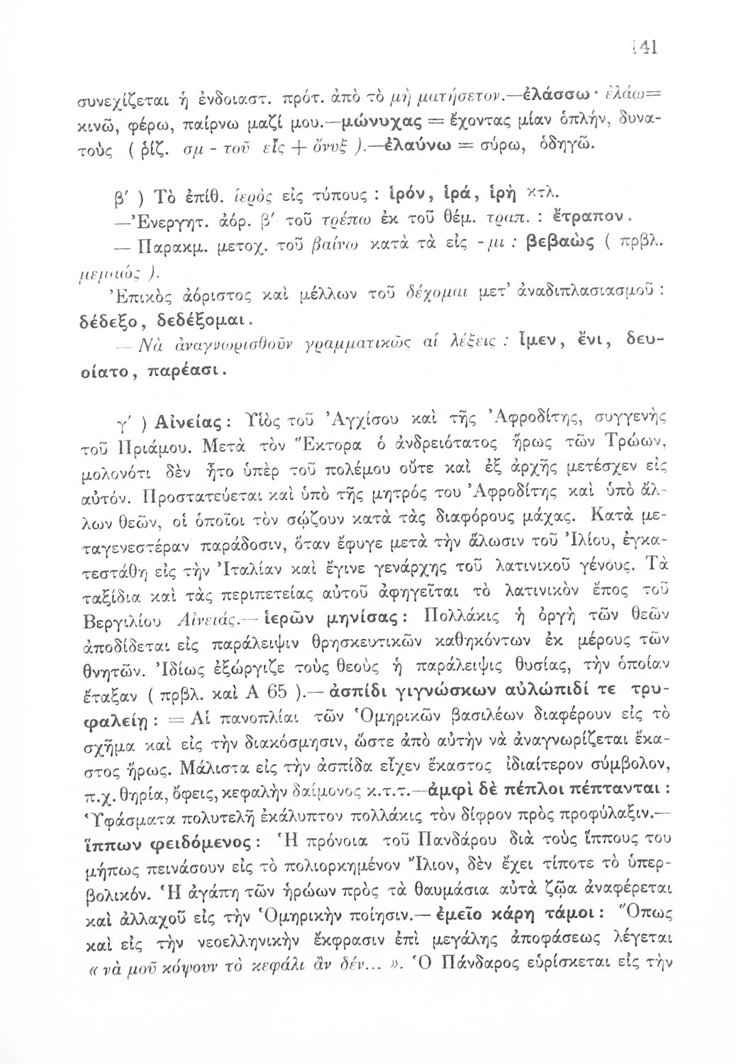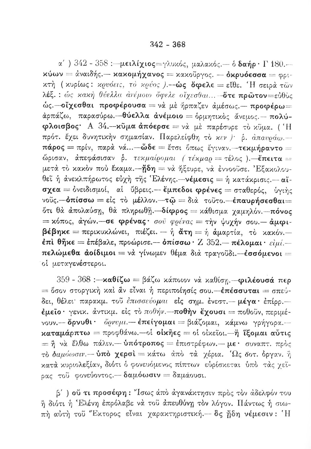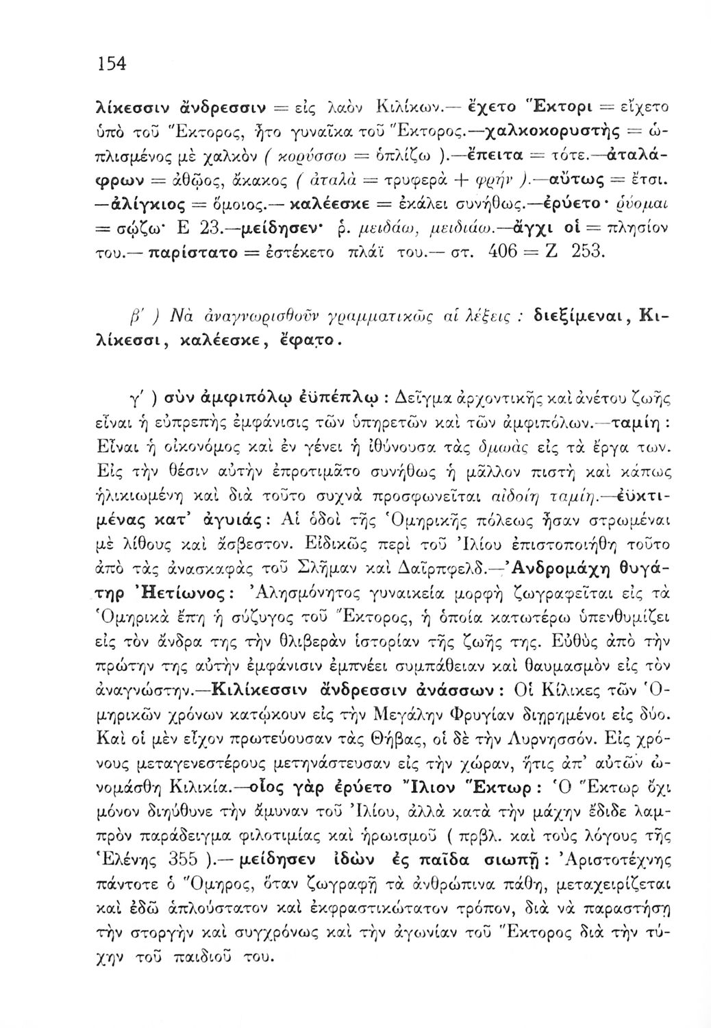 Σχολικό εγχειρίδιο Αρχαίων Ελληνικών των τριών τάξεων του Λυκείου. Το βιβλίο περιέχει αποσπάσματα από το ομηρικό έπος της 'Ιλιάδας'. Το βιβλίο ξεκινάει για την ιστορία του Τρωικού πόλεμου και συνεχίζει με αποσπάσματα από το ίδιο το έργο τα οποία συνοδεύονται από γλωσσικές και ερμηνευτικές σημειώσεις.