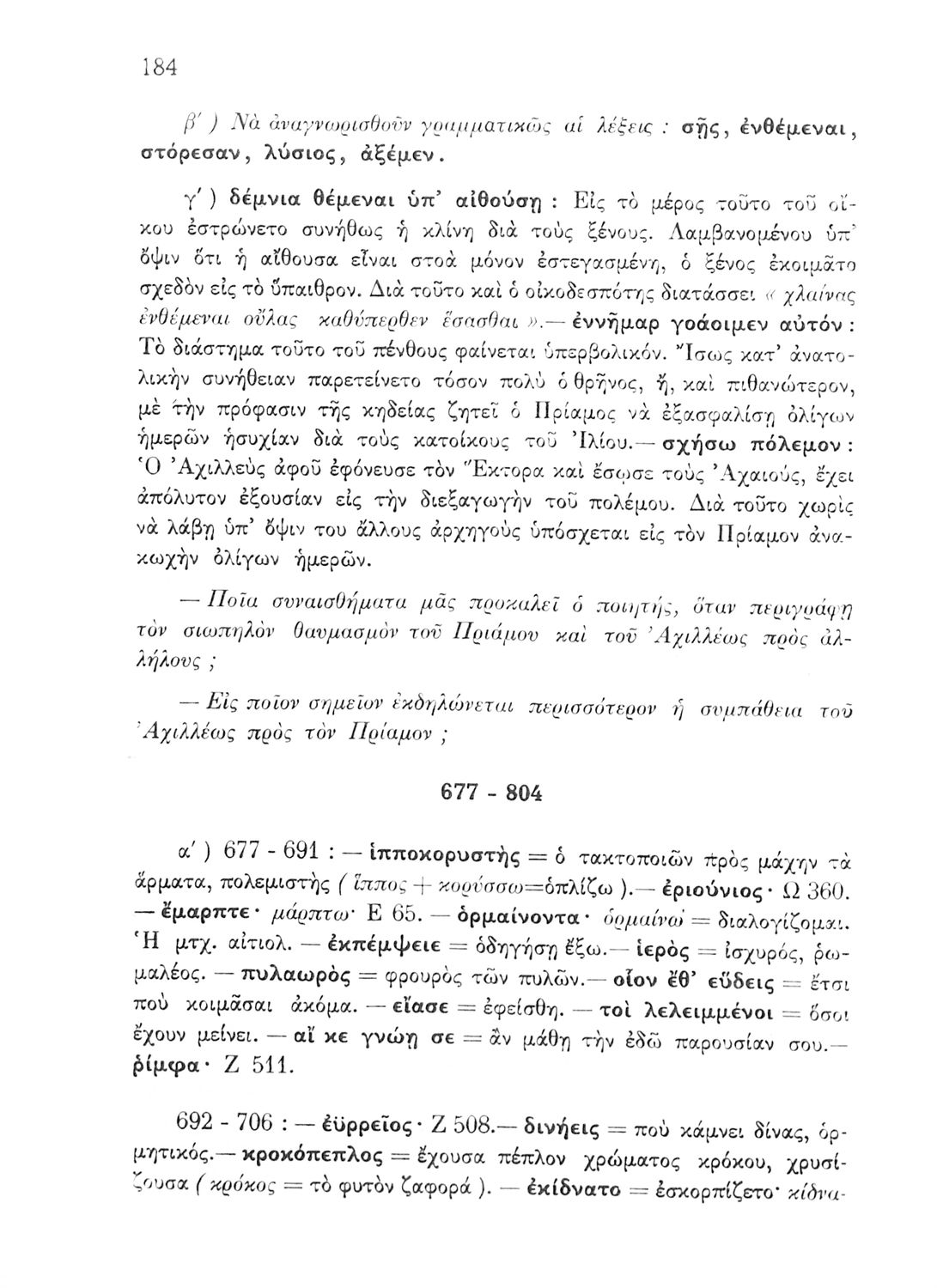 Σχολικό εγχειρίδιο Αρχαίων Ελληνικών των τριών τάξεων του Λυκείου. Το βιβλίο περιέχει αποσπάσματα από το ομηρικό έπος της 'Ιλιάδας'. Το βιβλίο ξεκινάει για την ιστορία του Τρωικού πόλεμου και συνεχίζει με αποσπάσματα από το ίδιο το έργο τα οποία συνοδεύονται από γλωσσικές και ερμηνευτικές σημειώσεις.