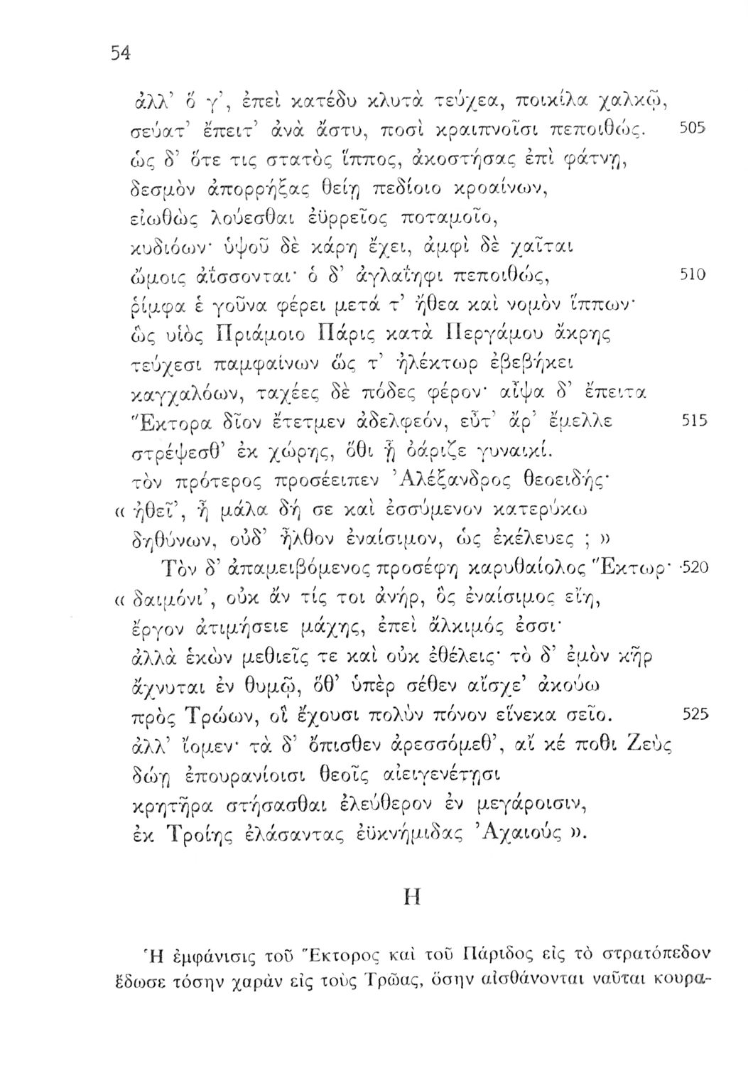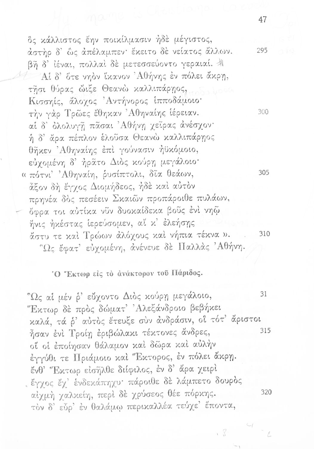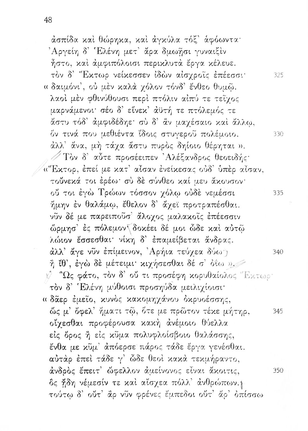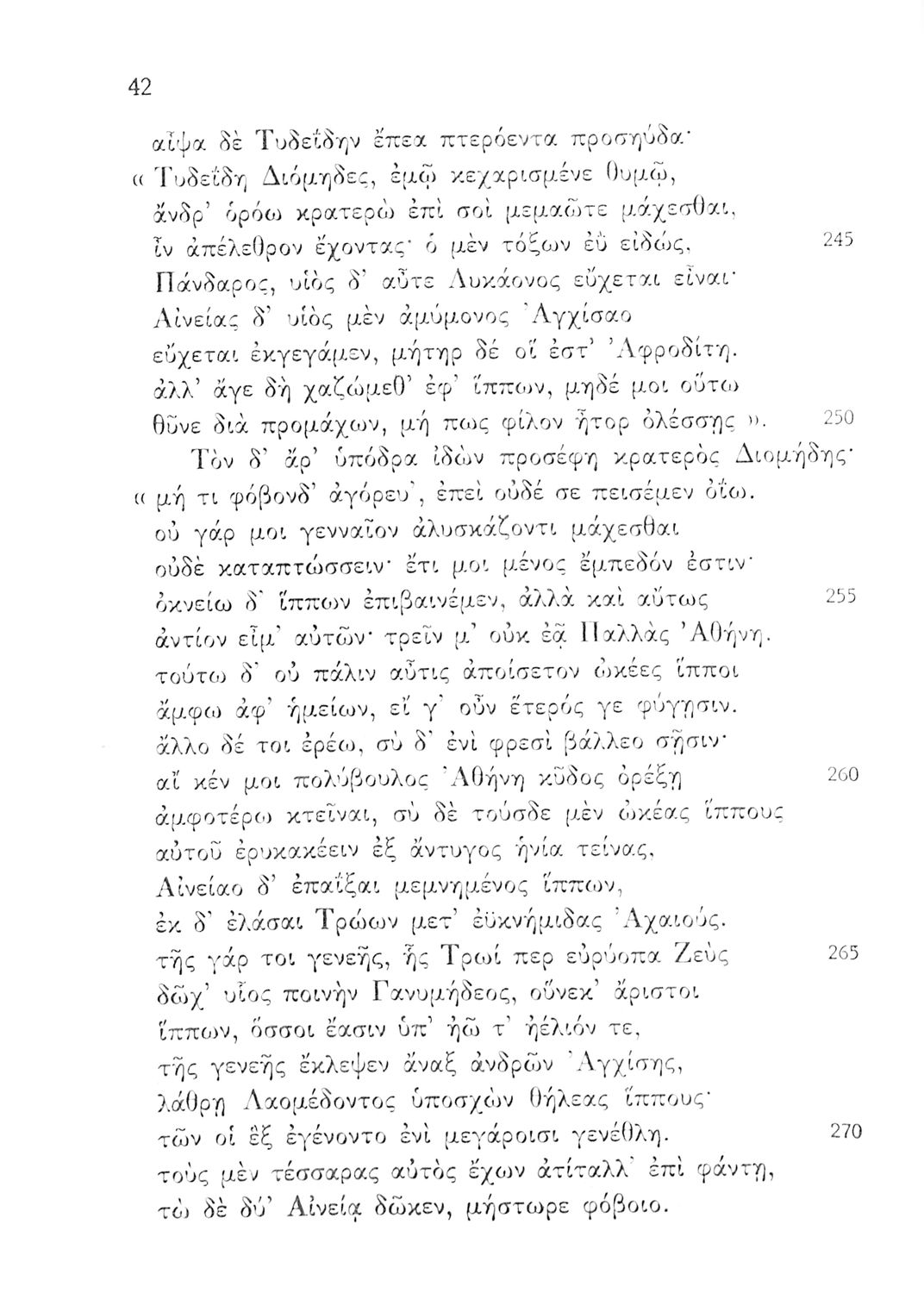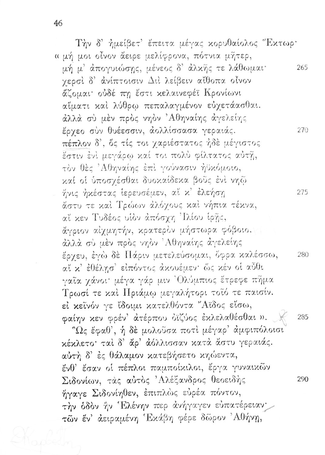 Σχολικό εγχειρίδιο Αρχαίων Ελληνικών των τριών τάξεων του Λυκείου. Το βιβλίο περιέχει αποσπάσματα από το ομηρικό έπος της 'Ιλιάδας'. Το βιβλίο ξεκινάει για την ιστορία του Τρωικού πόλεμου και συνεχίζει με αποσπάσματα από το ίδιο το έργο τα οποία συνοδεύονται από γλωσσικές και ερμηνευτικές σημειώσεις.