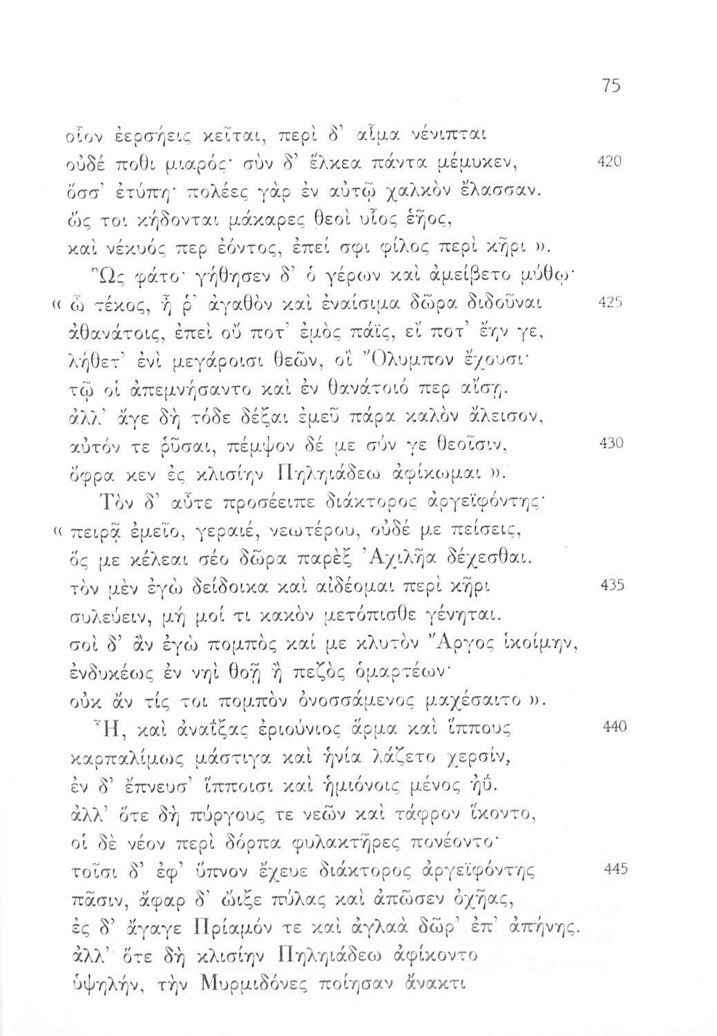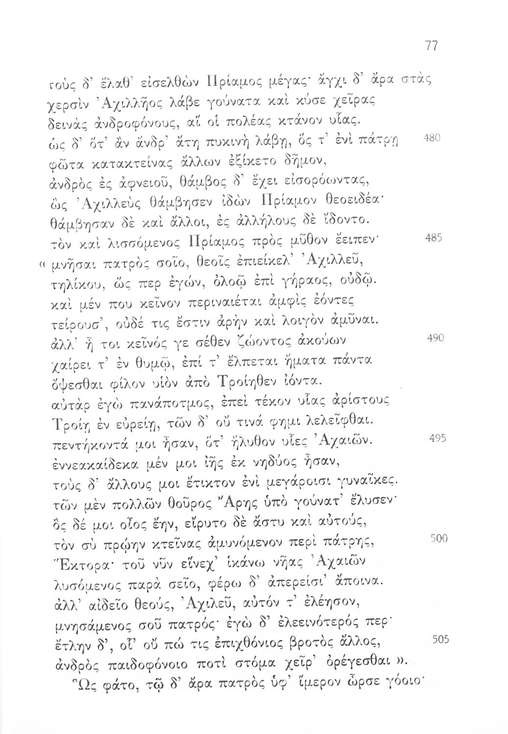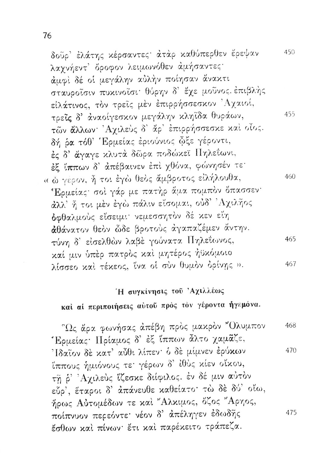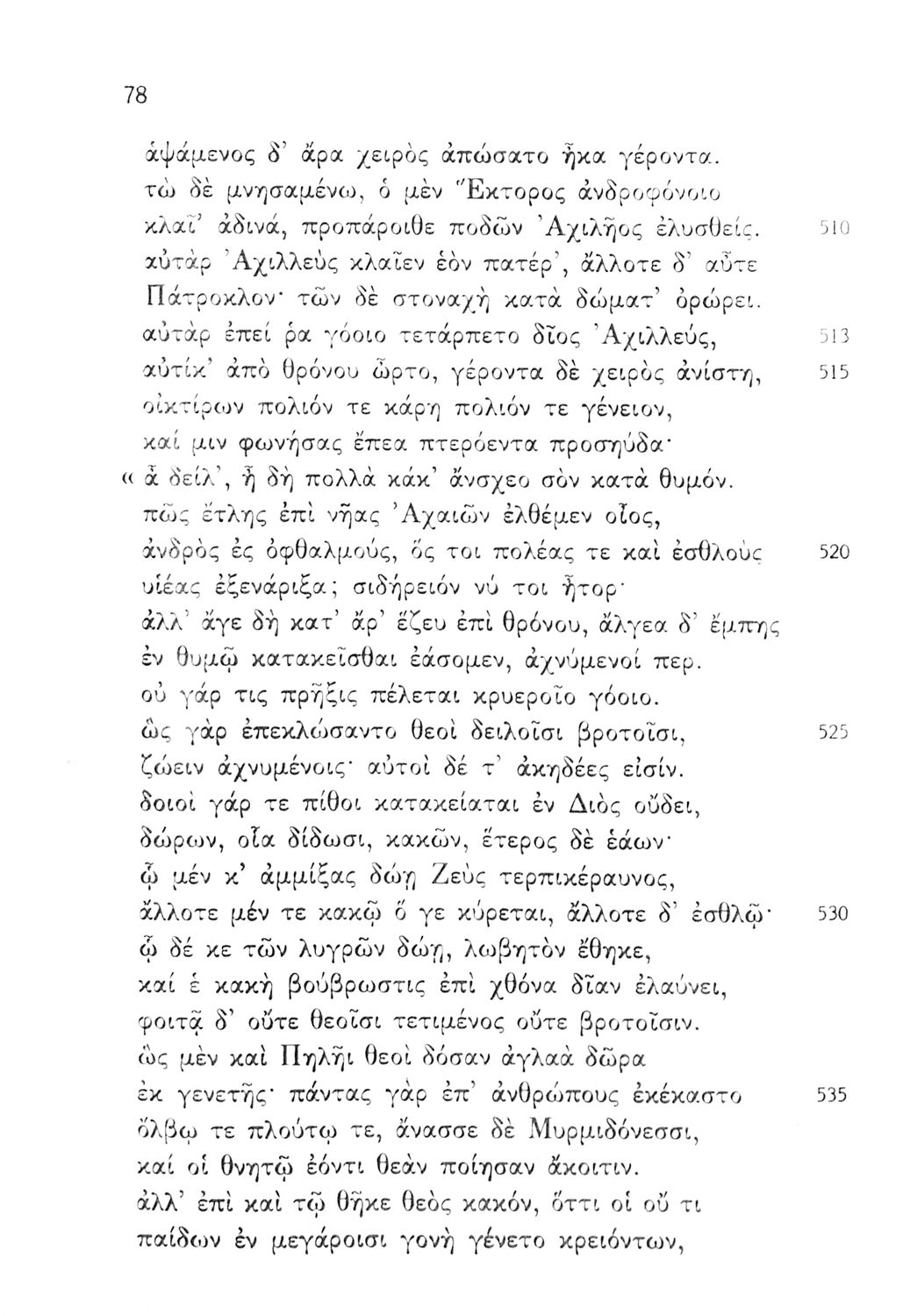 Σχολικό εγχειρίδιο Αρχαίων Ελληνικών των τριών τάξεων του Λυκείου. Το βιβλίο περιέχει αποσπάσματα από το ομηρικό έπος της 'Ιλιάδας'. Το βιβλίο ξεκινάει για την ιστορία του Τρωικού πόλεμου και συνεχίζει με αποσπάσματα από το ίδιο το έργο τα οποία συνοδεύονται από γλωσσικές και ερμηνευτικές σημειώσεις.