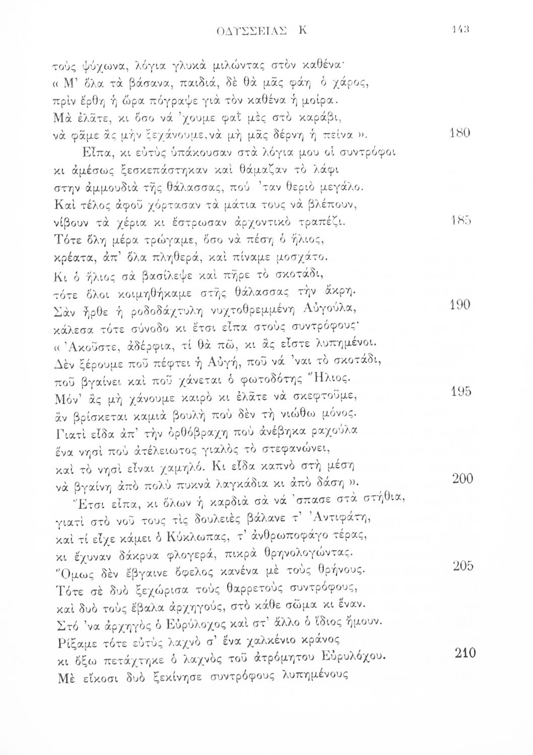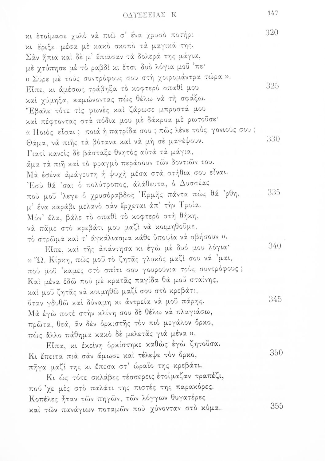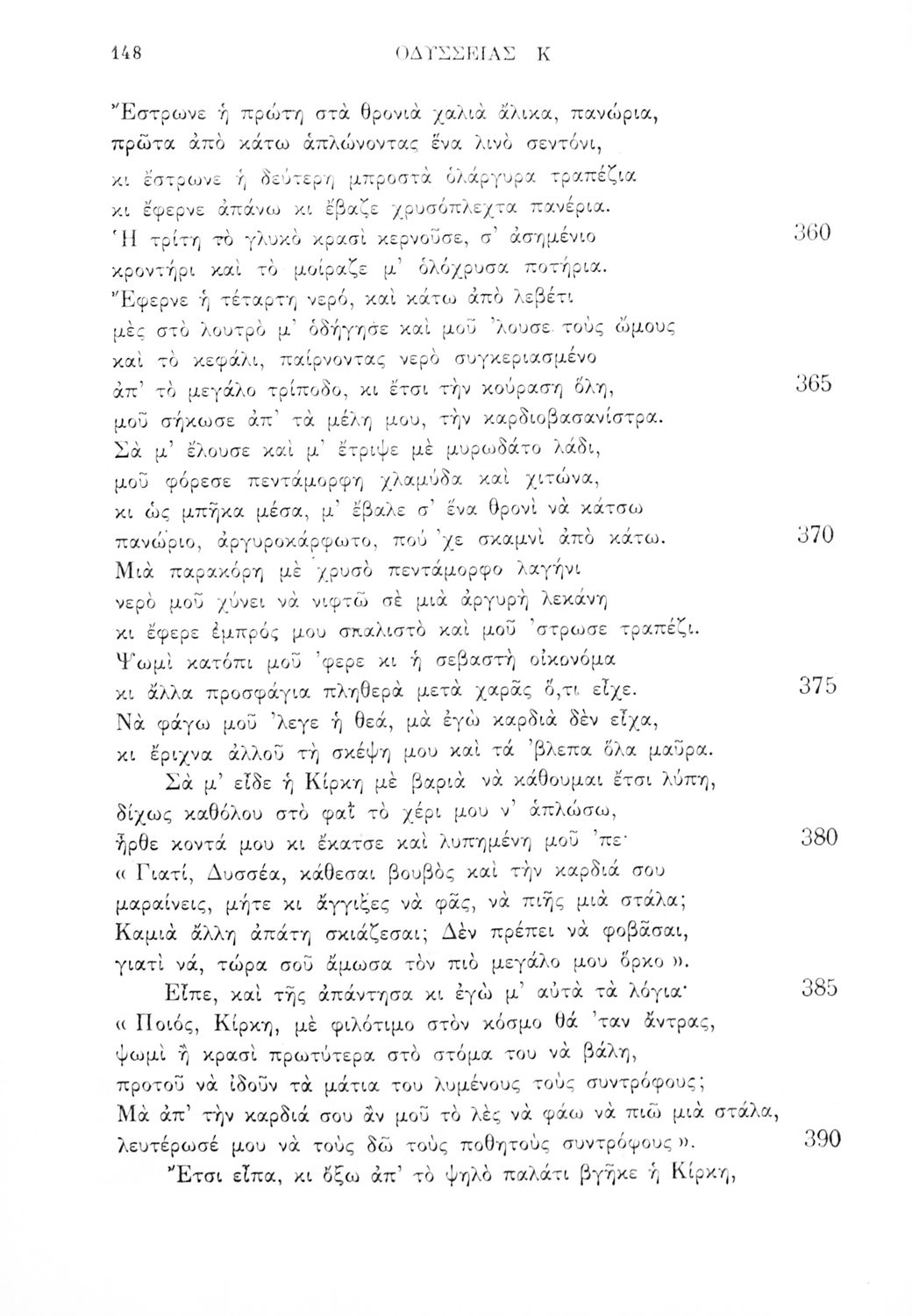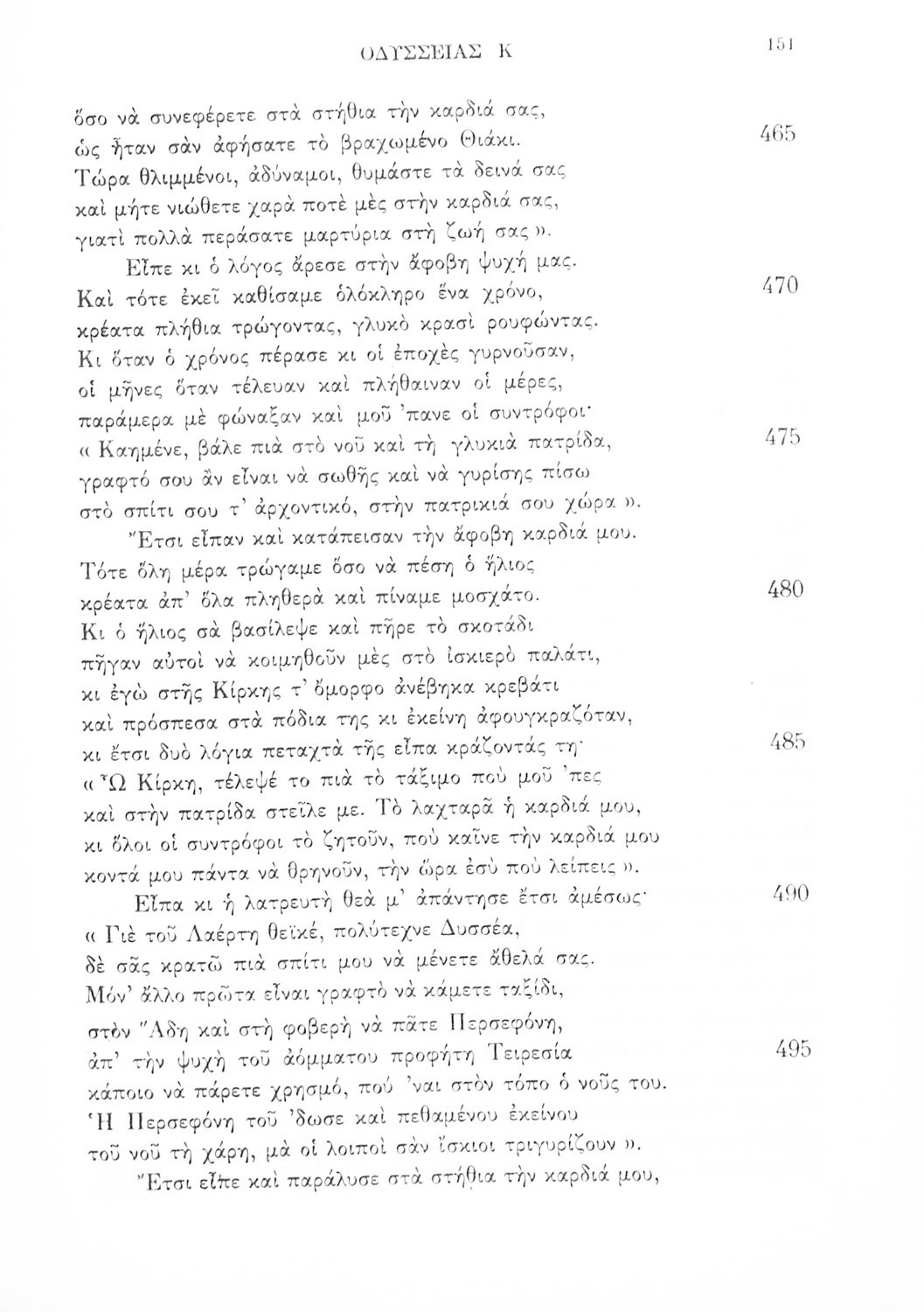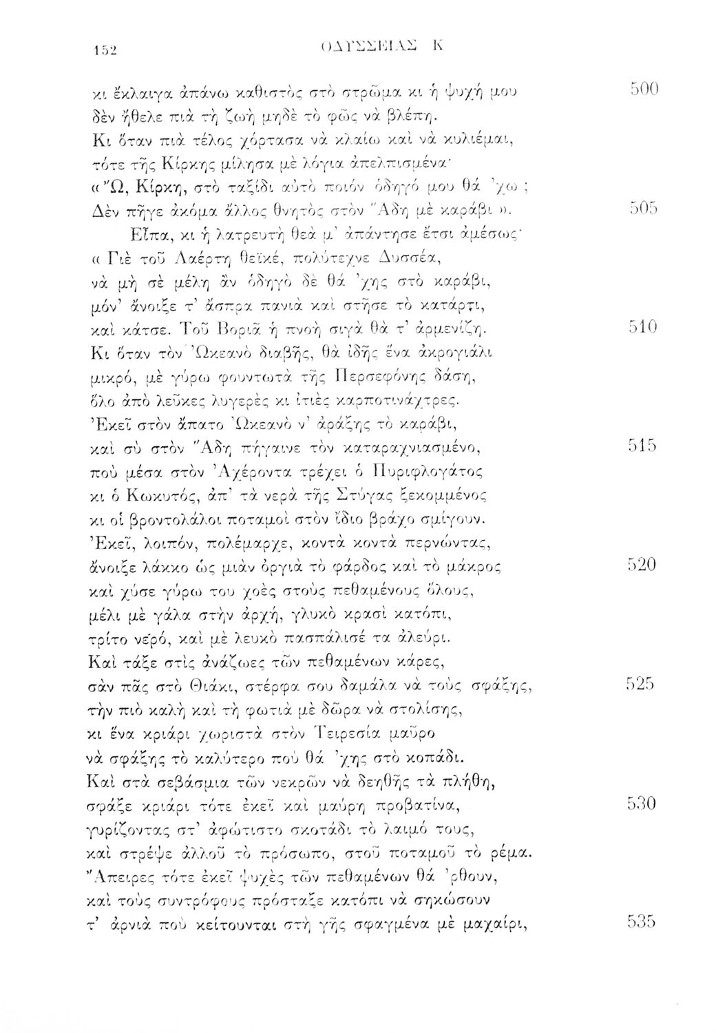 Σχολικό εγχειρίδιο της Δευτεροβάθμιας Εκπαίδευσης για το μάθημα των Αρχαίων Ελληνικών. Πρόκειται για το κείμενο της Οδύσσειας μεταφρασμένο, με πραγματολογικές παρατηρήσεις. Στο τέλος περιλαμβάνει λεξιλόγιο.