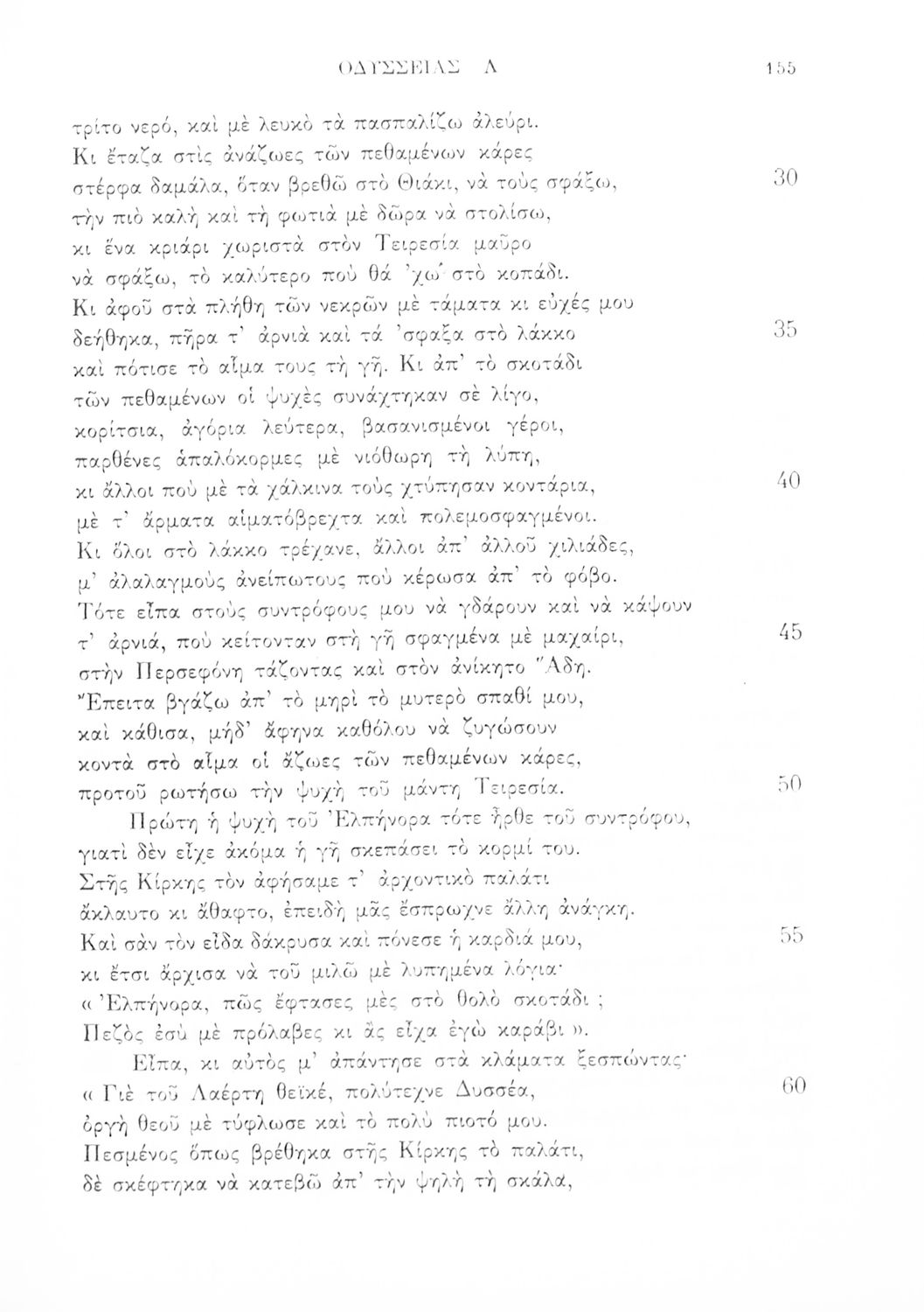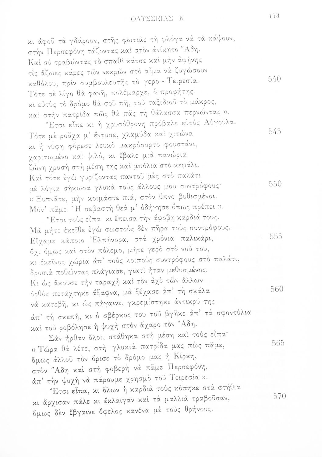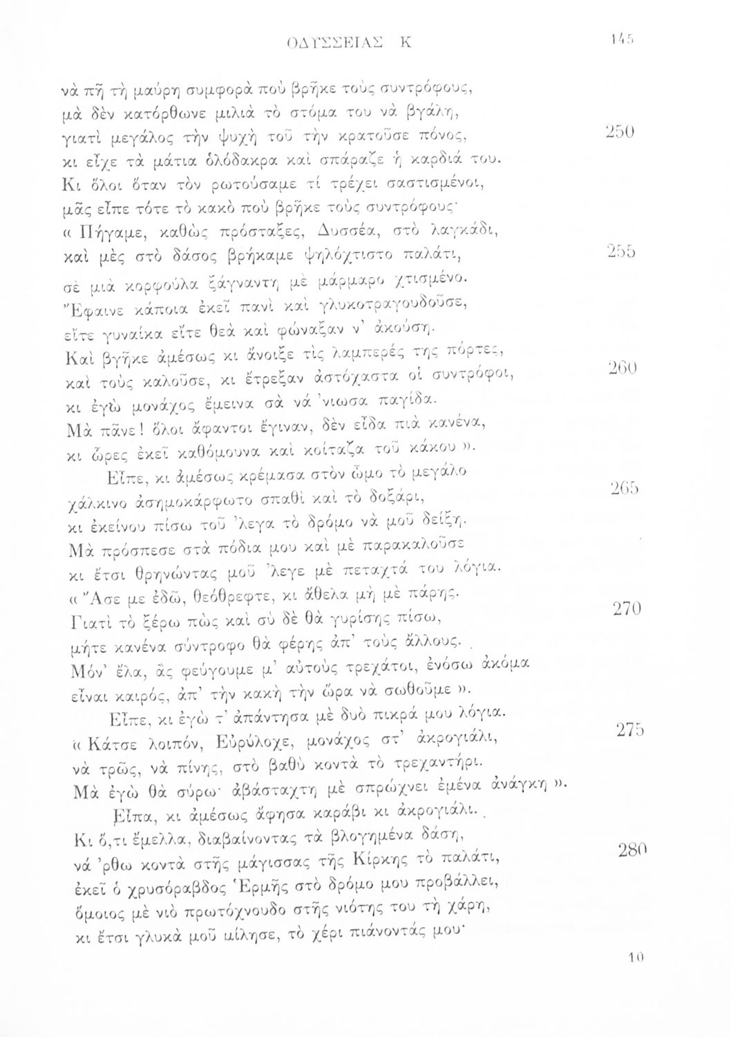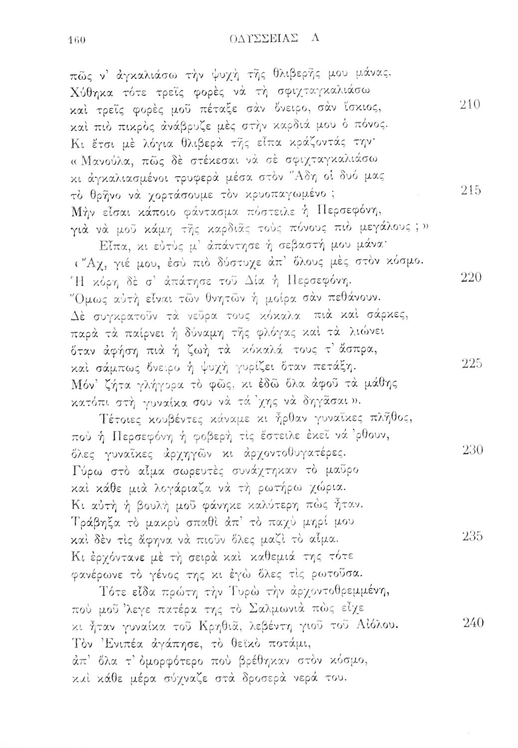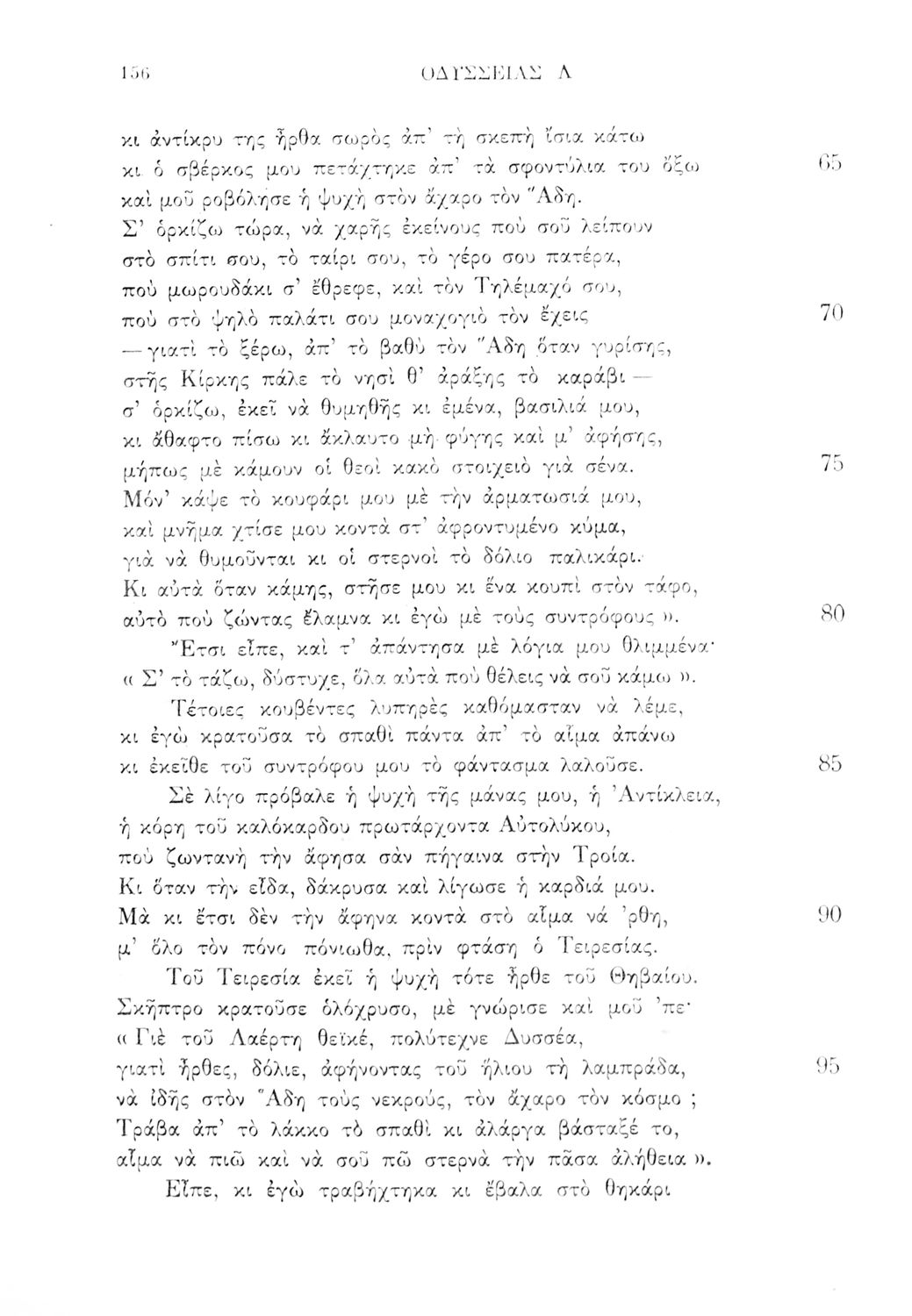 Σχολικό εγχειρίδιο της Δευτεροβάθμιας Εκπαίδευσης για το μάθημα των Αρχαίων Ελληνικών. Πρόκειται για το κείμενο της Οδύσσειας μεταφρασμένο, με πραγματολογικές παρατηρήσεις. Στο τέλος περιλαμβάνει λεξιλόγιο.