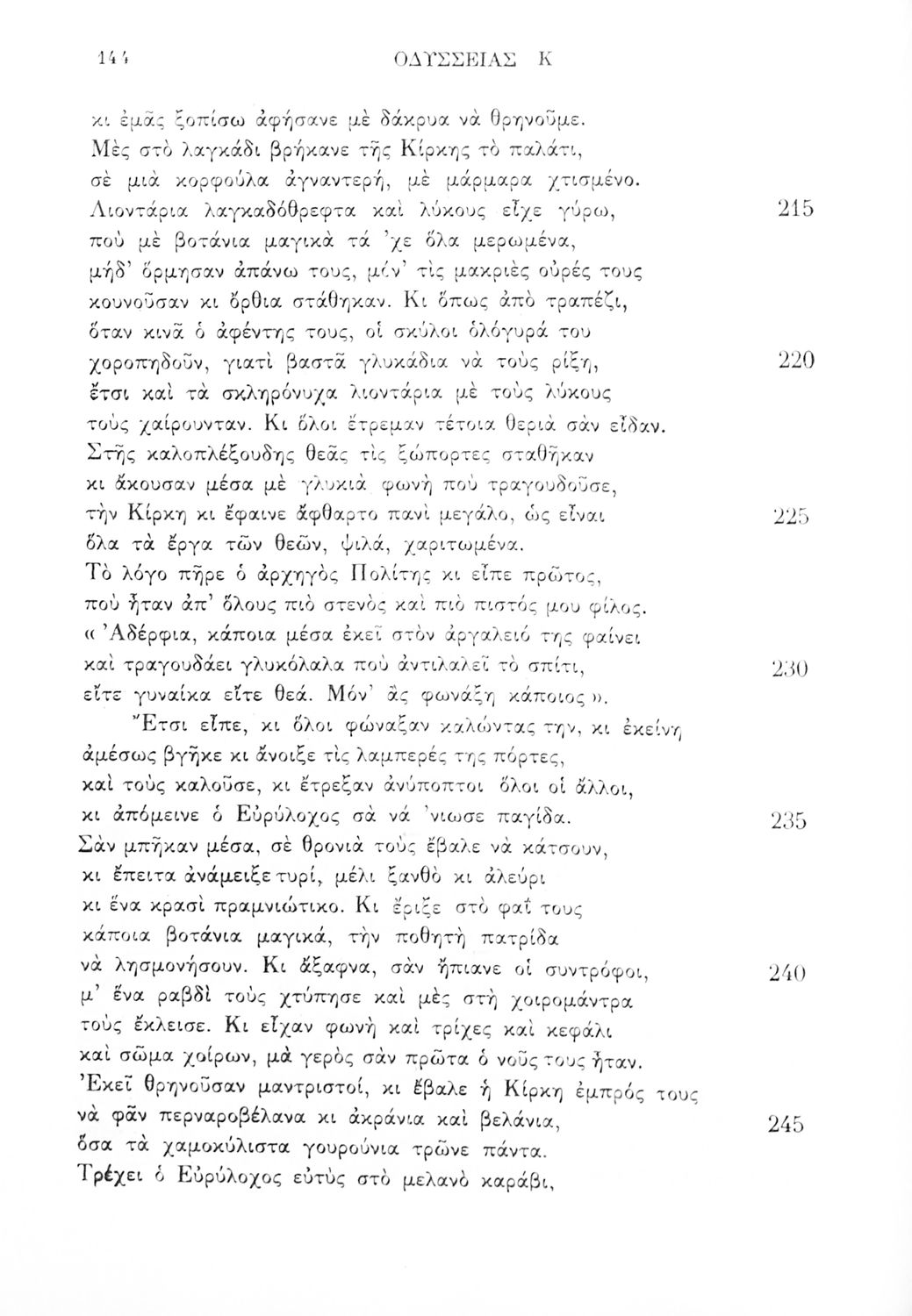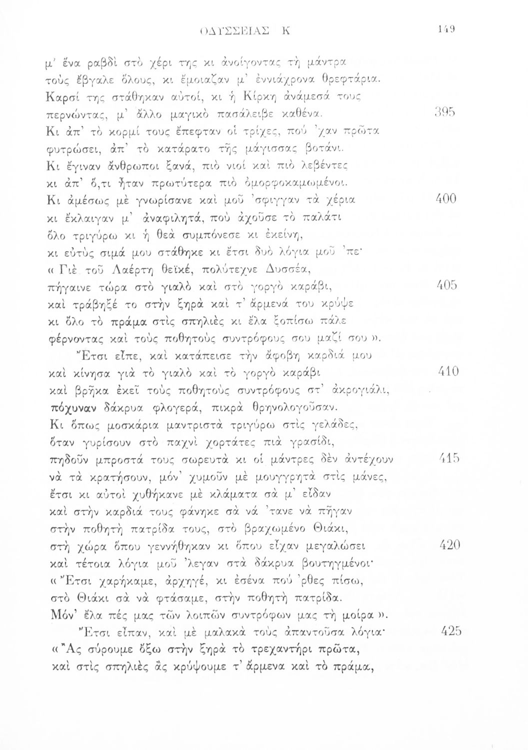 Παιδαγωγικό βοήθημα Αρχαίων Ελληνικών που περιλαμβάνει μετάφραση της Ομήρου Οδύσσειας στη νέα ελληνική, εισαγωγή στην επική ποίηση και στην Οδύσσεια, περιλήψεις και σημειώσεις.