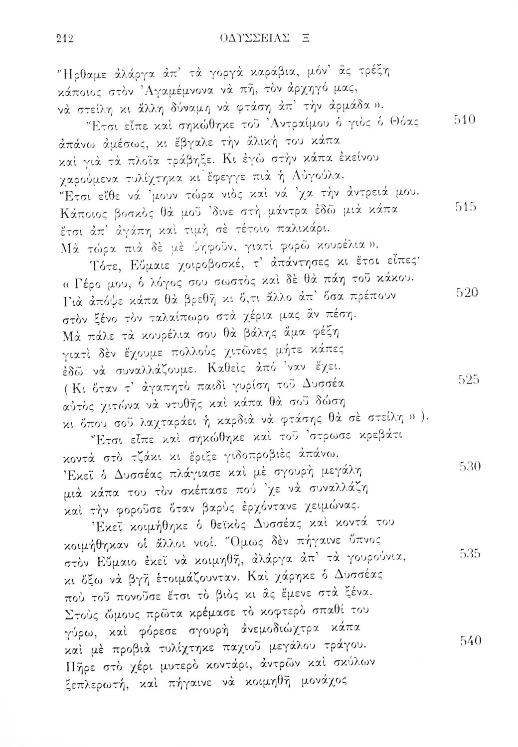 Σχολικό εγχειρίδιο της Δευτεροβάθμιας Εκπαίδευσης για το μάθημα των Αρχαίων Ελληνικών. Πρόκειται για το κείμενο της Οδύσσειας μεταφρασμένο, με πραγματολογικές παρατηρήσεις. Στο τέλος περιλαμβάνει λεξιλόγιο.