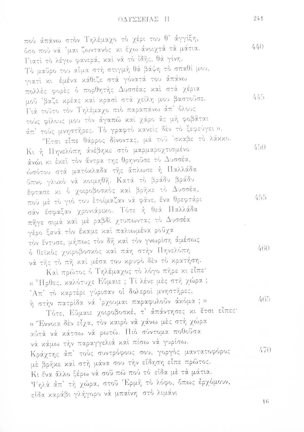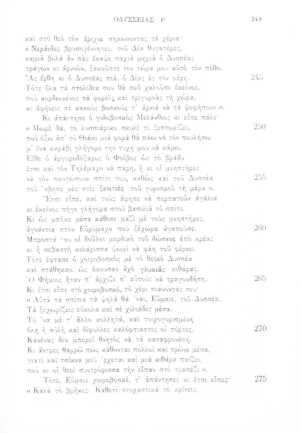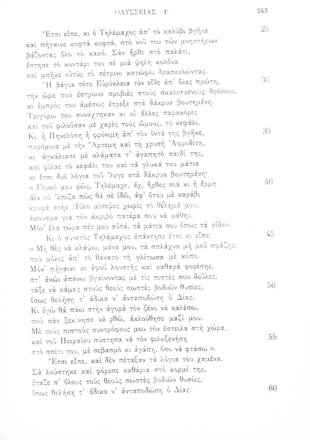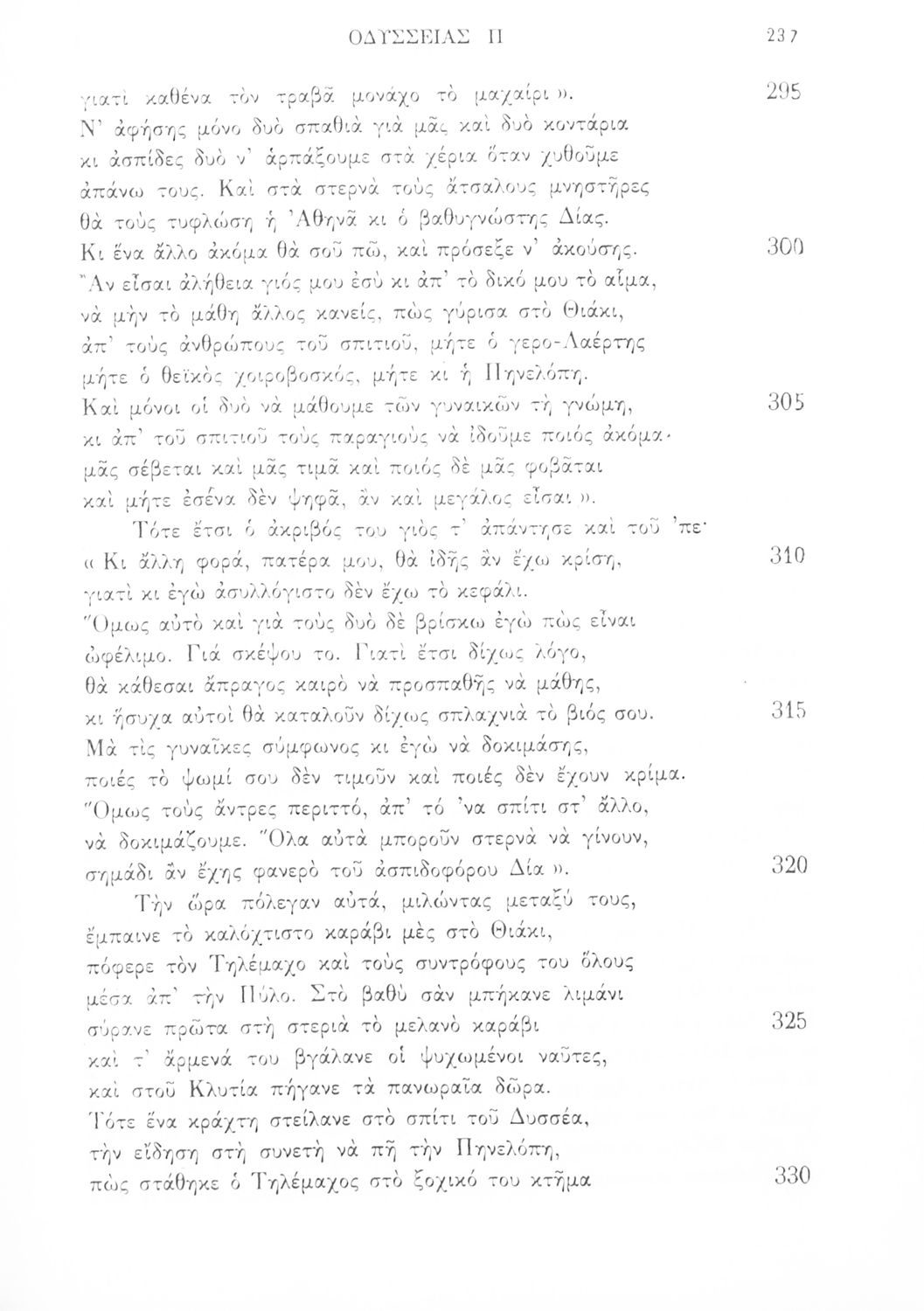 Παιδαγωγικό βοήθημα Αρχαίων Ελληνικών που περιλαμβάνει μετάφραση της Ομήρου Οδύσσειας στη νέα ελληνική, εισαγωγή στην επική ποίηση και στην Οδύσσεια, περιλήψεις και σημειώσεις.