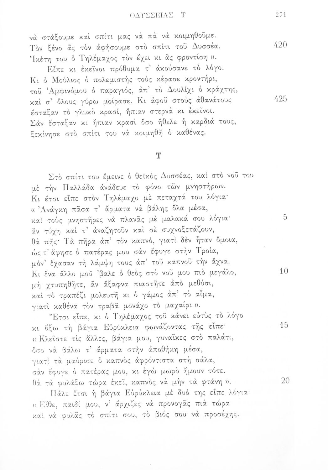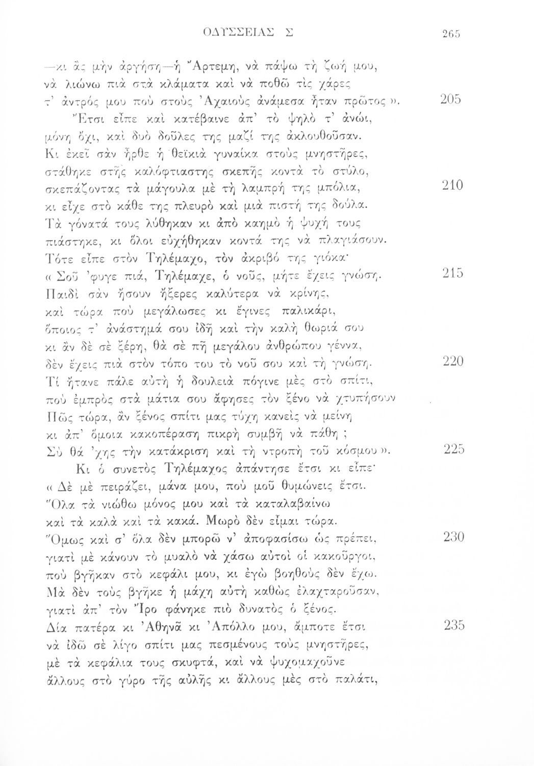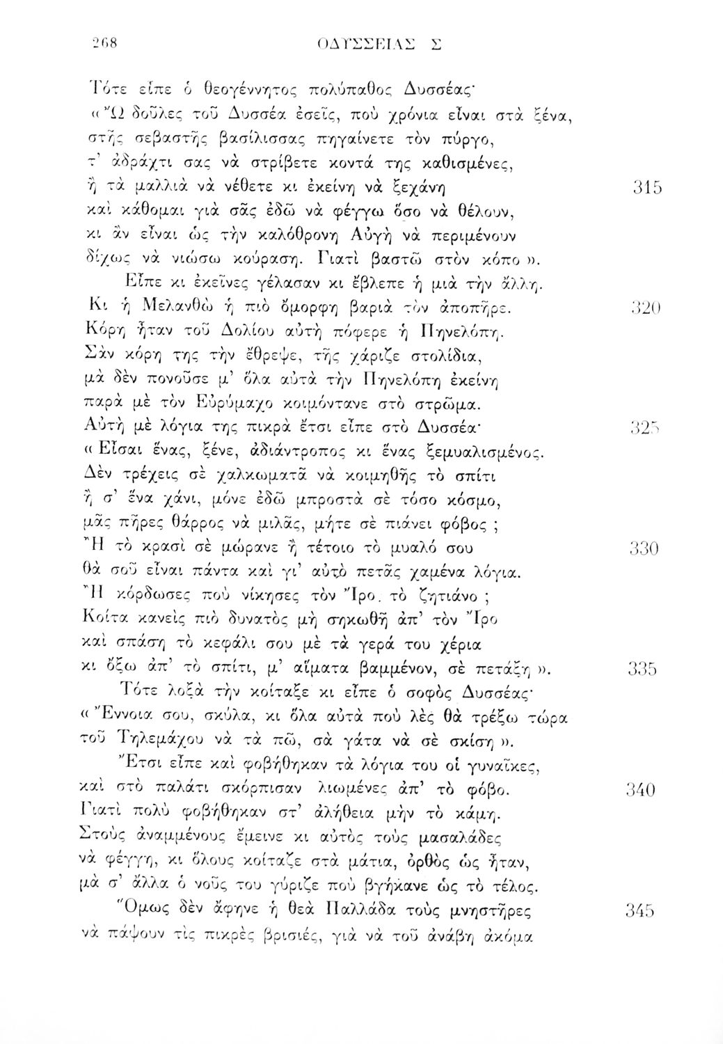 Παιδαγωγικό βοήθημα Αρχαίων Ελληνικών που περιλαμβάνει μετάφραση της Ομήρου Οδύσσειας στη νέα ελληνική, εισαγωγή στην επική ποίηση και στην Οδύσσεια, περιλήψεις και σημειώσεις.