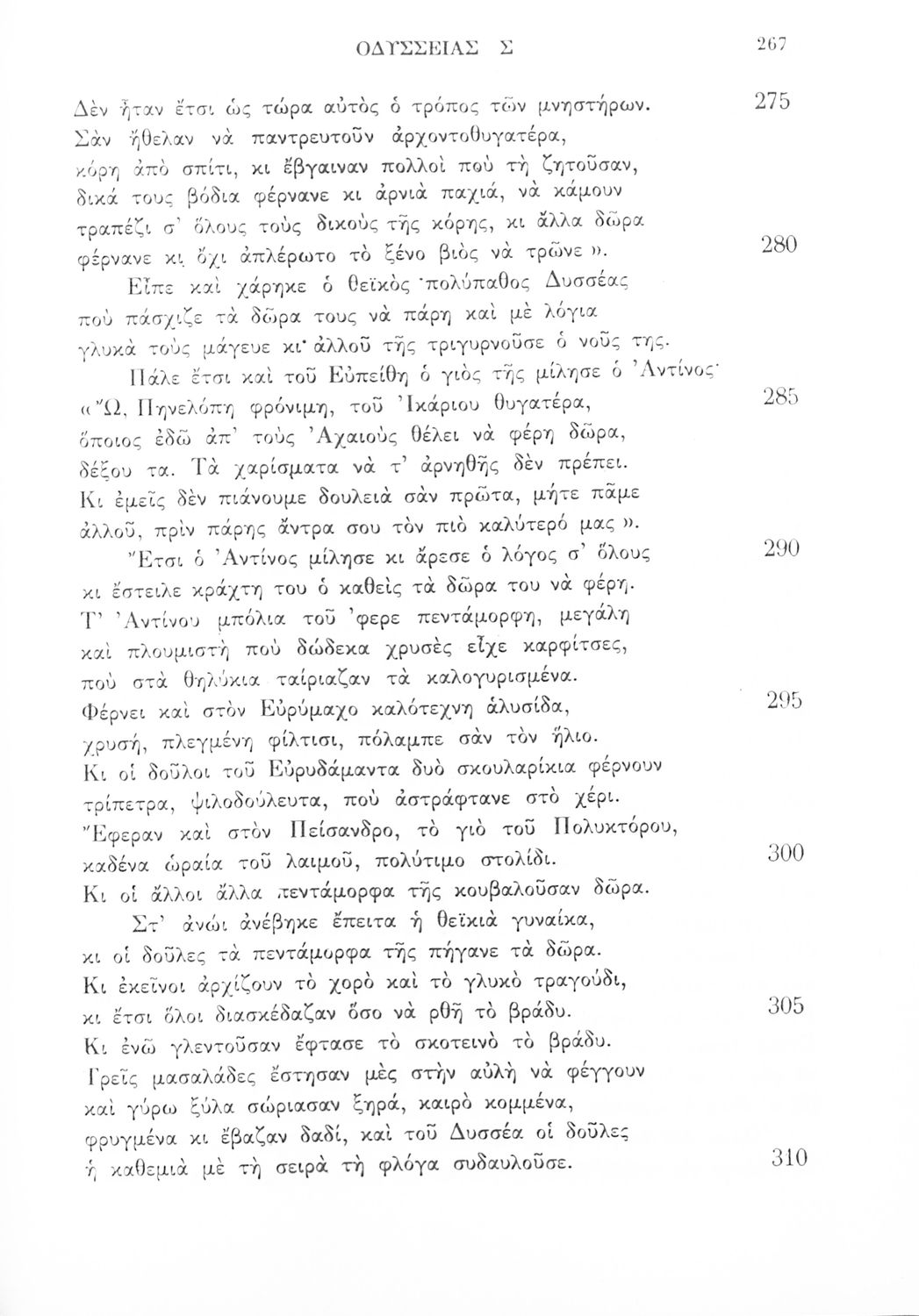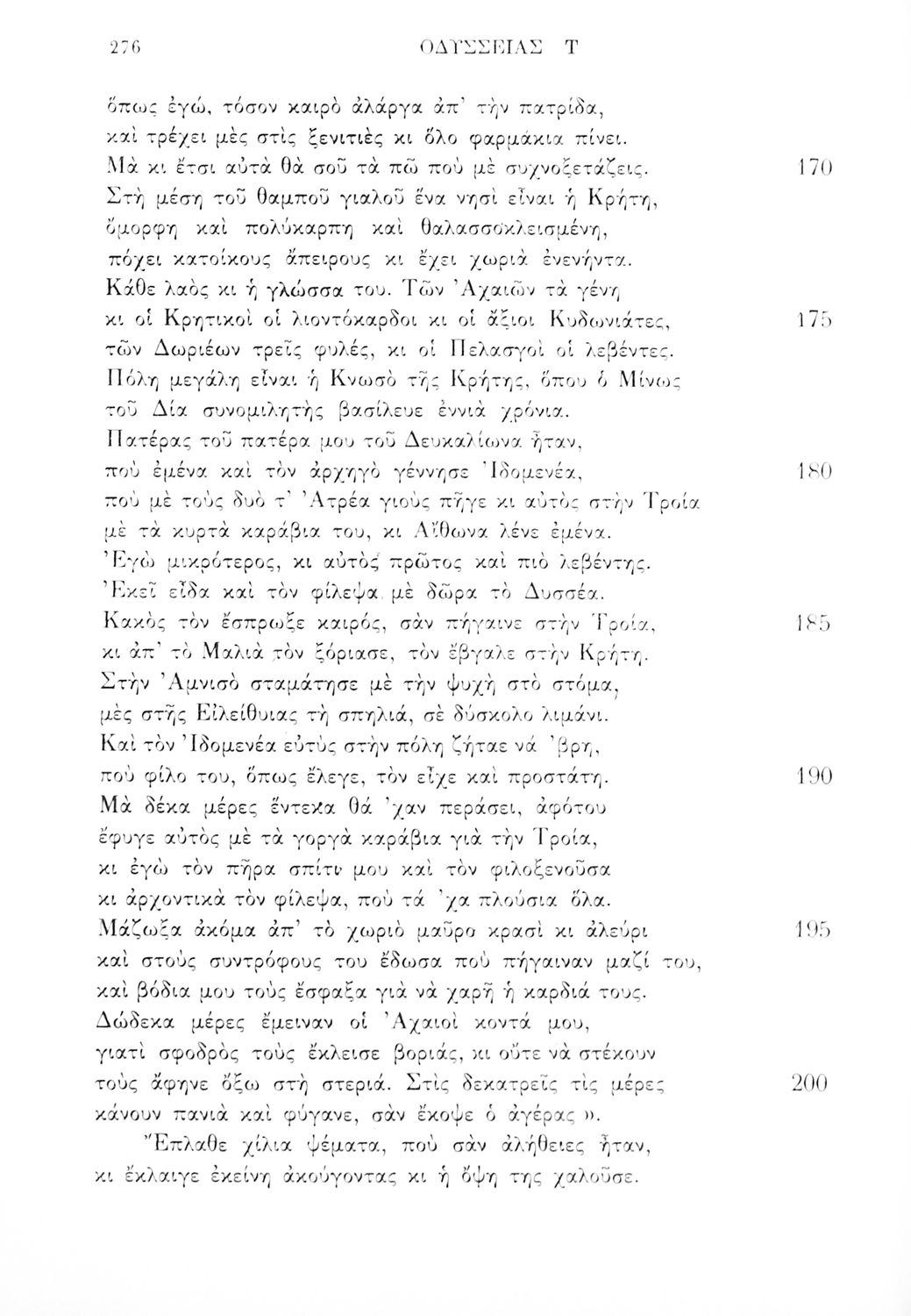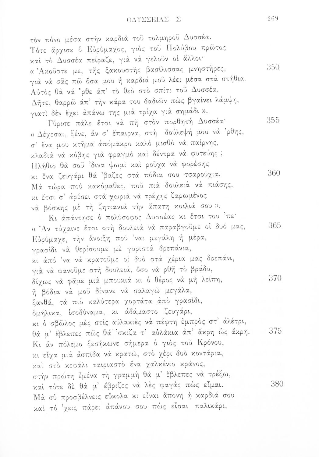 Σχολικό εγχειρίδιο της Δευτεροβάθμιας Εκπαίδευσης για το μάθημα των Αρχαίων Ελληνικών. Πρόκειται για το κείμενο της Οδύσσειας μεταφρασμένο, με πραγματολογικές παρατηρήσεις. Στο τέλος περιλαμβάνει λεξιλόγιο.