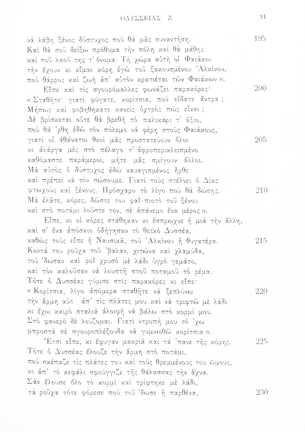Μαθητικό βοήθημα Αρχαίων Ελληνικών που περιλαμβάνει εισαγωγή στην Οδύσσεια, αποσπάσματα των ραψωδιών Α, Ε, και Ζ και γλωσσικές και πραγματολογικές σημειώσεις.