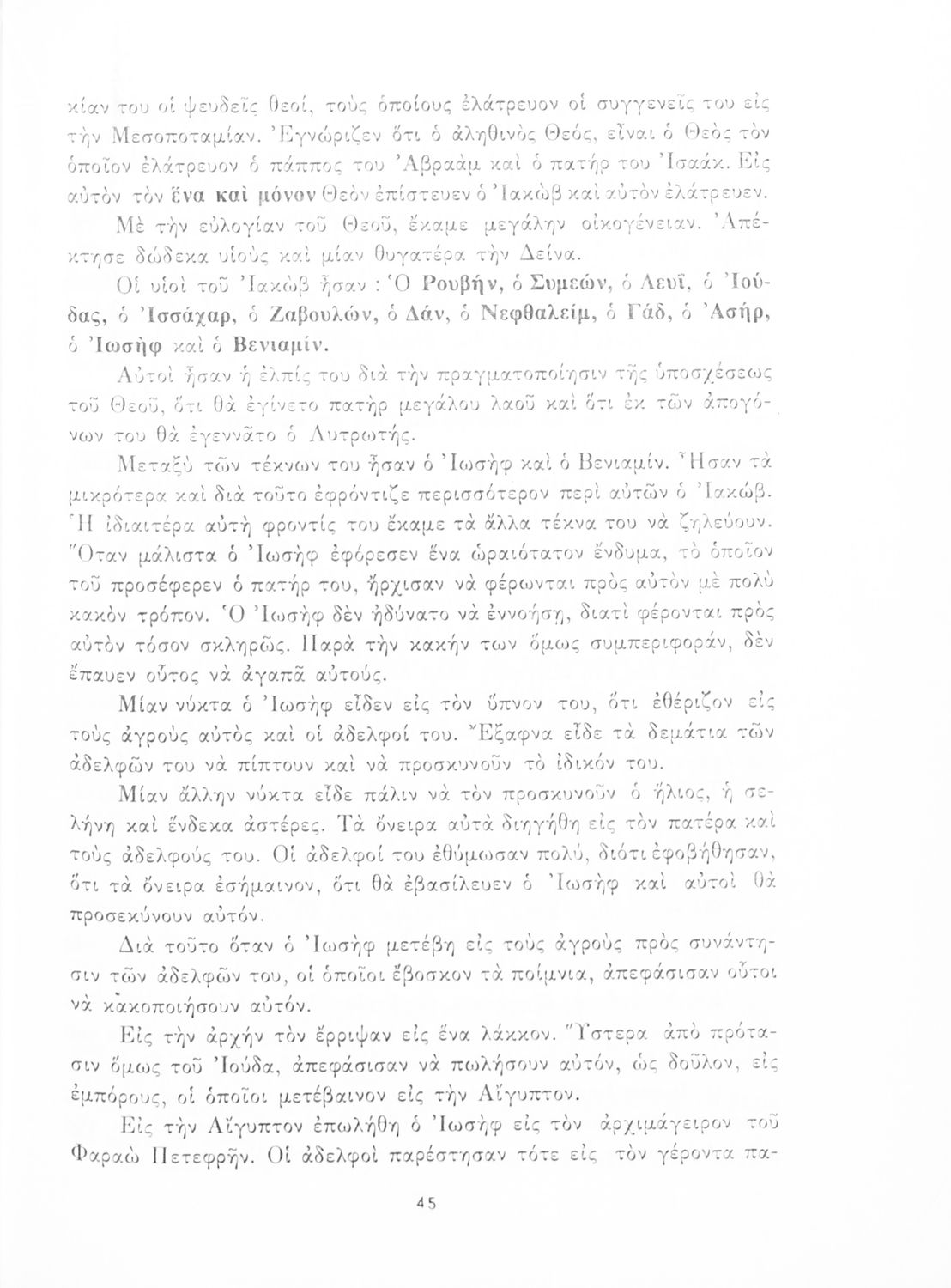 Σχολικό εγχειρίδιο Θρησκευτικών Α΄ Γυμνασίου που συνιστά μία εξιστόρηση της Παλαιάς Διαθήκης από τη δημιουργία του κόσμου ως την υποταγή των Εβραίων στους Ρωμαίους.