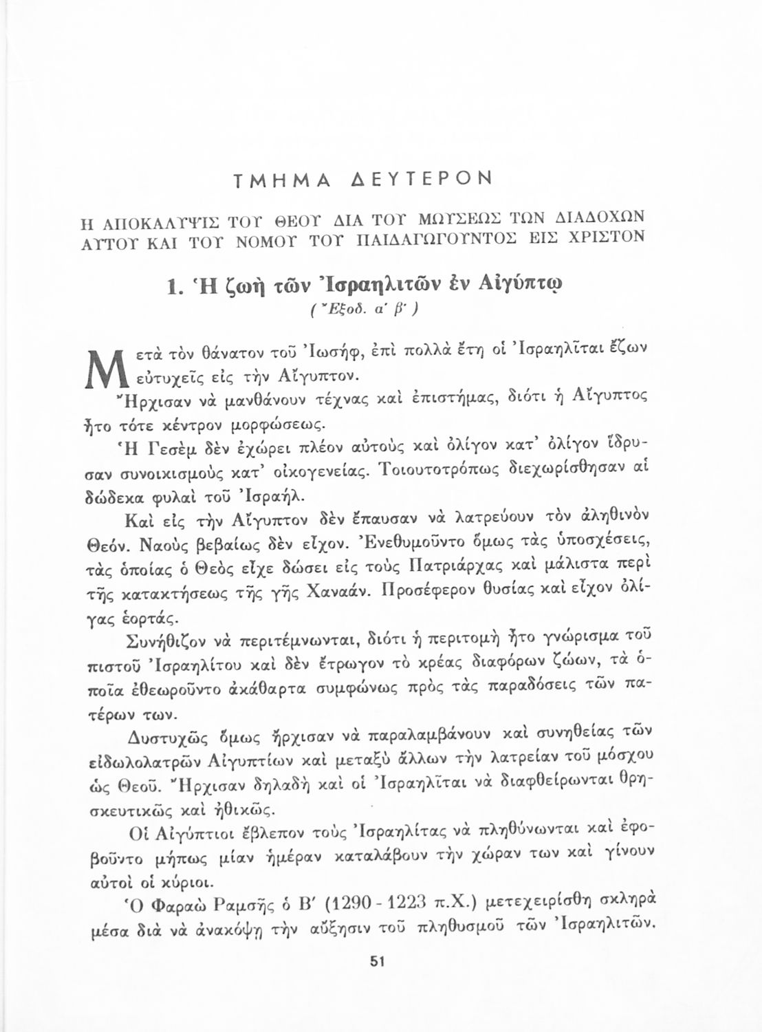Σχολικό εγχειρίδιο Θρησκευτικών για την Α΄ Γυμνασίου και Πρακτικού Λυκείου που συνιστά μία εξιστόρηση της Παλαιάς Διαθήκης από τη δημιουργία του κόσμου ως την υποταγή των Εβραίων στους Ρωμαίους.