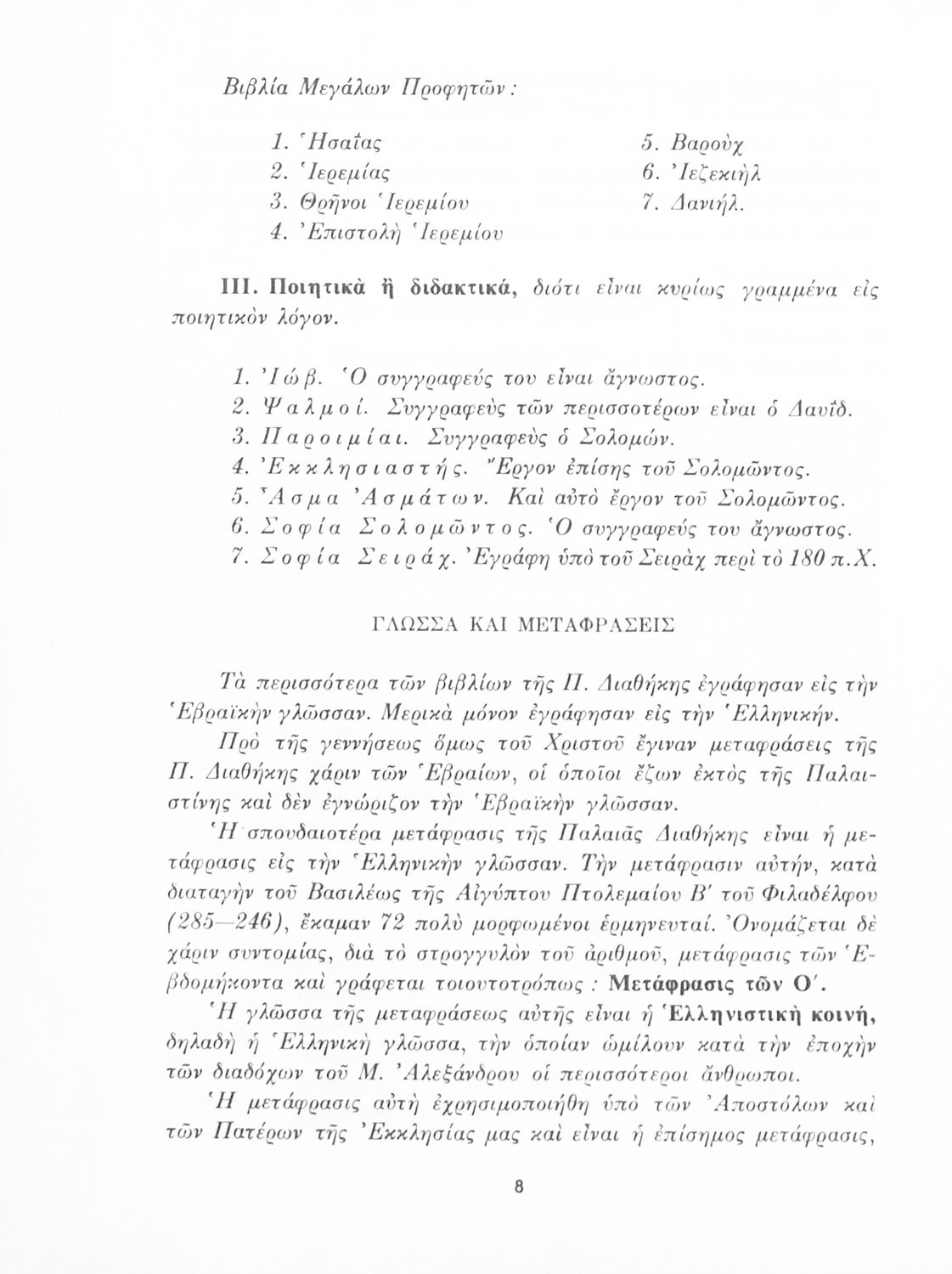 Βαθμίδα εκπαίδευσης: Δευτεροβάθμια Τάξη: Α' Γυμνασίου Μάθημα: Θρησκευτικά Γλώσσα: Καθαρεύουσα Παρουσίαση περιεχομένου: Σχολικό εγχειρίδιο Θρησκευτικών Α΄ Γυμνασίου που περιλαμβάνει εισαγωγή στην Αγία Γραφή, και συνιστά μία εξιστόρηση της Παλαιάς Διαθήκης από τη δημιουργία του κόσμου ως τους Προφήτες. |