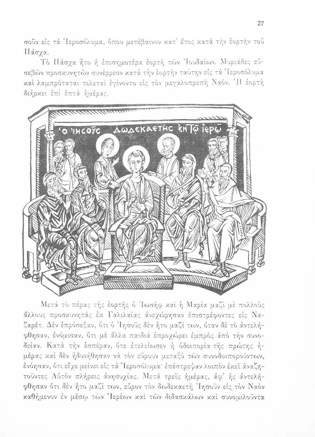 Παρουσίαση περιεχομένου: Σχολικό εγχειρίδιο Θρησκευτικών που συνιστά μία εξιστόρηση της Καινής Διαθήκης από τη γέννηση της Θεοτόκου ως την ανάληψη του Χριστού.
