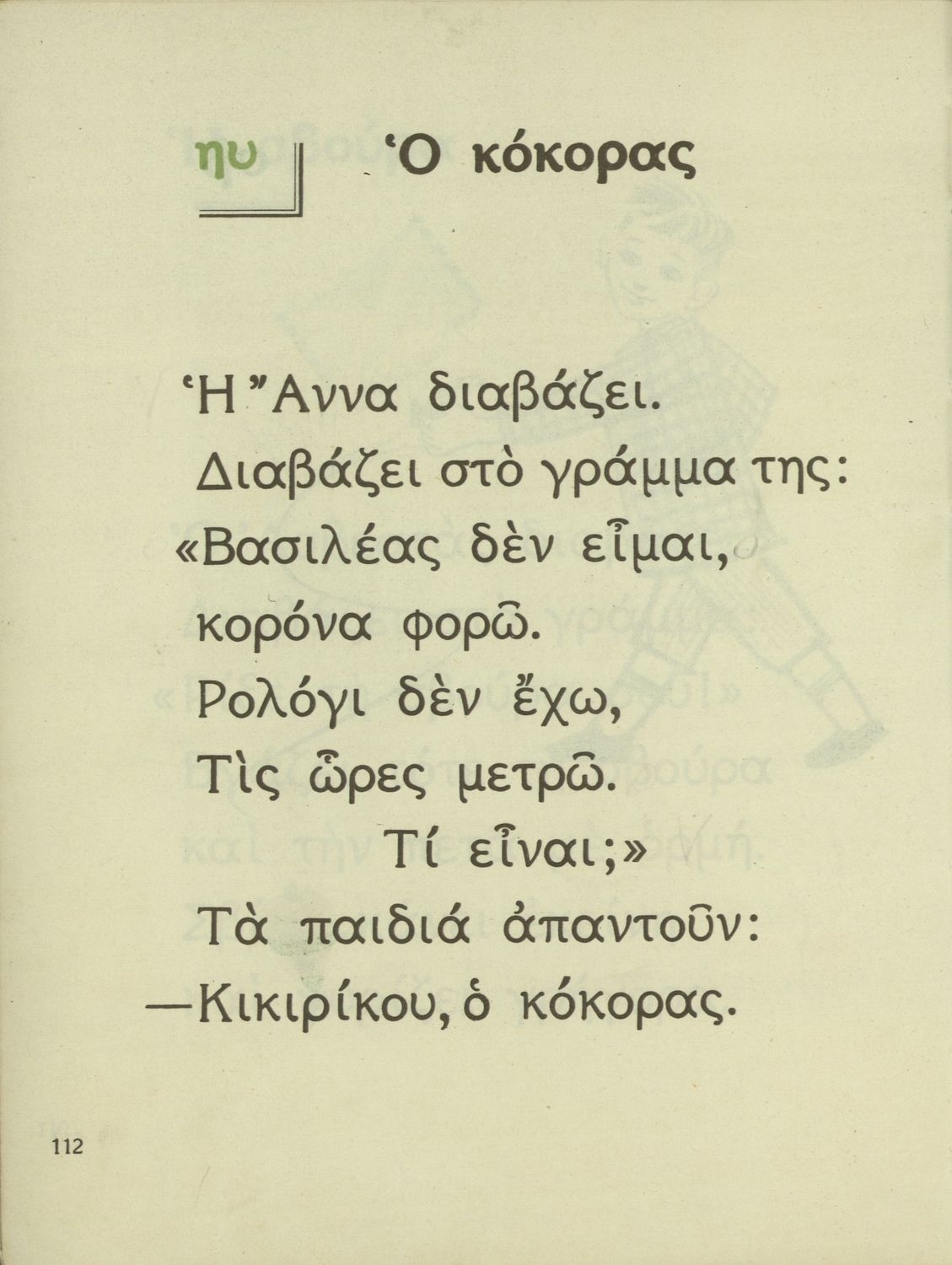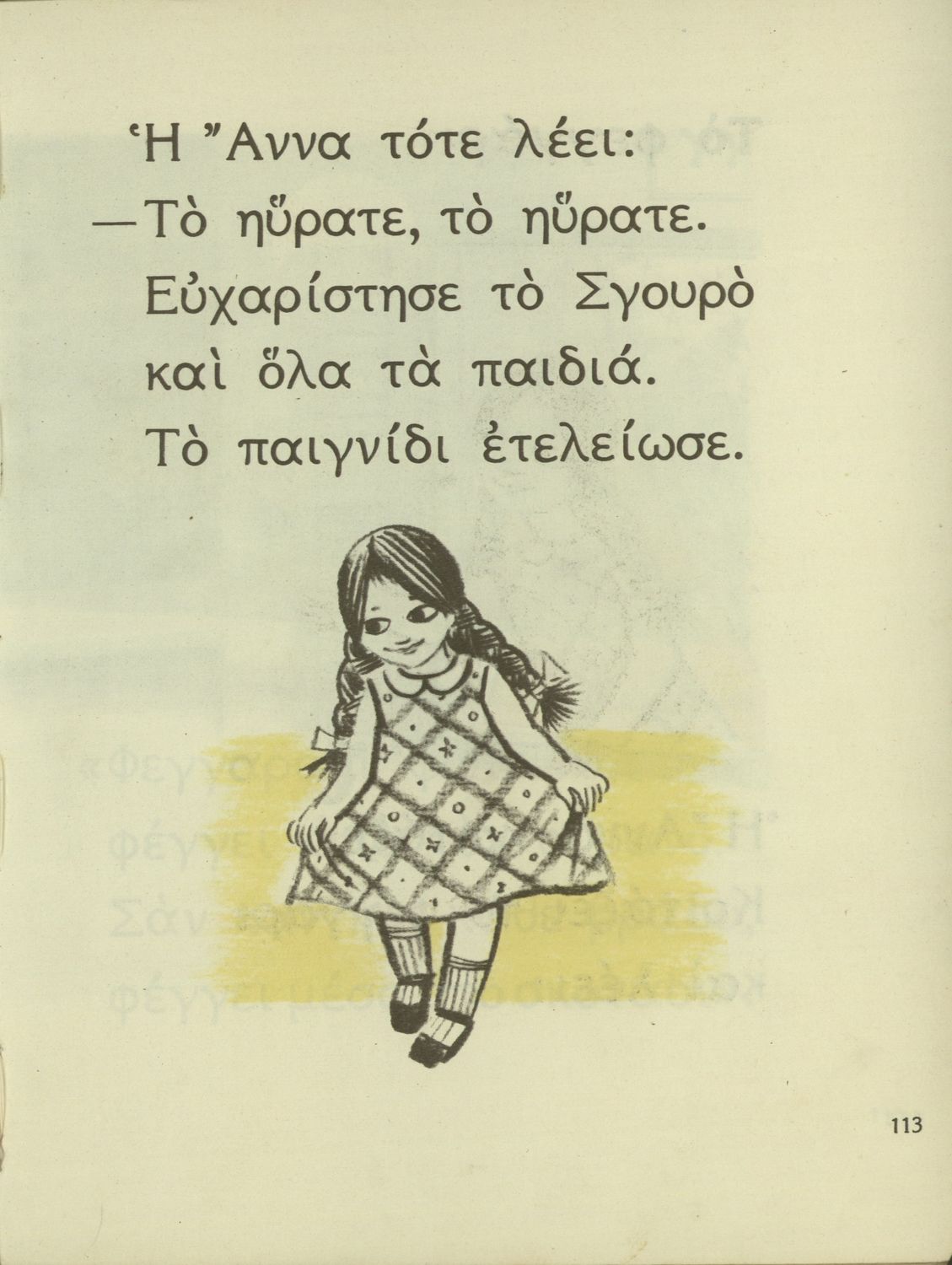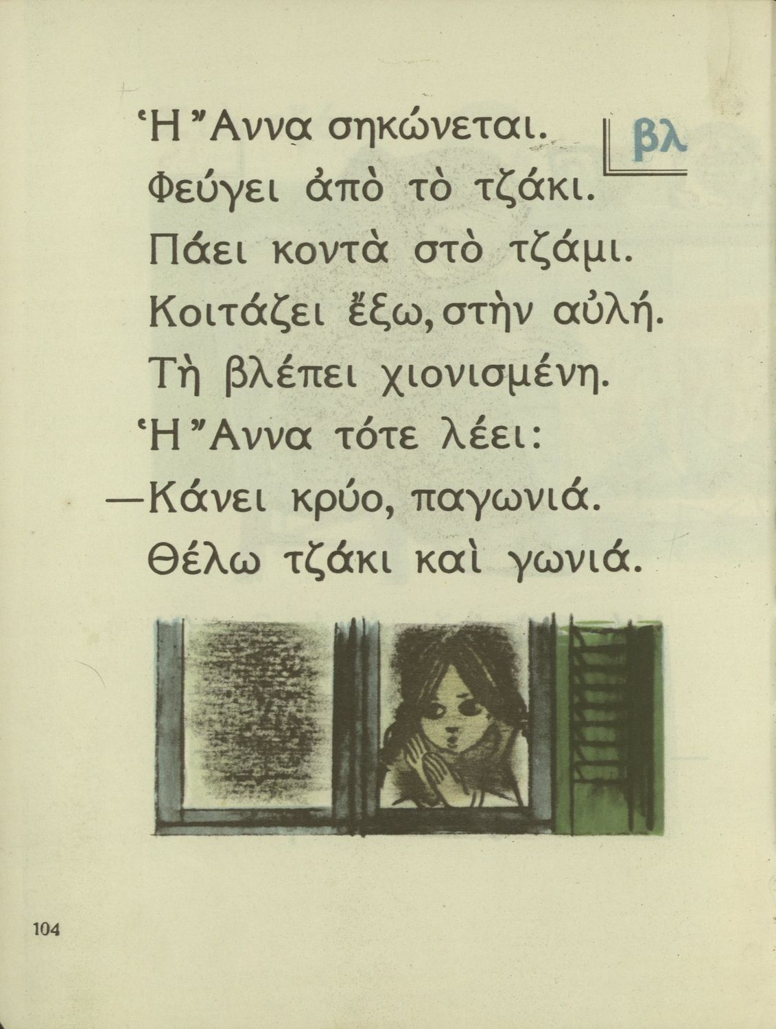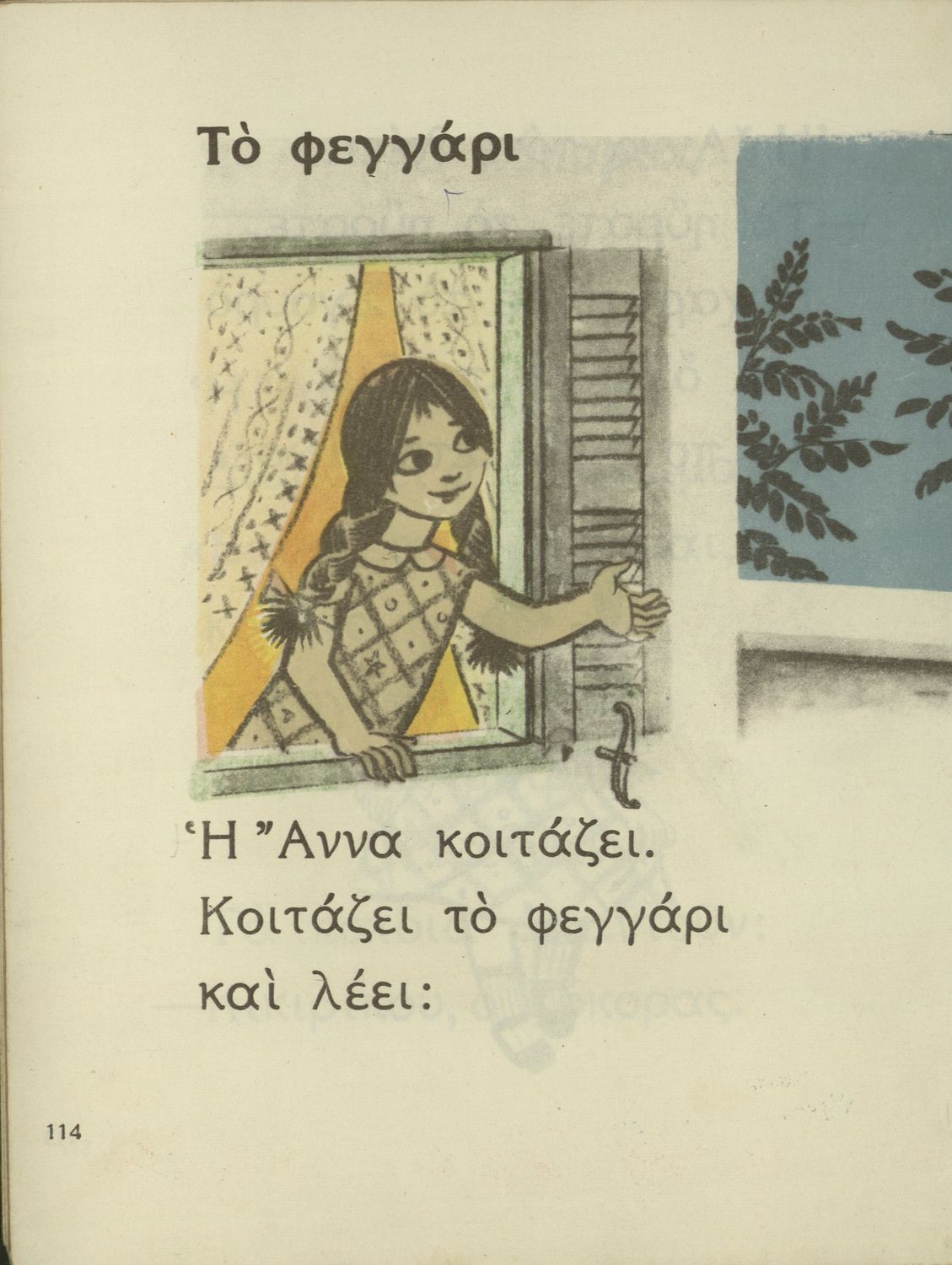 Αναγνωστικό Α΄ Δημοτικού που περιέχει γράμματα, συλλαβές, λέξεις, προτάσεις, κείμενα και ποιήματα για την εκμάθηση της Γλώσσας. Τα θέματα βασίζονται στην θρησκευτική, εθνική, οικογενειακή, κοινωνική, καθημερινή ζωή του τόπου. Ήρωες του βιβλίου ο Μίμης και η Άννα.